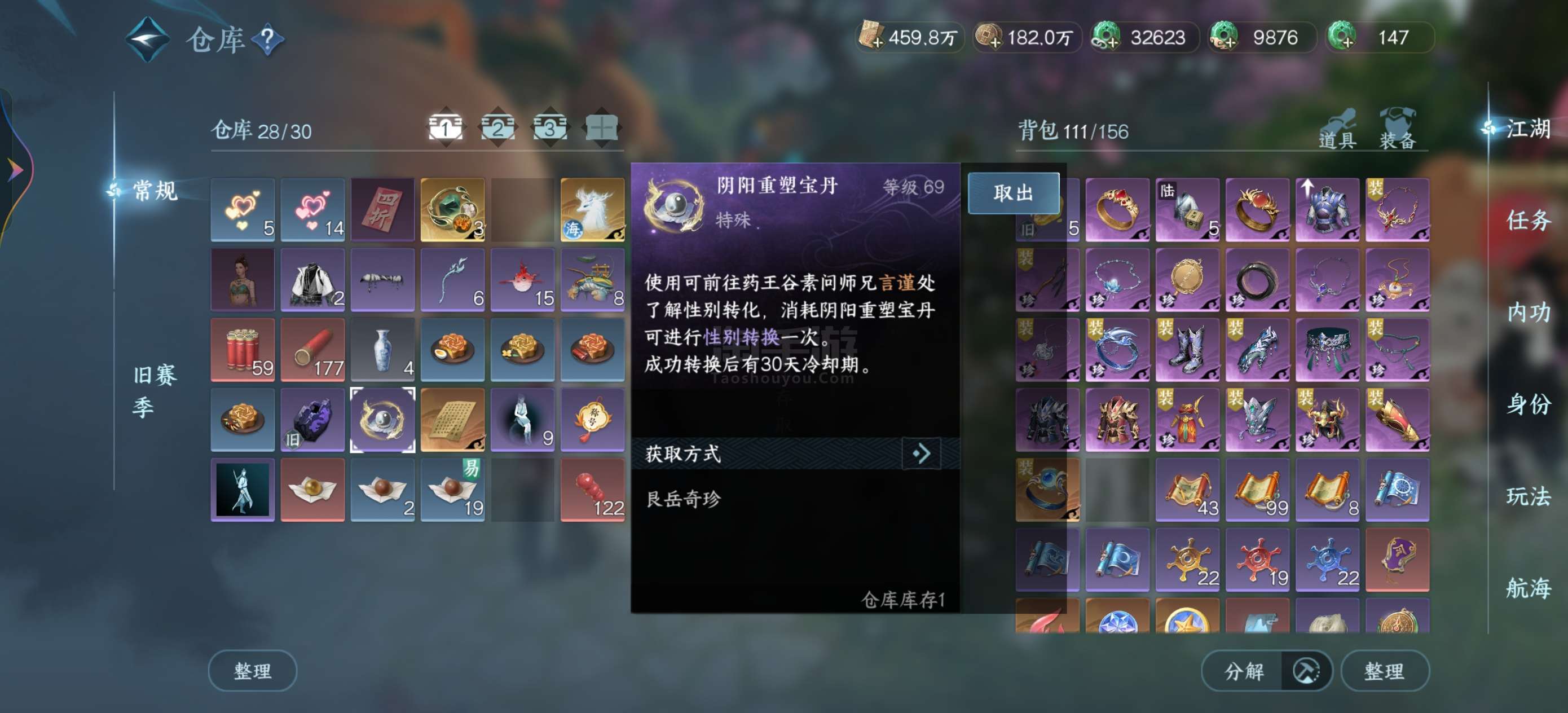 逆水寒手游【安卓vivo】39天赏6未用,大衣柜号有转性丹,满进度号副本头齐全便宜甩