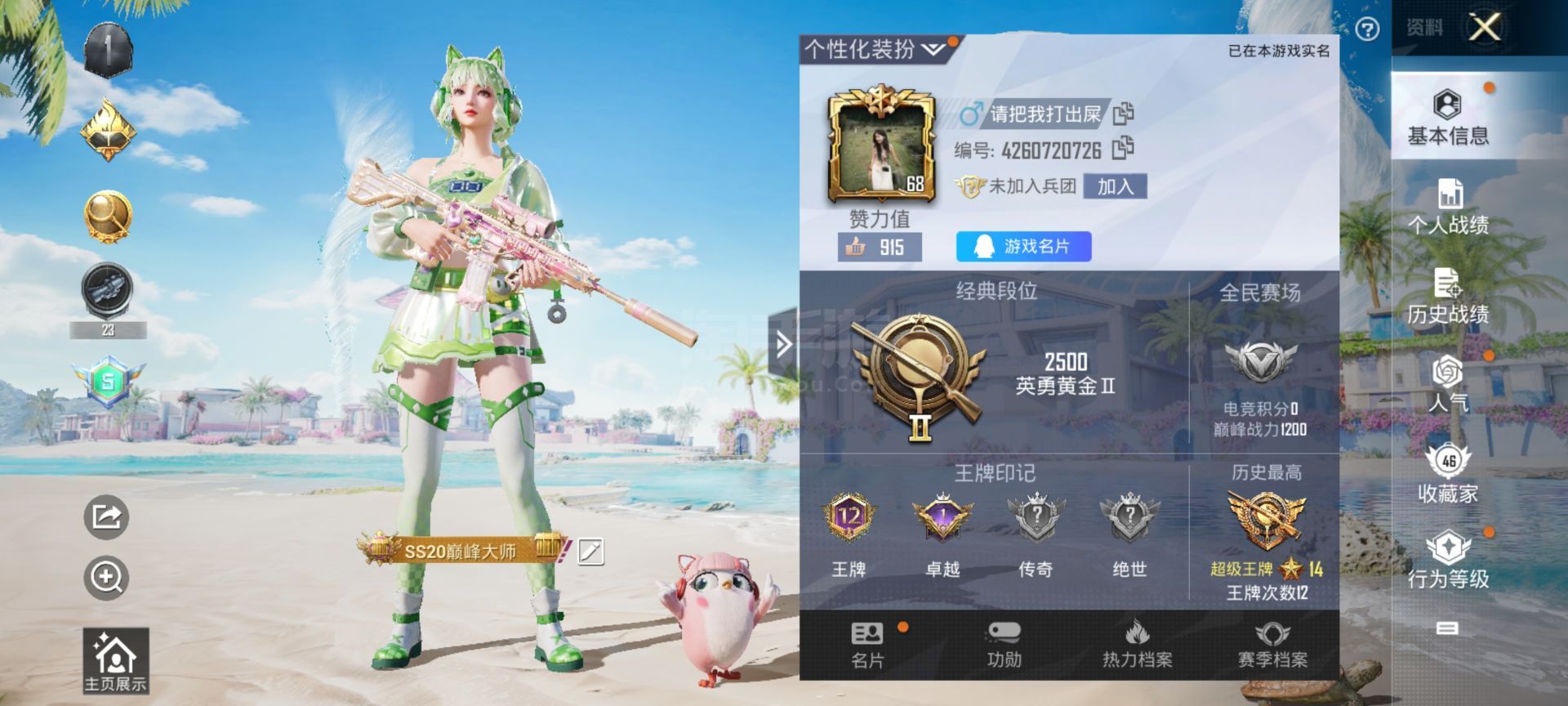 2145858_1 无二次 可转区 安卓Q-47175热力值 12王牌印记 历史超级王牌14星 精品小号 天使彩虹糖 碧影闪光 m4心之恋语6级 老六服 金羽特工 鲨鱼裤 123套装 164枪皮 【2粉装】 天使彩虹糖 碧影闪光 【2特效枪】 M416-心之恋语 (6级) Kar98K-巳巳如意 (5级) 【13热门】 雪山精英 鹰眼刺客 迅捷狂鲨 金羽特工 SS1特训 团圆交子 瑞龙福将 破蛋小