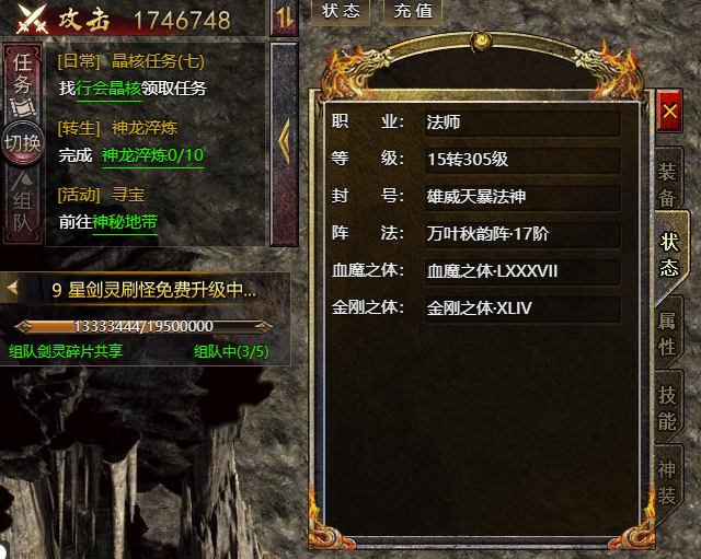 装备全,至尊 S 武器,7 转衣服两至尊,链为至尊 SS,其他至尊 S,超性价比