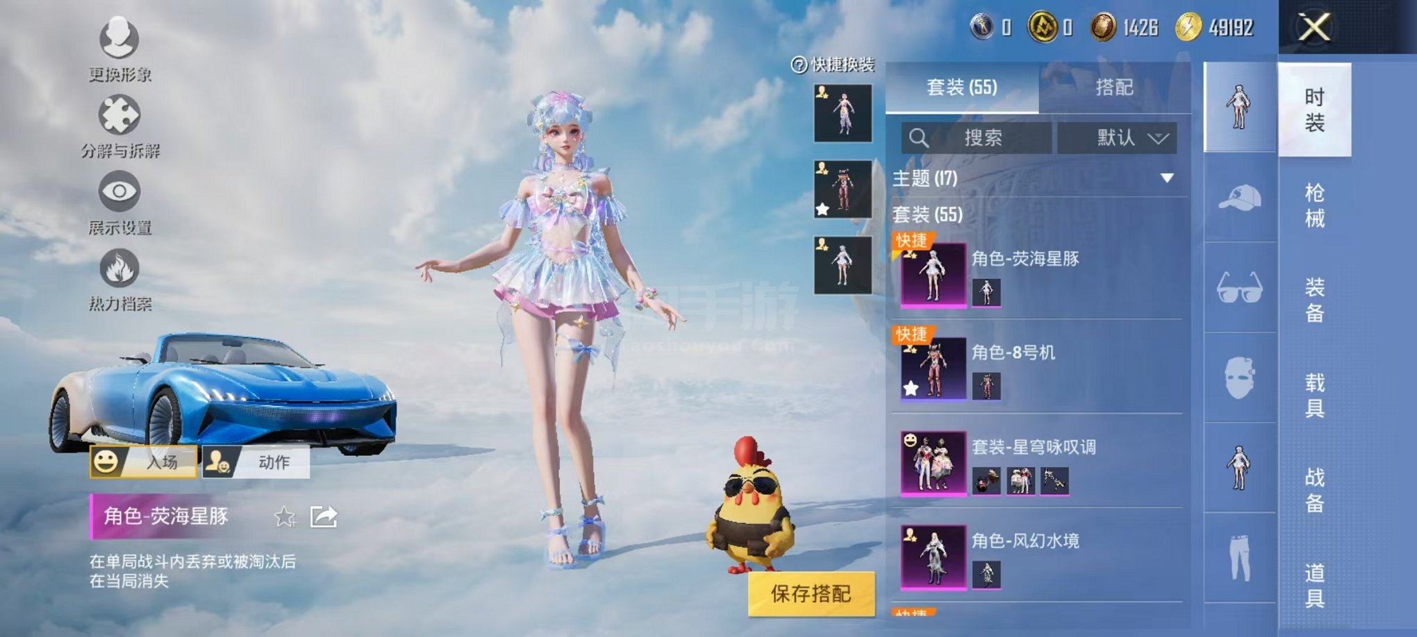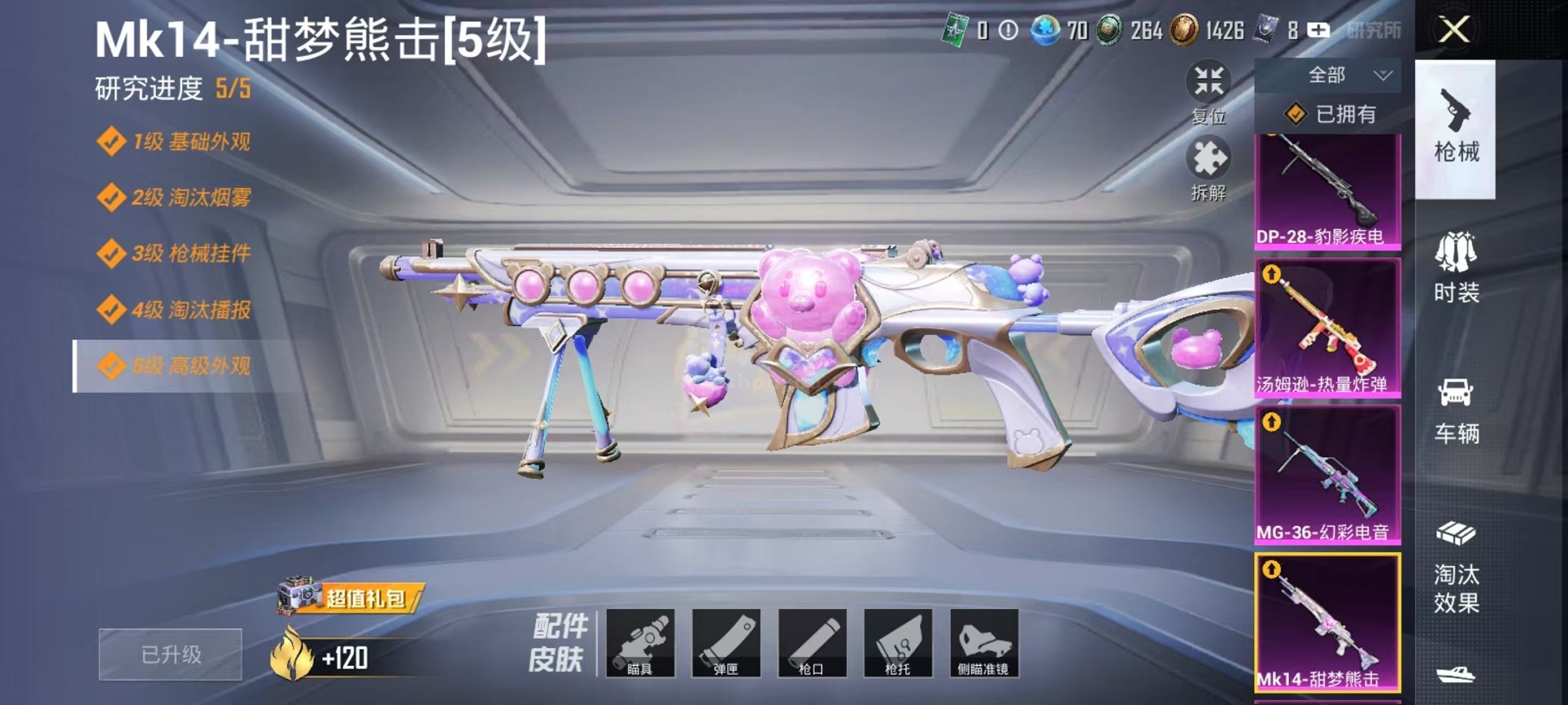 【女号5粉装9特效枪1载具可秒换绑】、安卓Q区-32191热力值-5印记-55套装-113枪皮、【1载具】、幽澜尊爵(静谧蓝)【1稀有】、8号机【5粉装】、角色-风幻水境、角色-冰域雷影、星穹咏叹调、角色-金域紫灵、角色-荧海星豚【9特效枪】、AKM-魔法神域(3级)、Mk14-甜梦熊击(5级)、AKS-74U-星穹咏叹调(6级)、MG-36-幻彩电音(4级)、汤姆逊-热量炸弹(5级)、GROZA-镜光银凌(5级)、Kar98K-巳巳如意(5级)、DP-28-豹影疾电(5级)、AUG-暖羊咩咩(