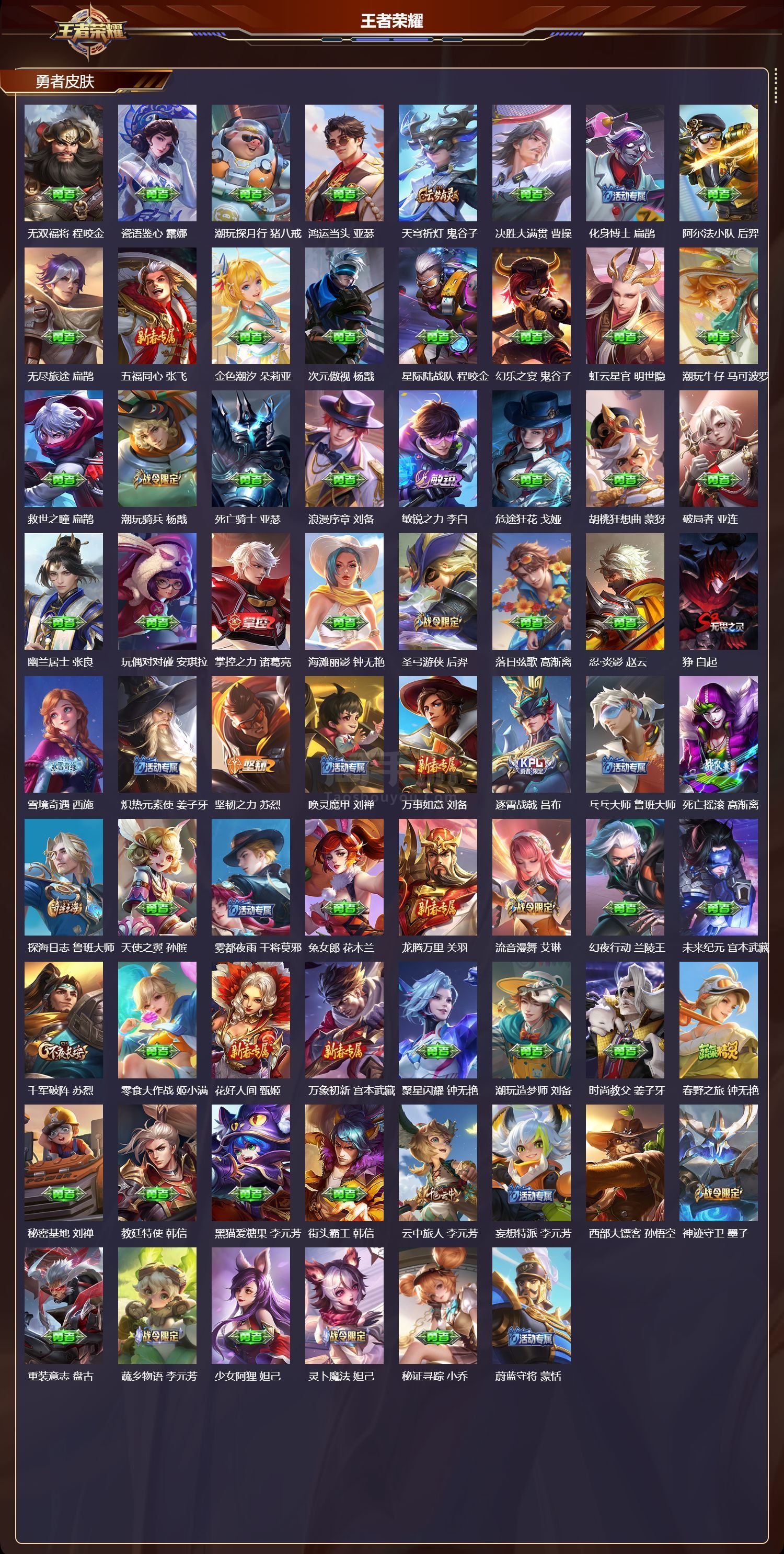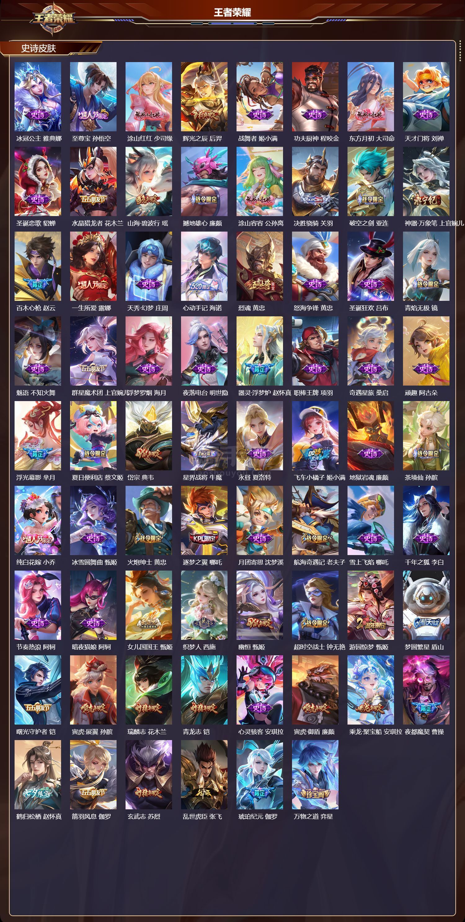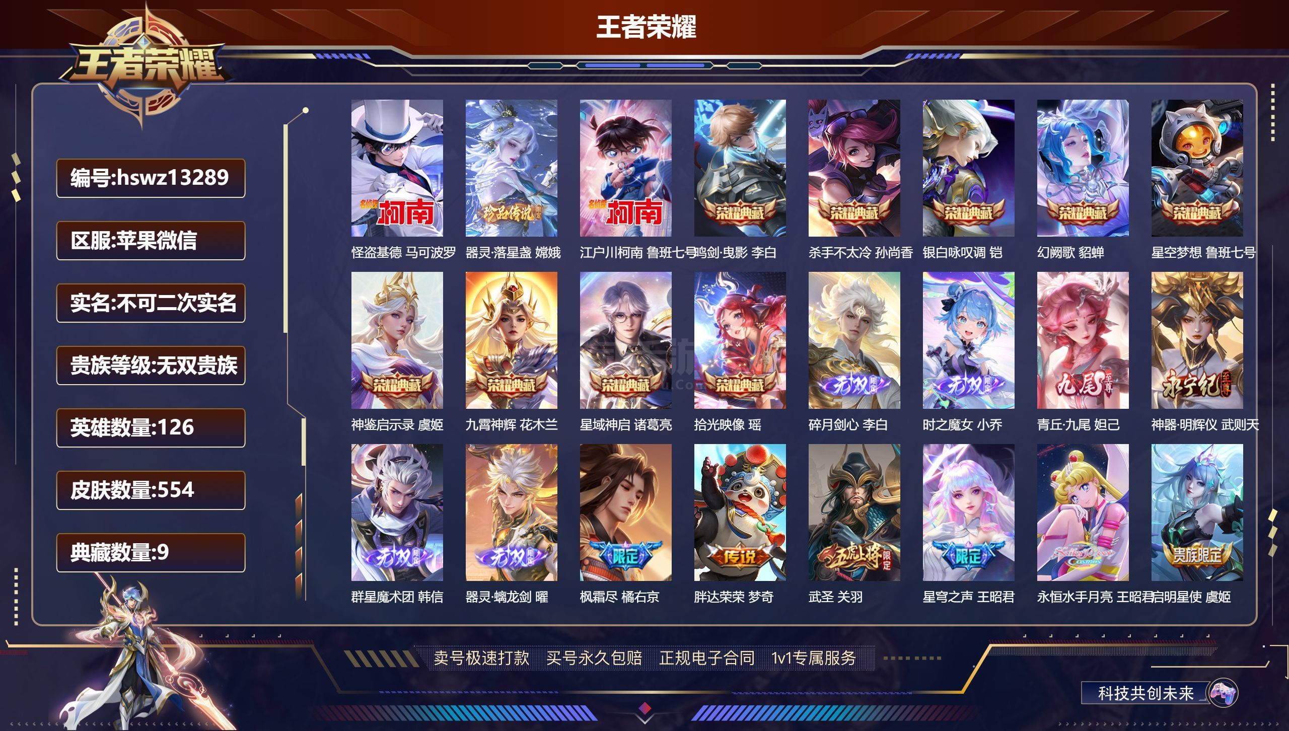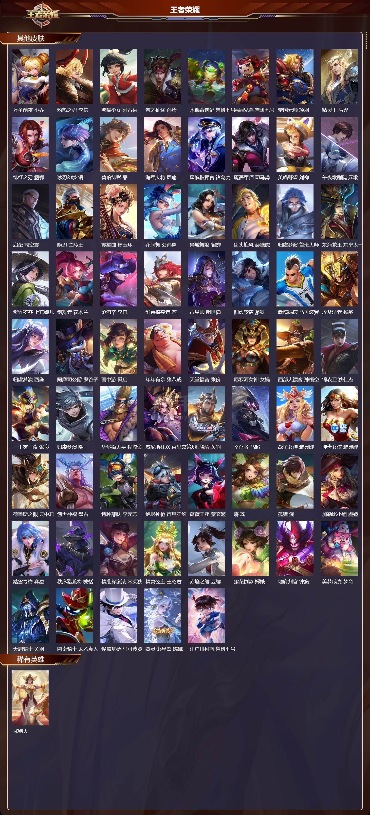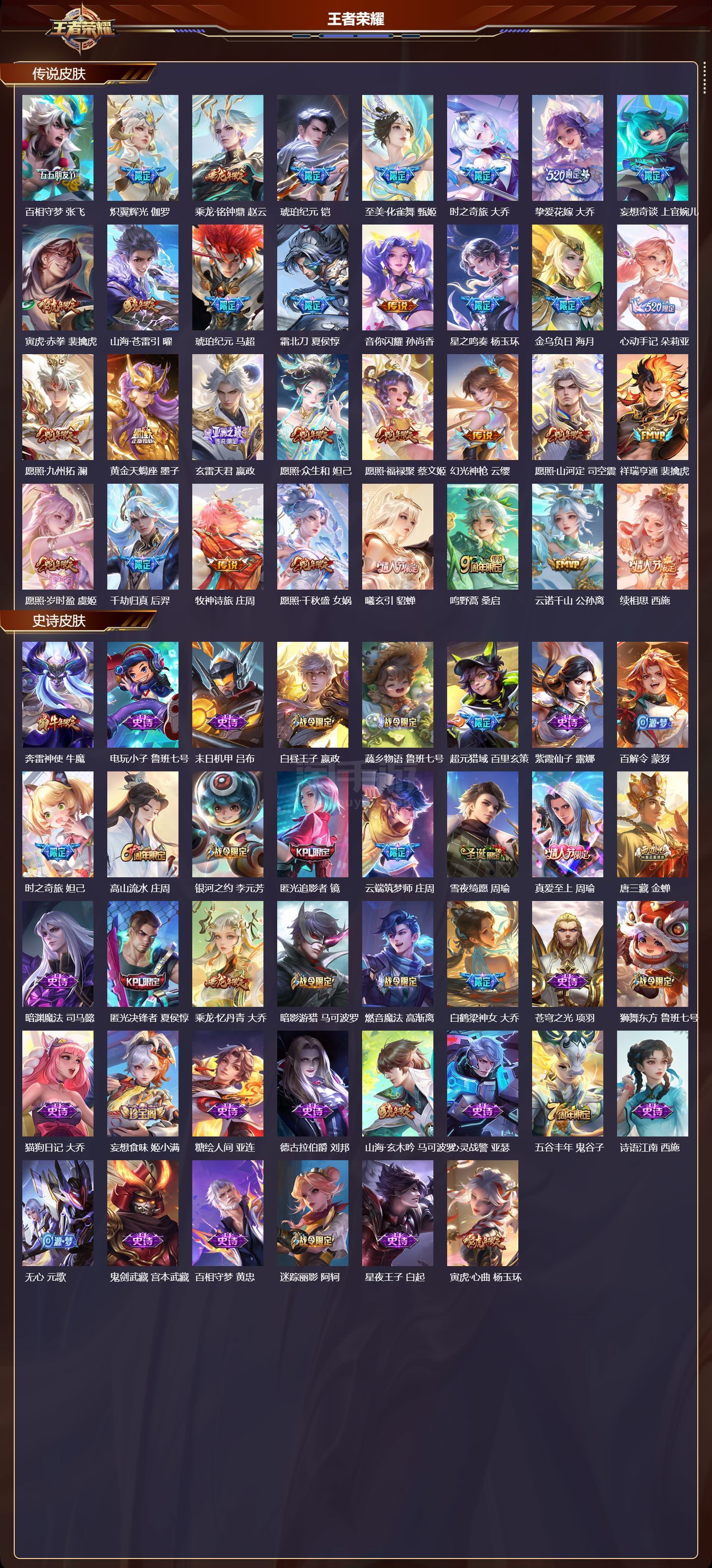 苹果微/荣耀王者/554皮肤/126英雄/9典藏/0珍品无双/6无双/3珍品传说/84传说/197