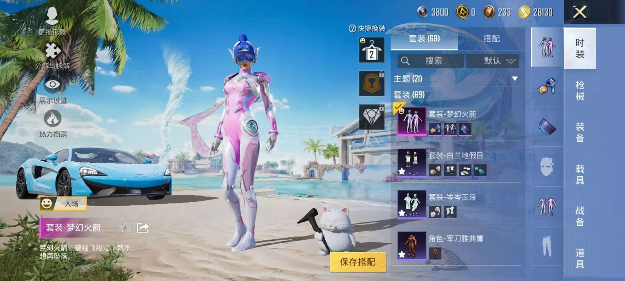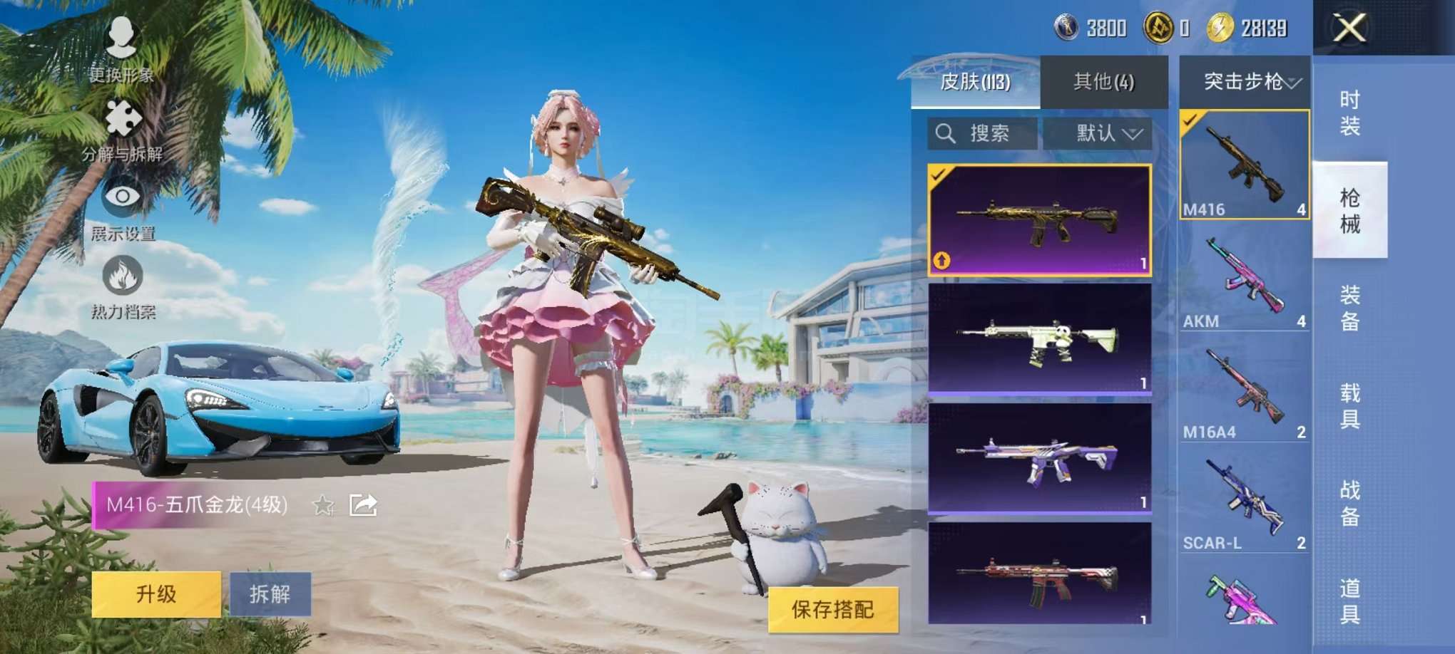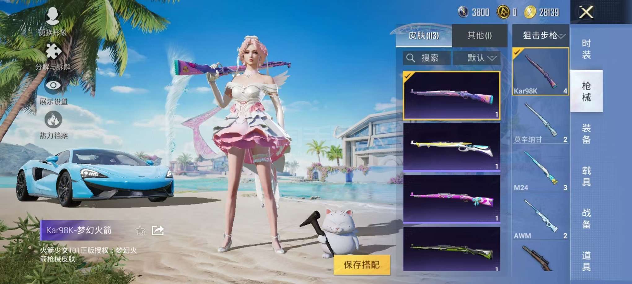可二次【梦幻火箭五爪金龙9粉装9特效枪1载具可秒换绑】、安卓Q区-43839热力值-7印记-69套装-113枪皮、【1载具】、迈凯伦570S(天际蓝)【9粉装】、梦幻火箭、冰川粉黛、冰川红玫、蓝莓炮弹、紫电风暴、纯珍童话、暗夜鎏金、飒粉甜心、冰川幽秘【9特效枪】、SCAR-L-青春物语(5级)、M416-五爪金龙(4级)、AKM-炫紫旋律(4级)、汤姆逊-冰川粉黛(4级)、MK20-H-海螺星光(4级)、M762-激战未来(4级)、P90-能量风暴(4级)、Vector-飒粉甜心(4级)、M24