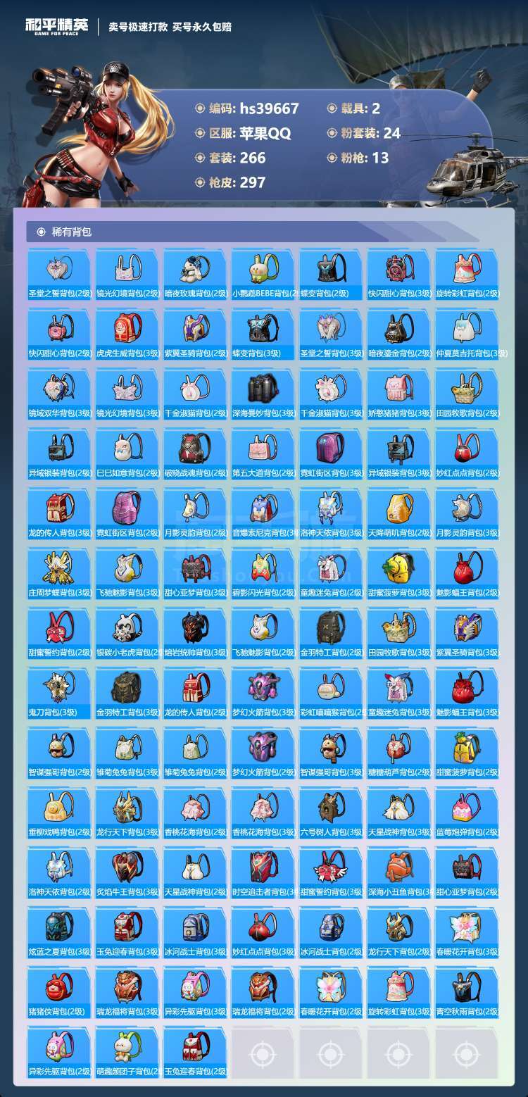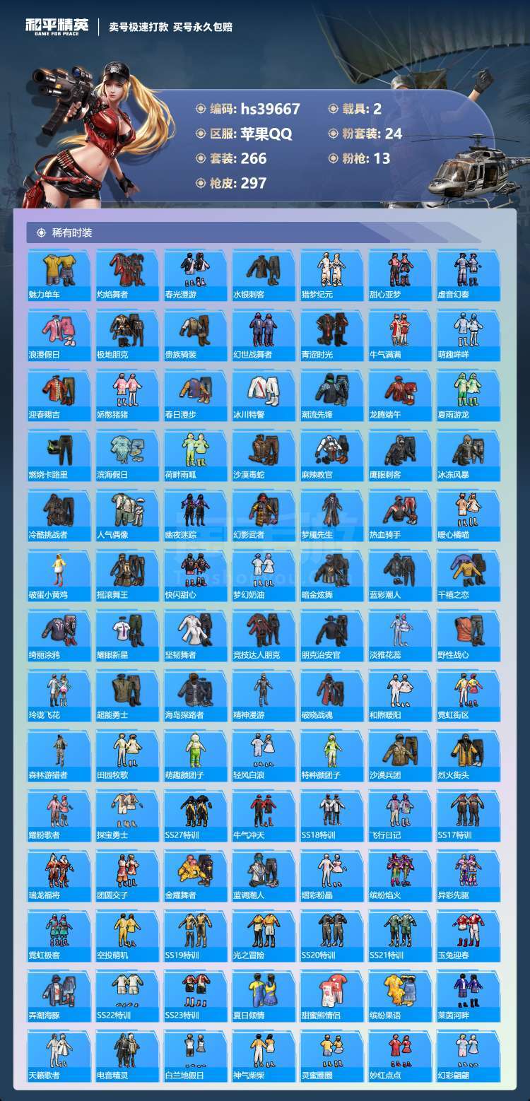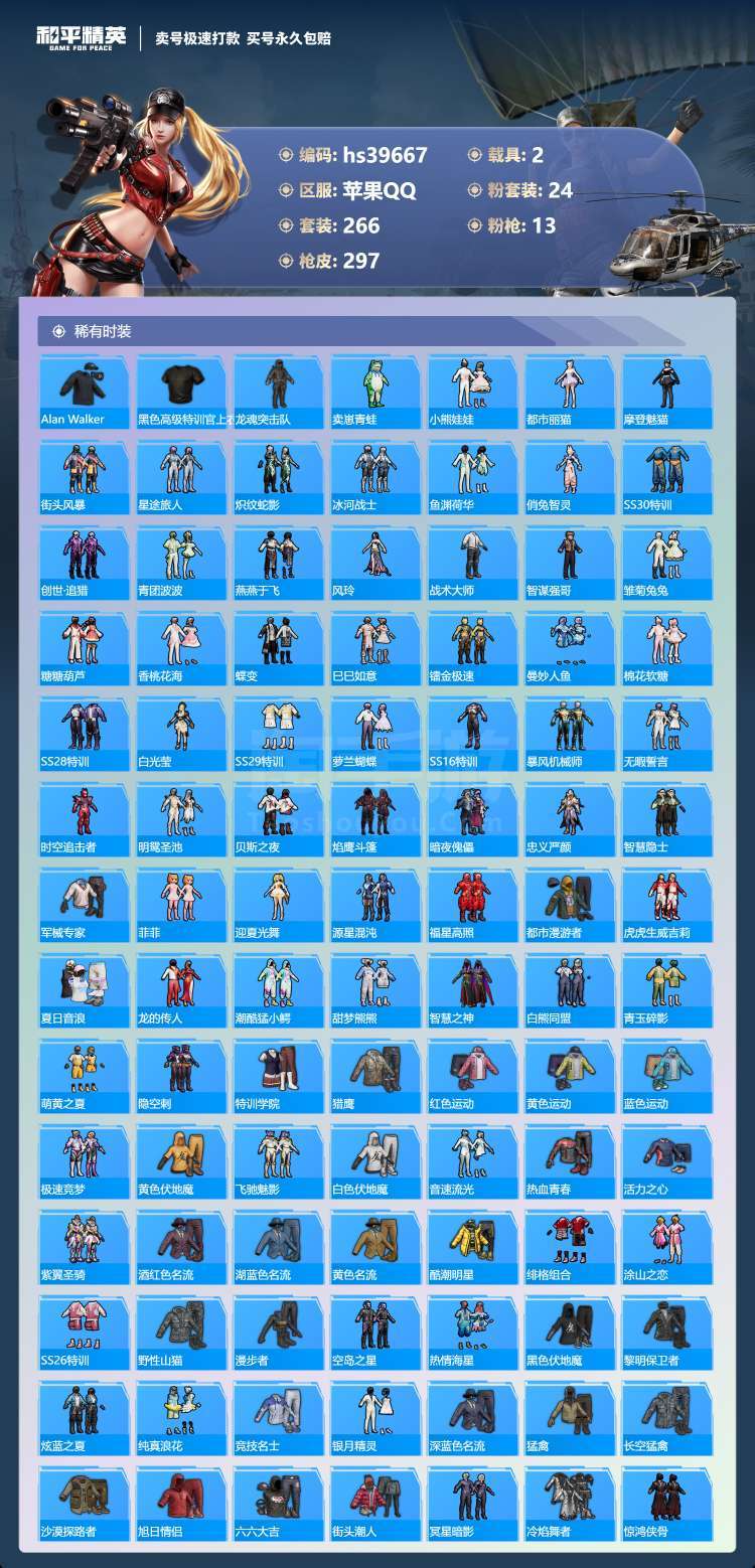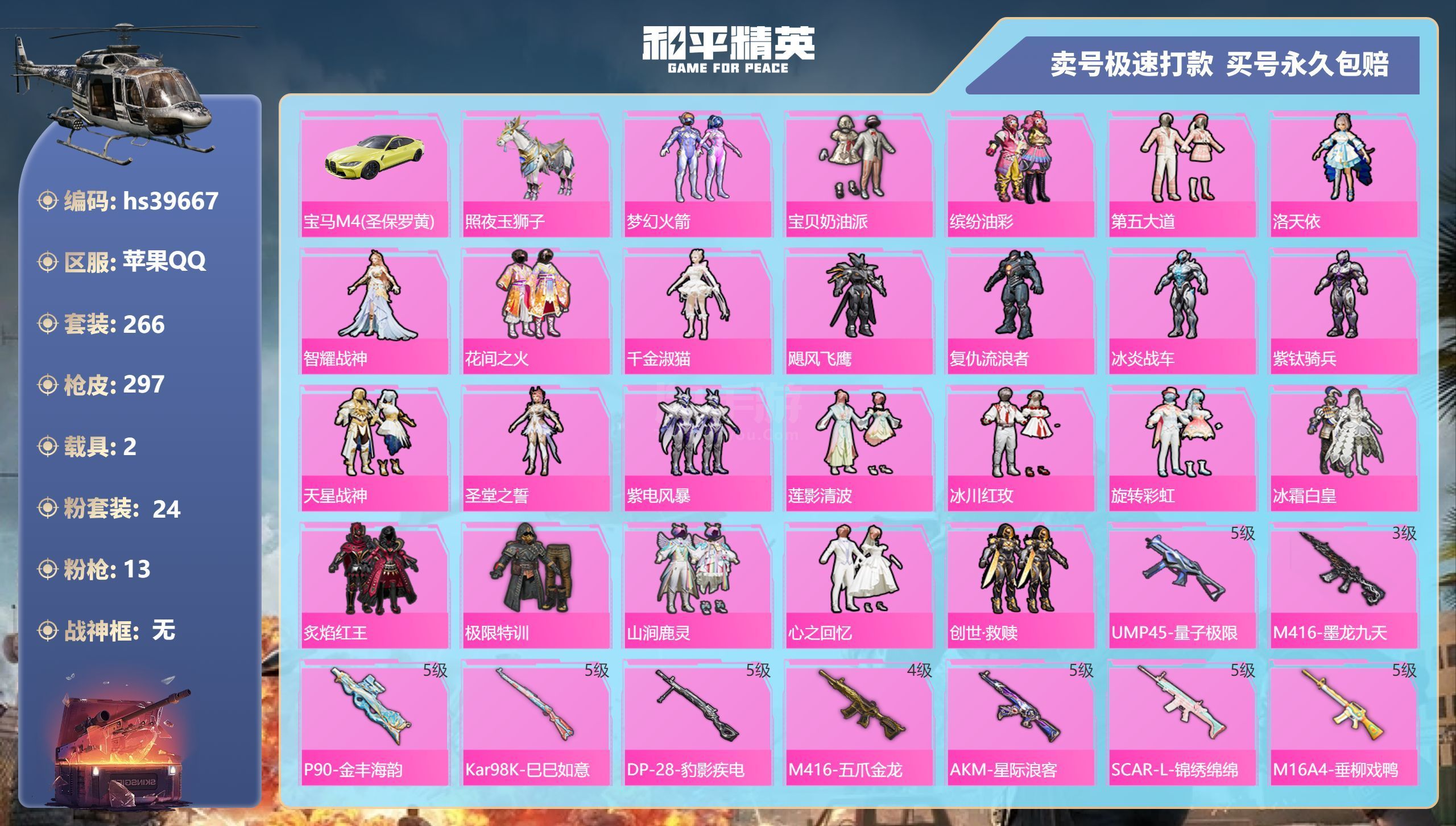 hs39667 苹果手Q-19王牌印记-24粉装-13特效枪-2载具-107754热力值-266套装