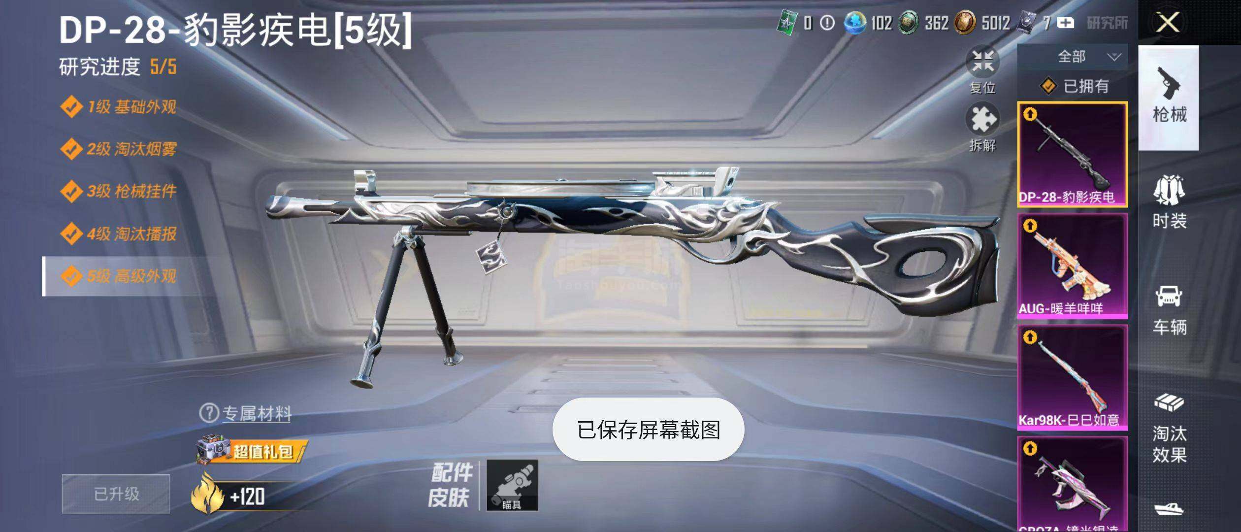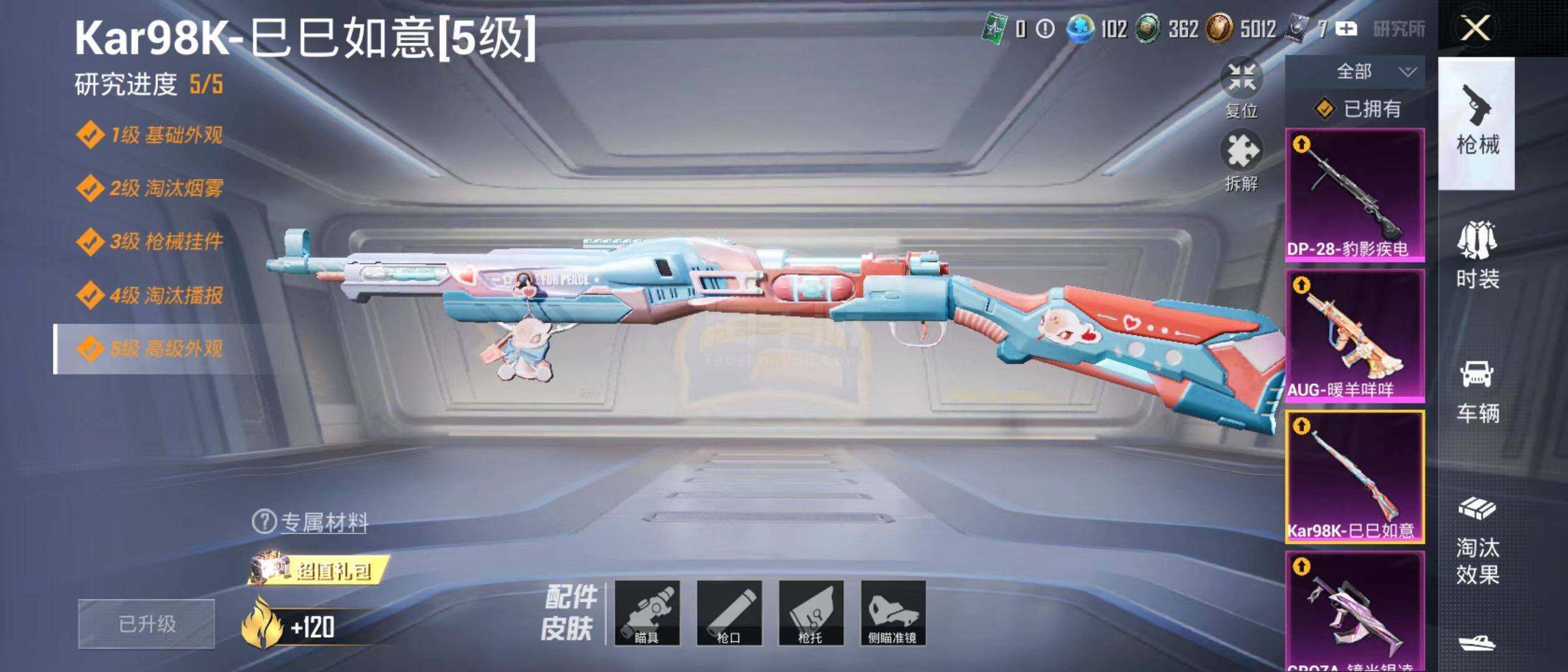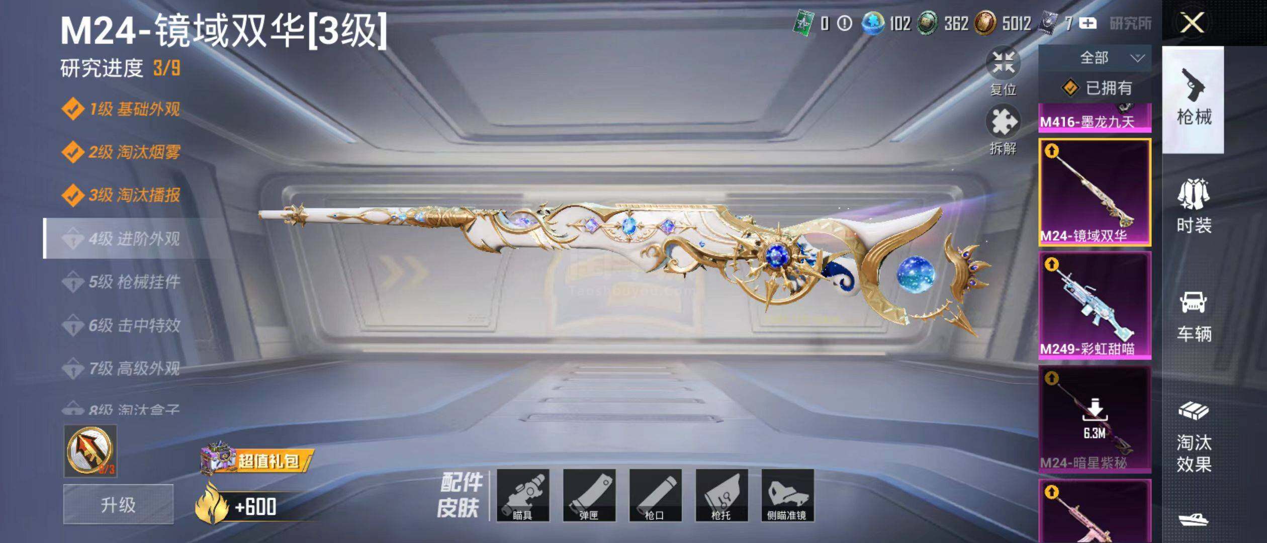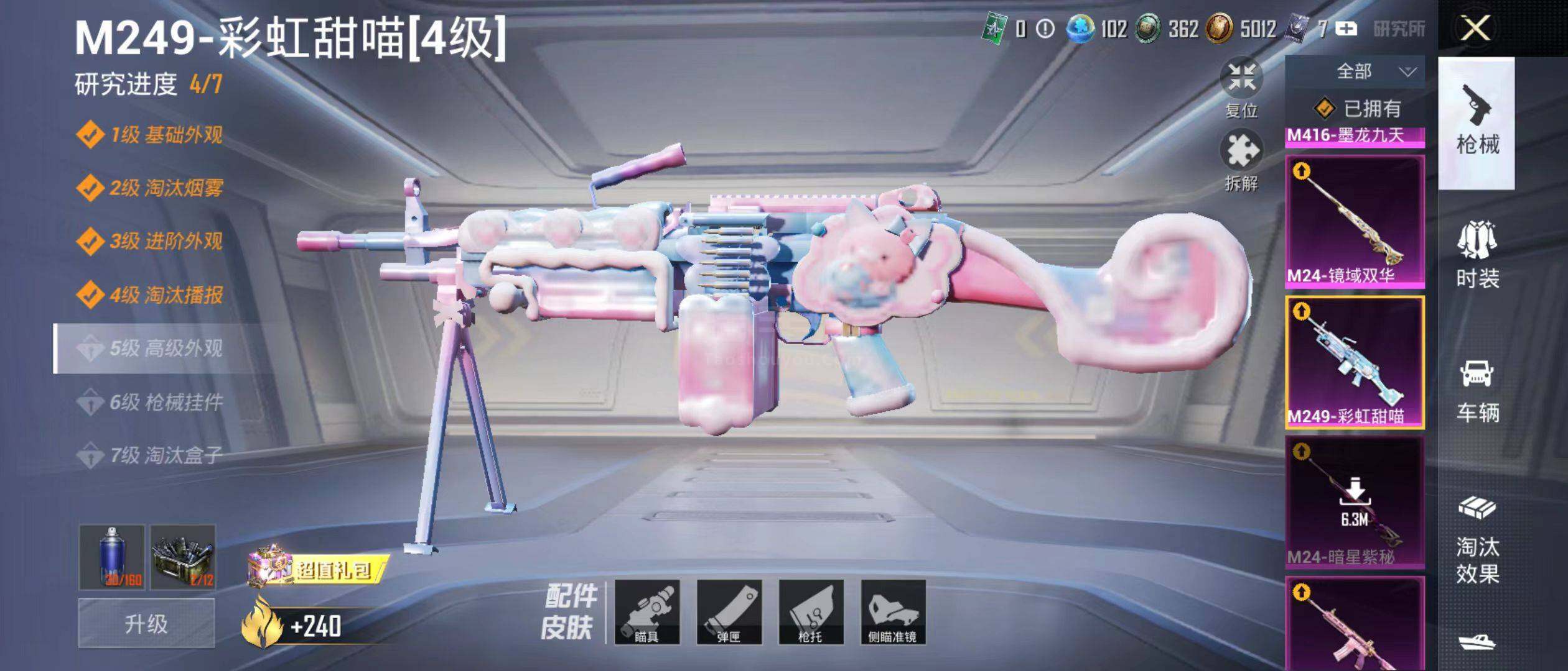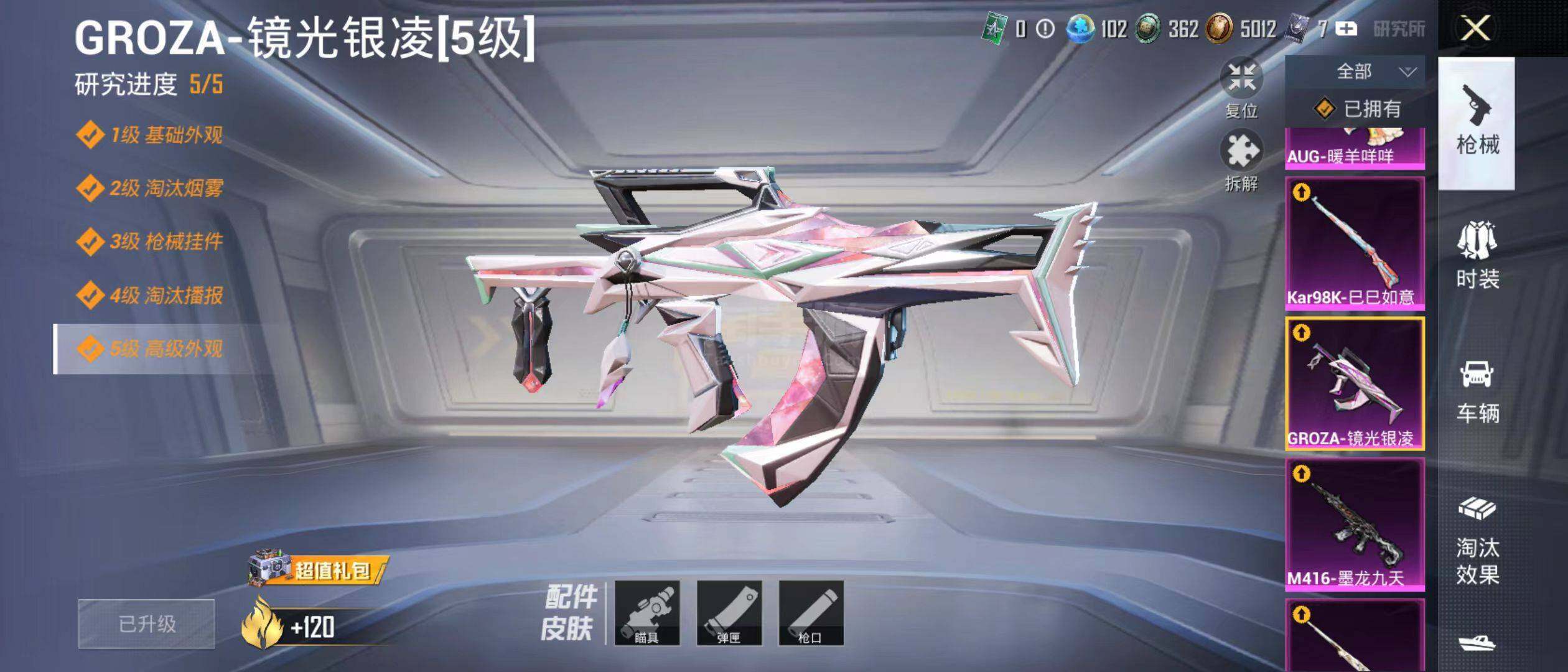【粉色枪皮等级】:M416-心之恋语(五级),M416-墨龙九天(三级),GROZ