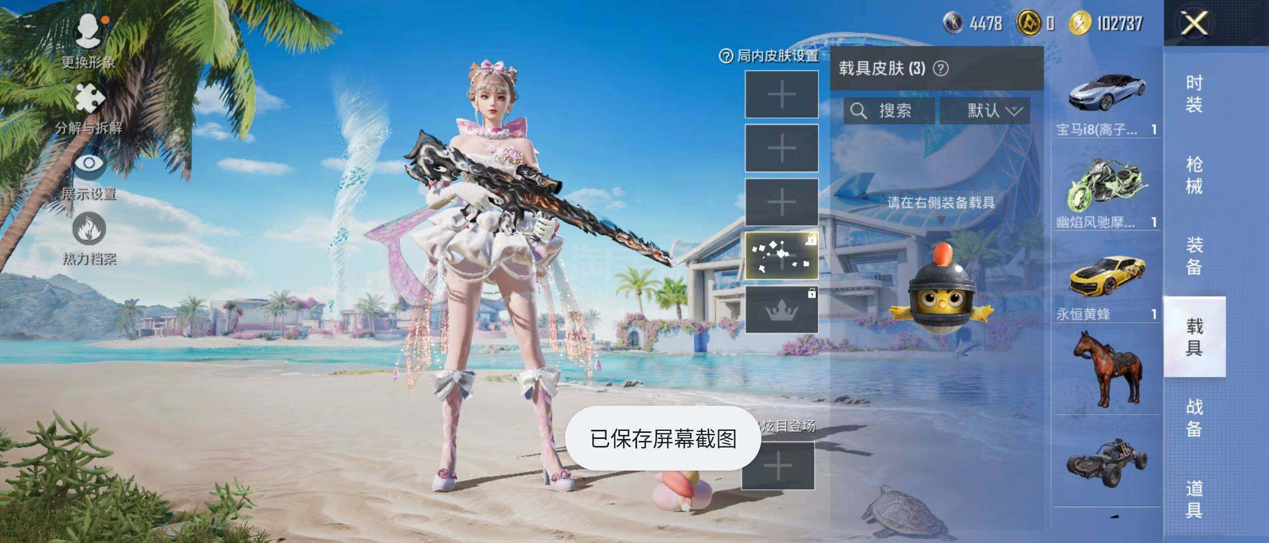 【粉色载具】:宝马i8(离子银),永恒黄蜂,幽焰风驰摩托车