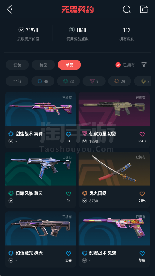 无畏契约【端游】皮肤资产价值71970【套装】:奇点//2.0套装,回火礼包:奇点套装,白日