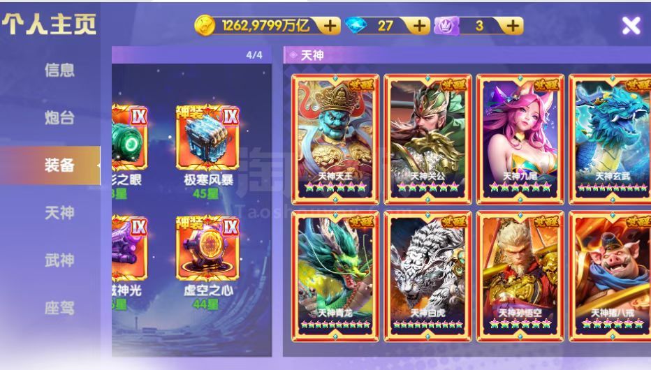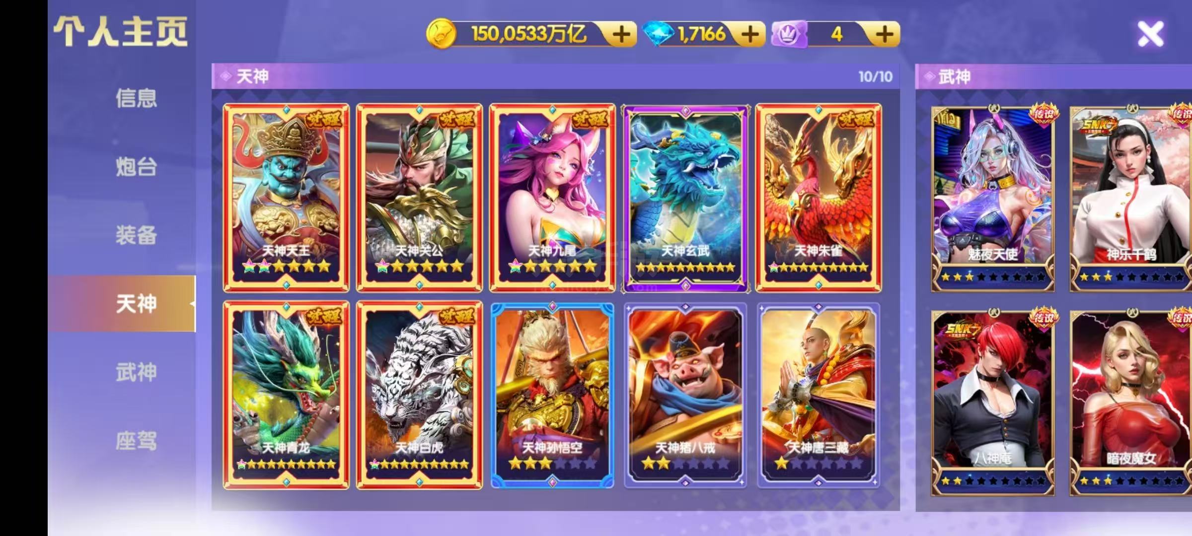 配置天王觉醒、满配天神和羁绊,30京~2000京分有每天有