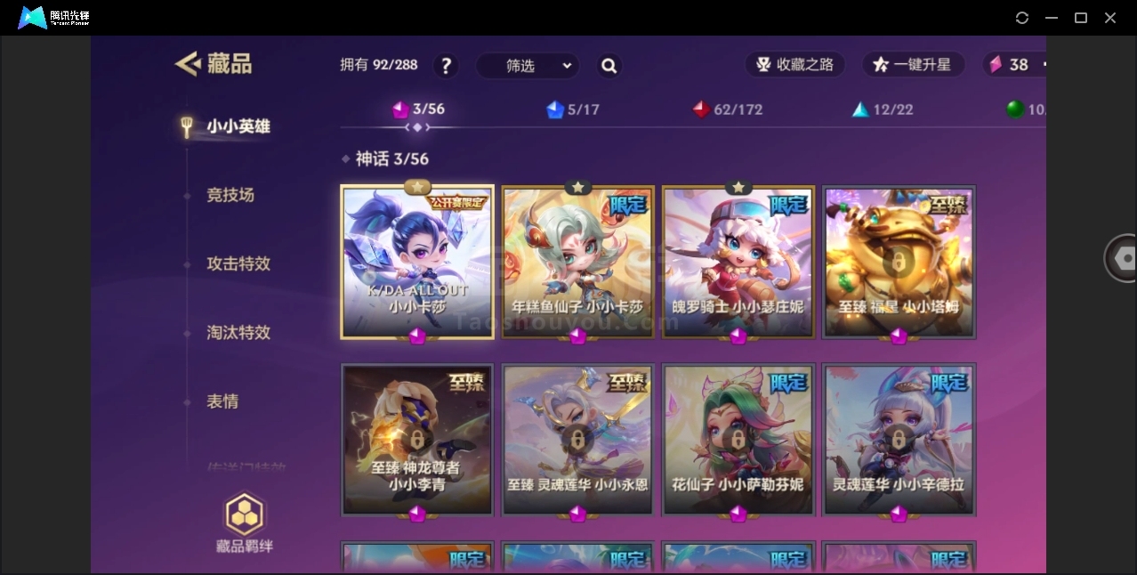 【编号68867】【店长推荐精品号】【3神话5小小英雄3传说竞技场】K/DA ALL OUT 小小卡莎 年糕鱼仙子小小卡莎 魄罗骑士小小瑟庄妮 坚韧重锤小小杰斯 小小妮蔻 双城传说2小小伊莎 浪漫和声小小萨勒芬妮 小小蕾欧娜竞技场:幻境竞技场 德玛西亚团结圣坛 魄罗糖果岛 凛冬之爪部落攻击特效:K/DA AIL OUT 小小卡莎 超究极微光飞弹 年糕鱼仙子小小卡莎 魄罗骑士小小瑟庄妮