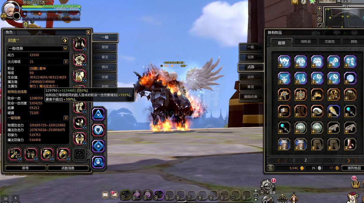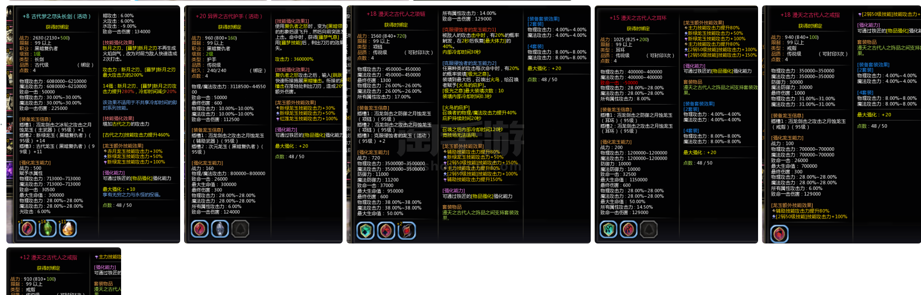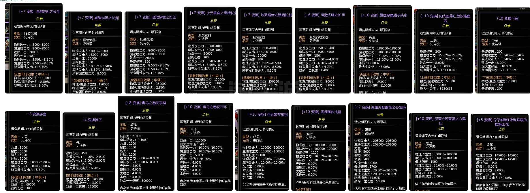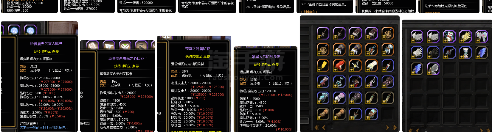 龙之谷【全服通用】4.2亿攻3万最终光明等4套特武10多套时装连体2.5亿攻雷神刺客兽娘都有时装装备