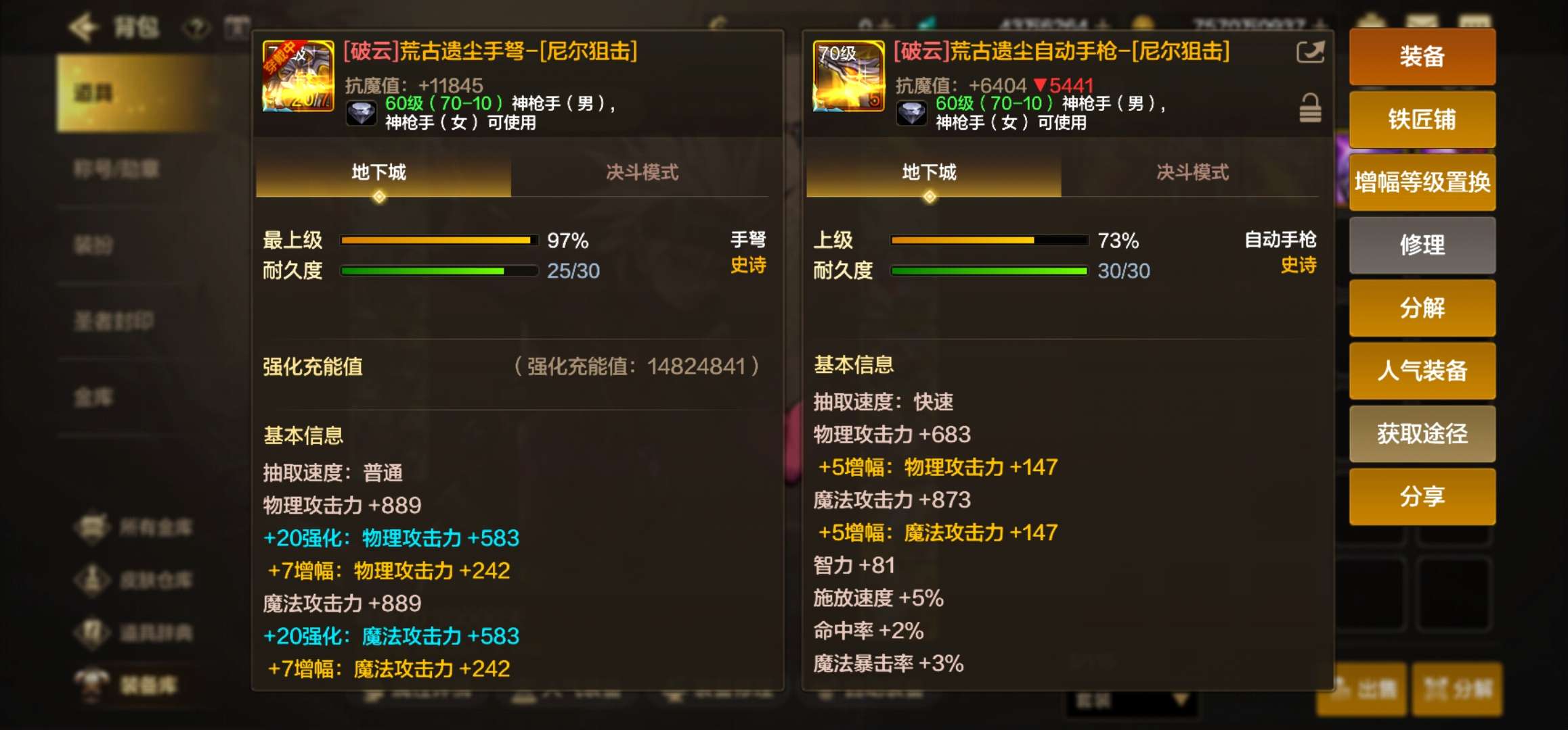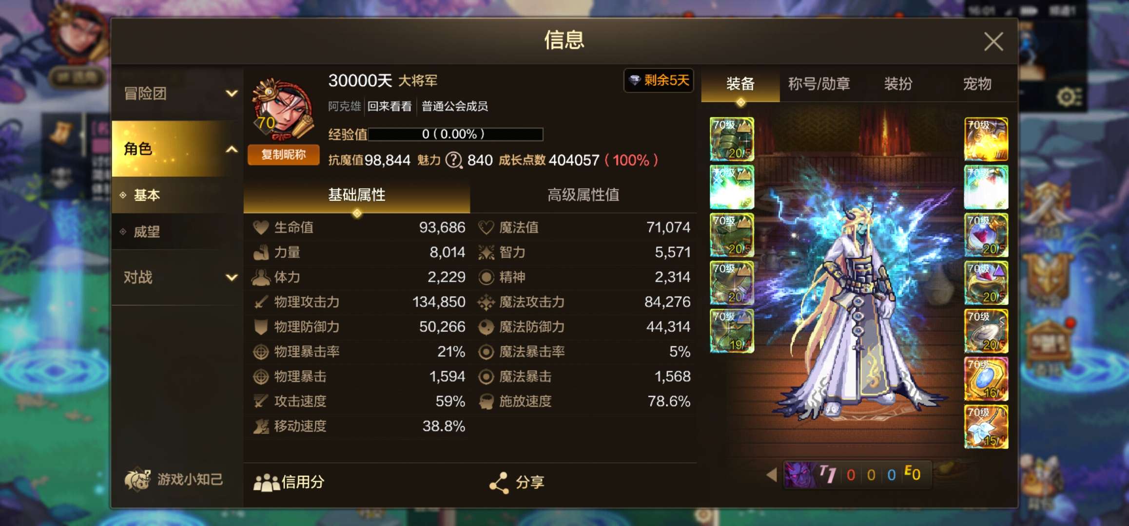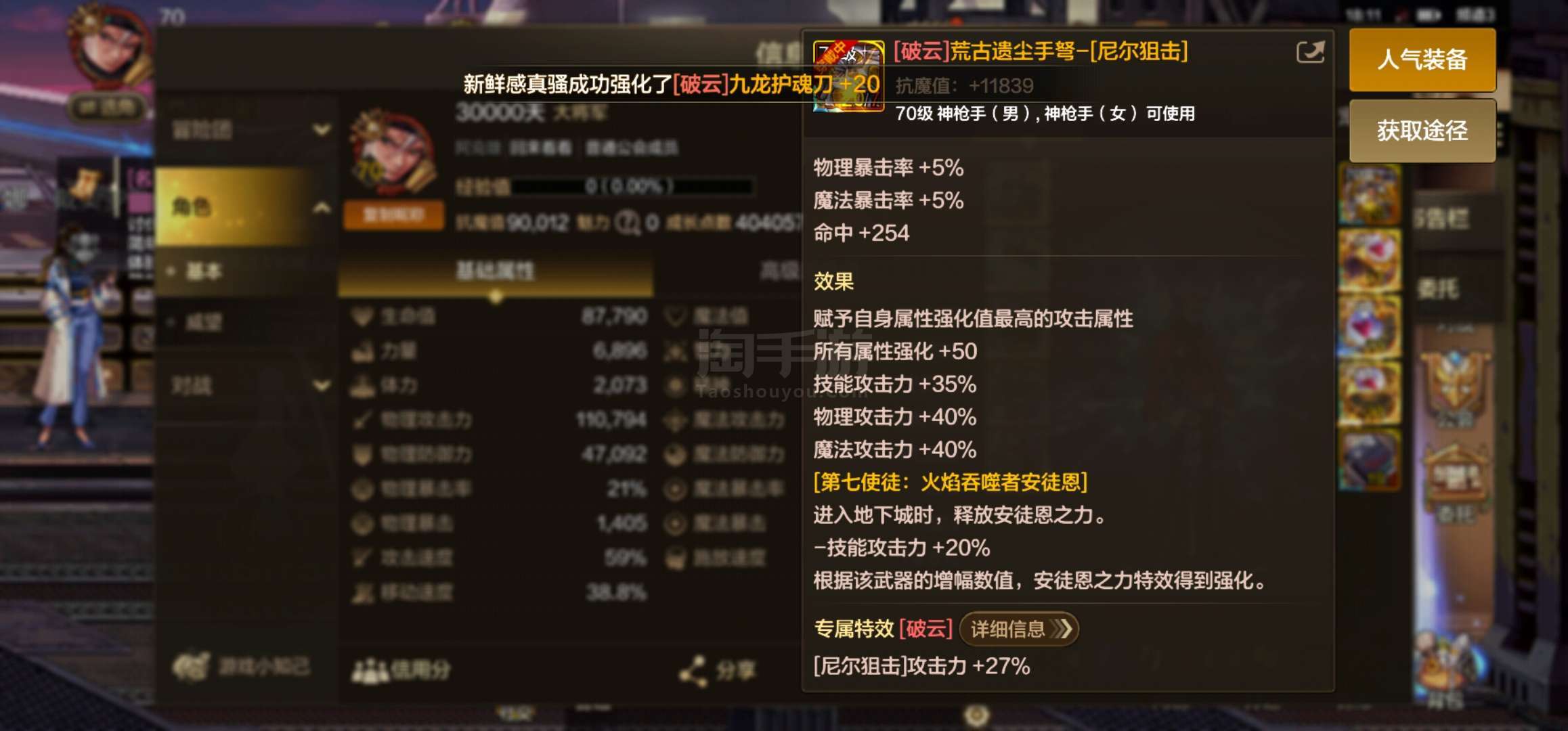 抗魔99000,两把荒古破云武器,有40万泰拉,有套天空,力量8000,面板13.5W,安图恩无压力