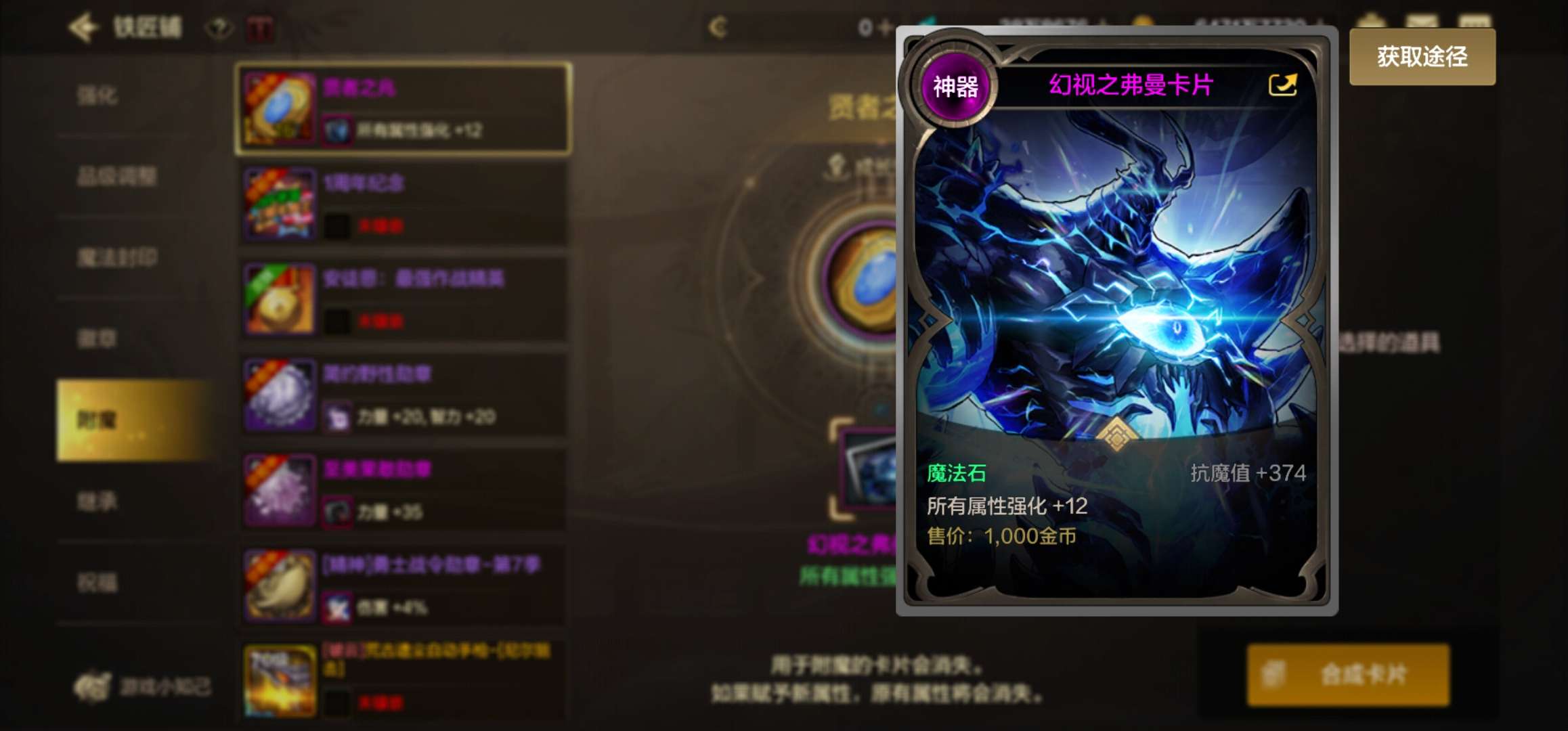 满级弹药抗魔99000抗魔 ,8000力量13500面板伤害,有最新魔法石属强卡,5个号都可安图恩!