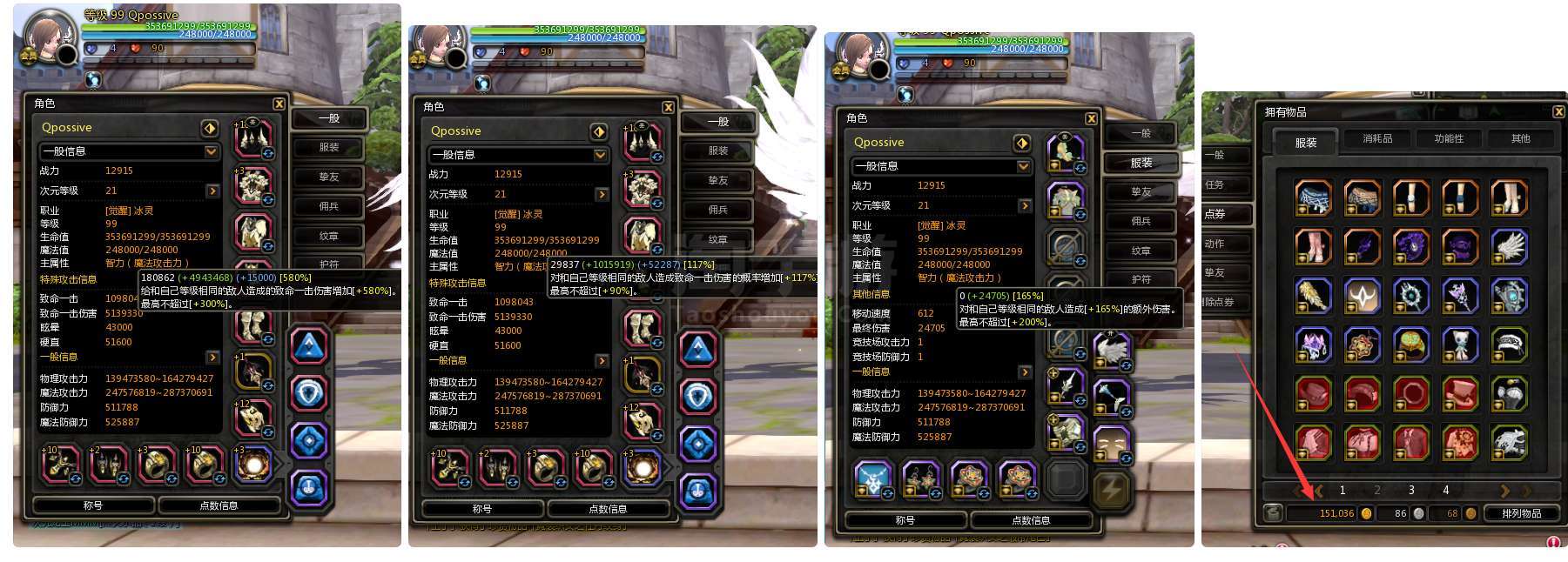 龙之谷【全服通用】最靓光明主副紫魅等4套特武多时装翅膀坐骑近3亿攻15万金币有转职书多连体号
