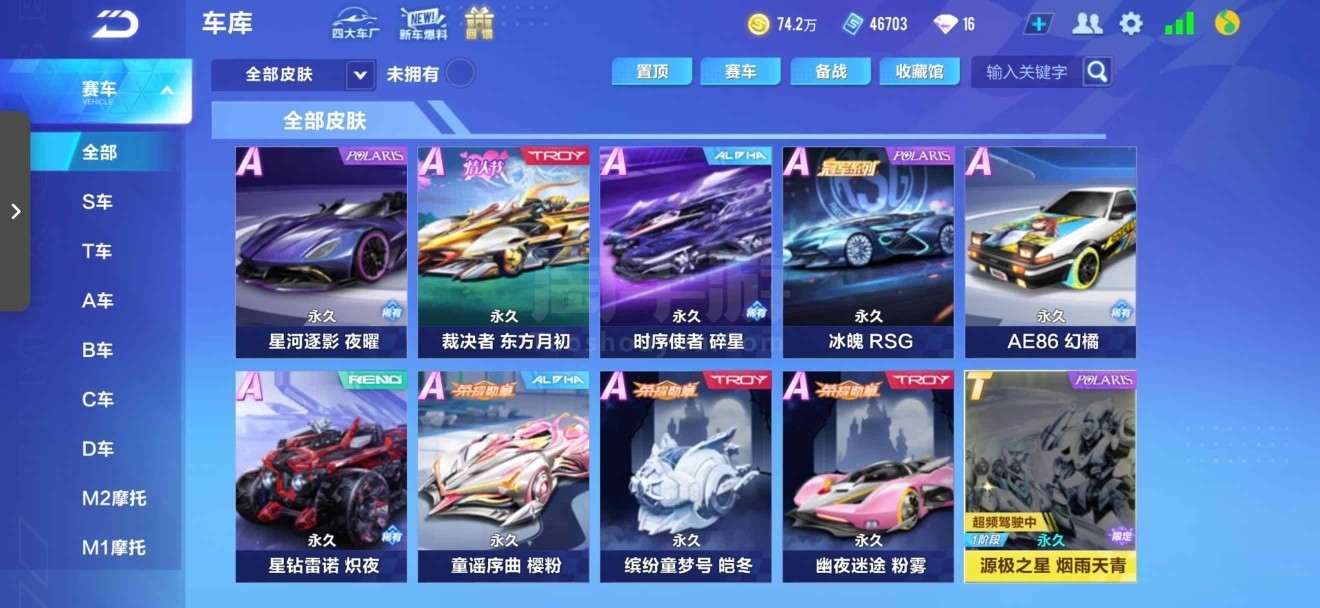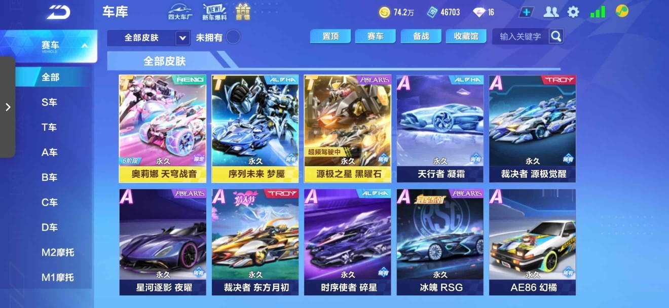 贵族V11,3T车,超强5联赛车,T车:源极之星EXA,序列未来LYR,奥莉娜,T车皮肤:奥莉娜天穹