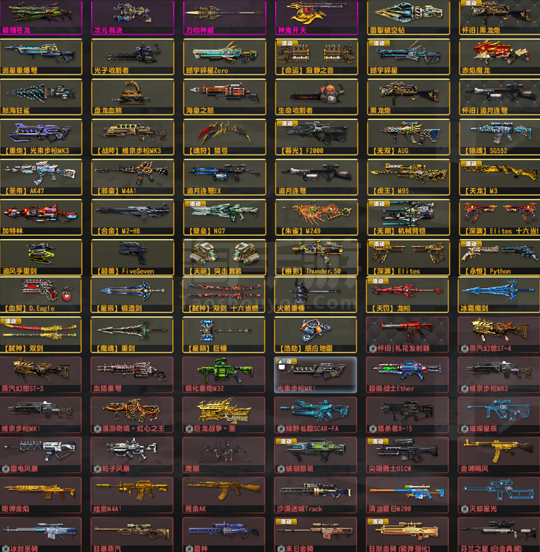 龙神次元神威三件套维京光束闪电野牛12个赛季!赛季武器有第2,6,9,10,14到21共十二个赛季