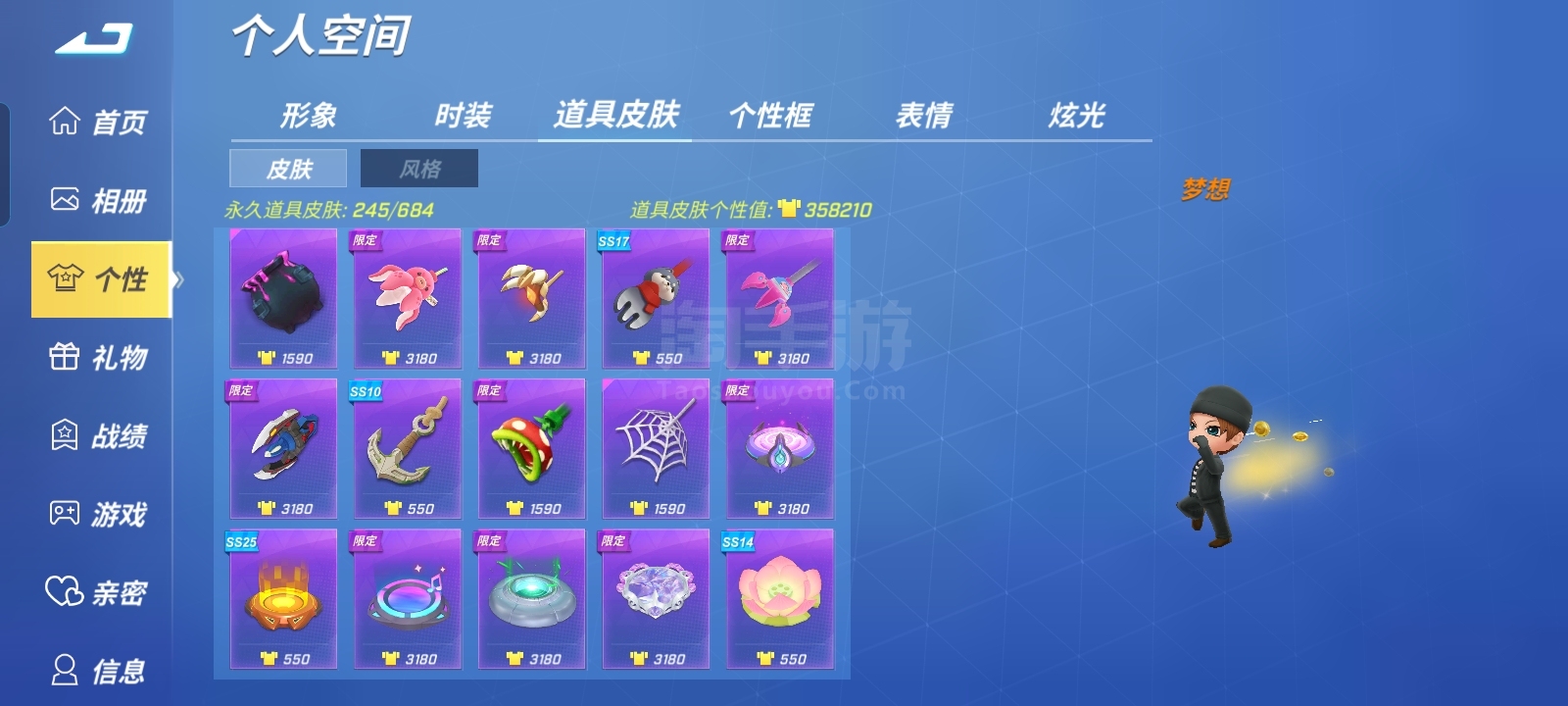 角色皮肤较多,道具卡很多也都是有皮肤的,有问题课咨询。