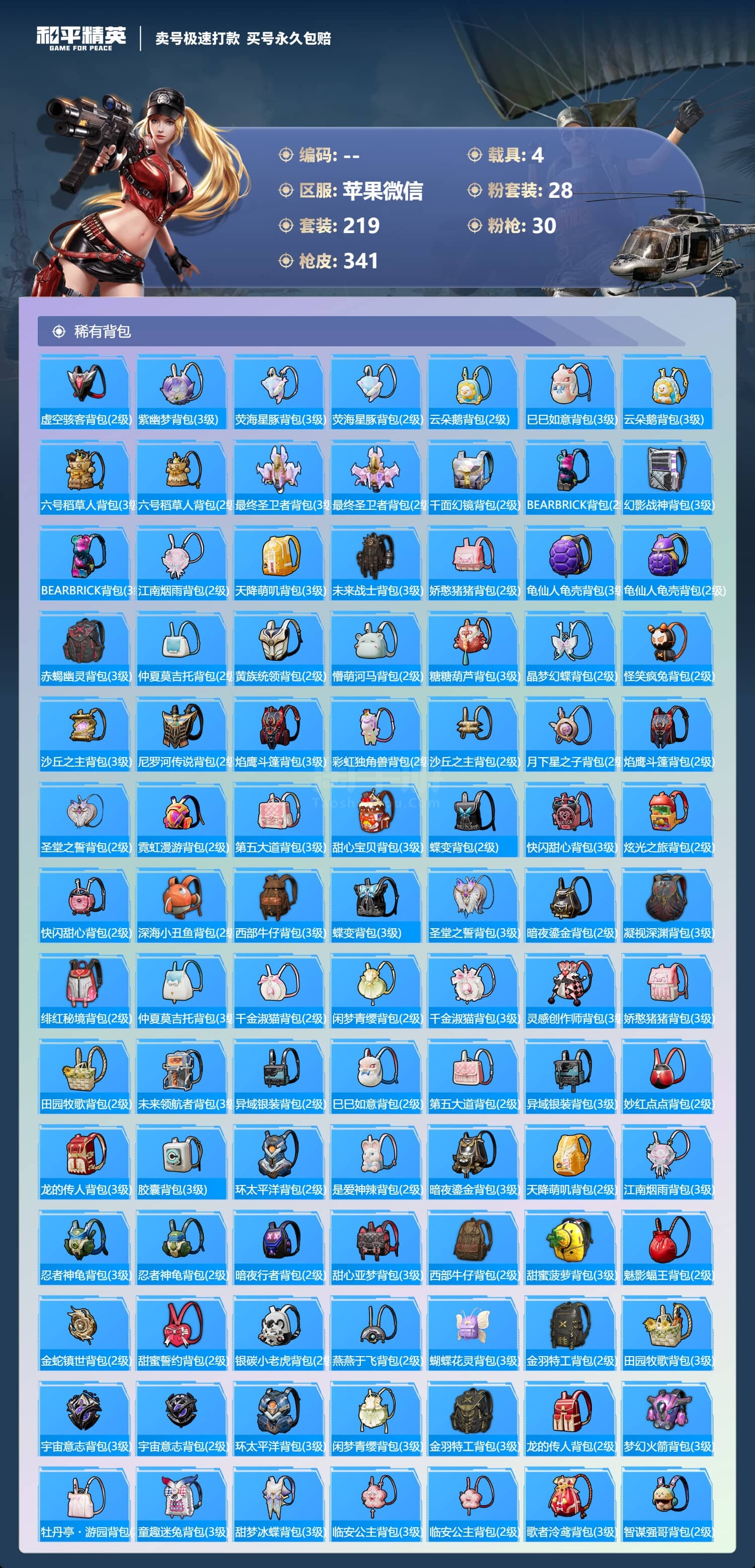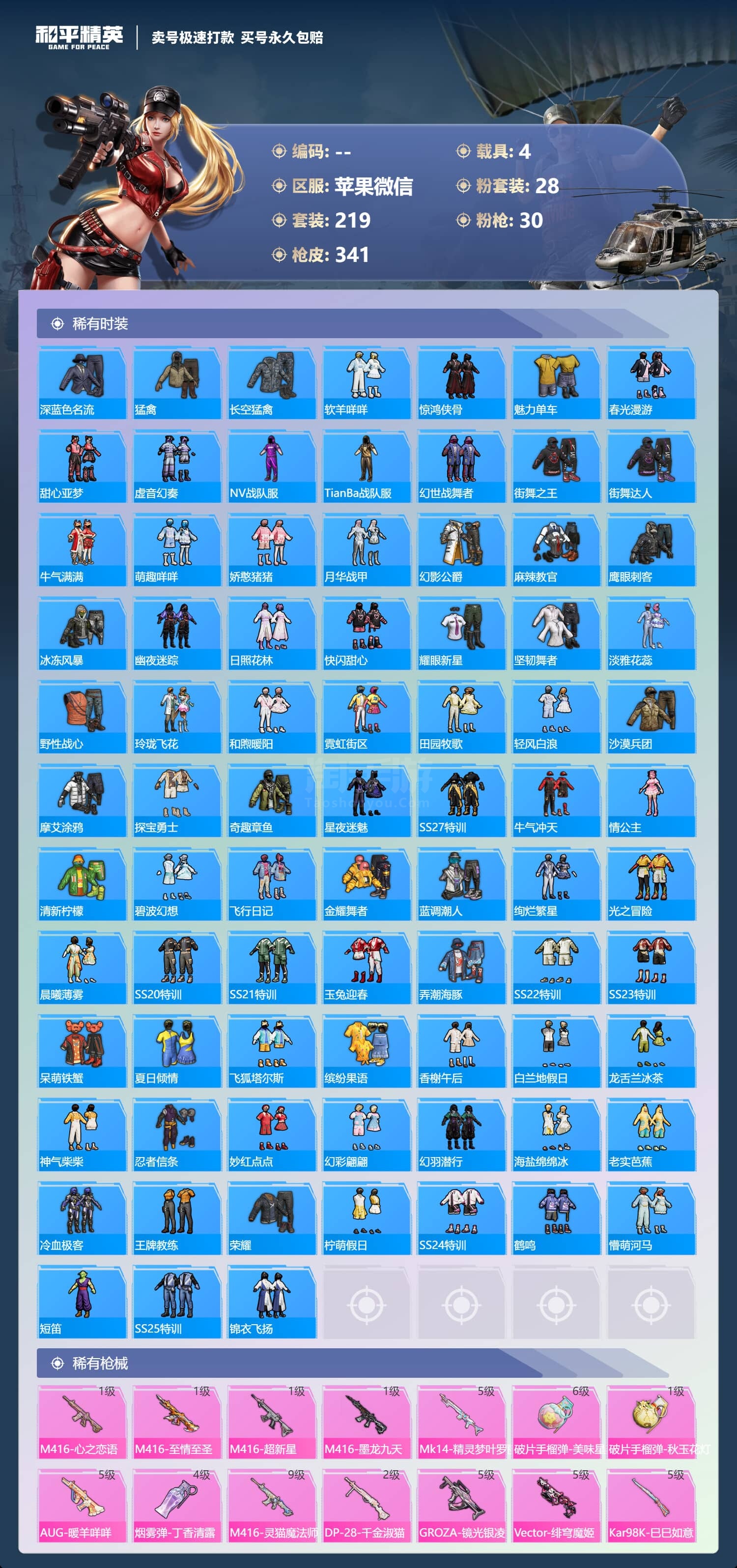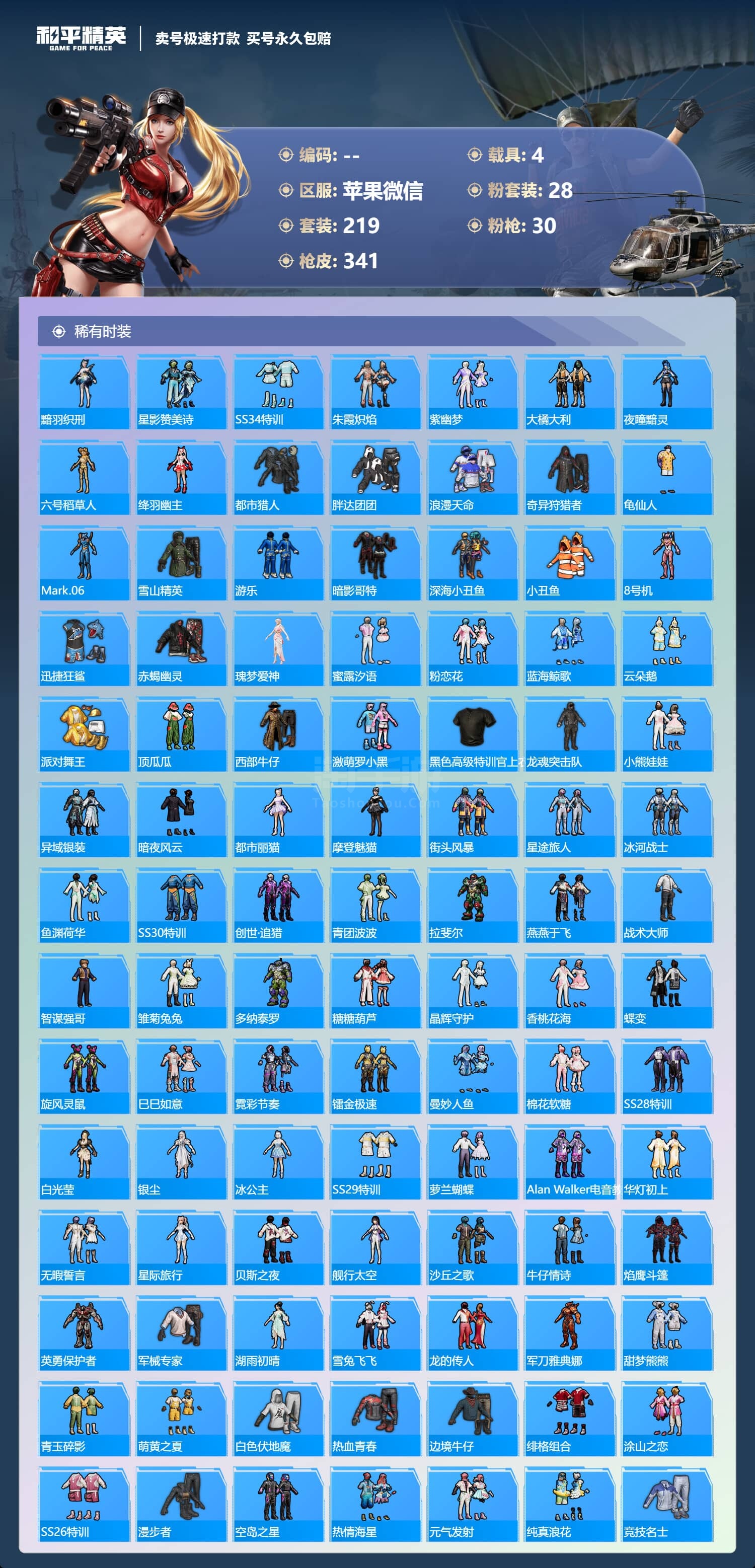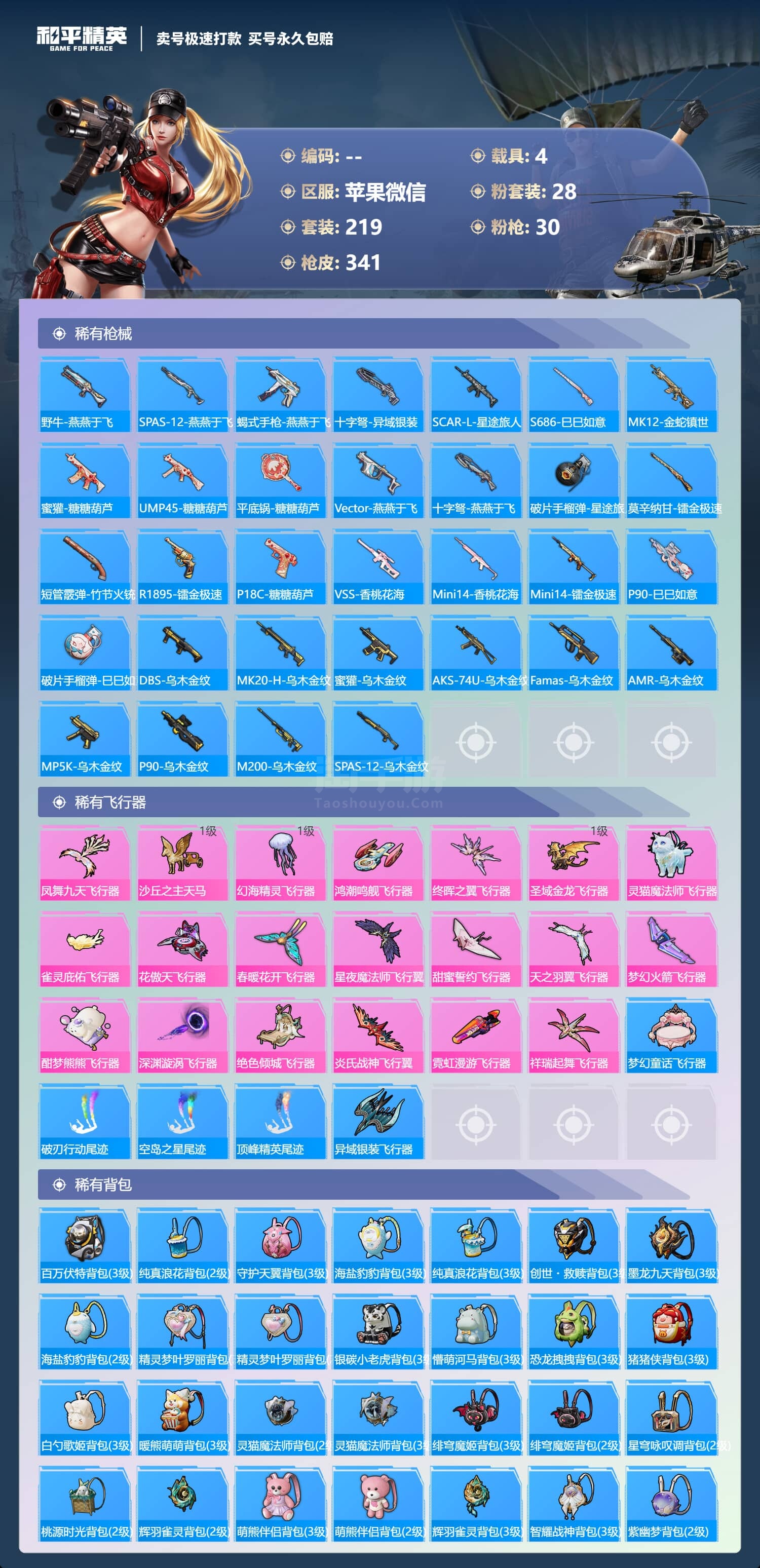 和平精英【苹果微信】a3773/苹果微/五级M4宝马(灿阳金)/四级图卡盟/九级灵魔法师/身法套装号/-14王牌印记-