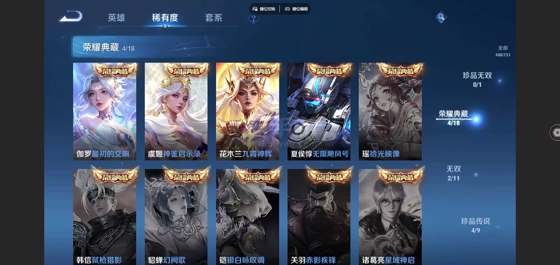 万战小国武则天 中路58段 游走36段V9-408皮肤-5典藏 4珍品 2无双 31传说 万战金标