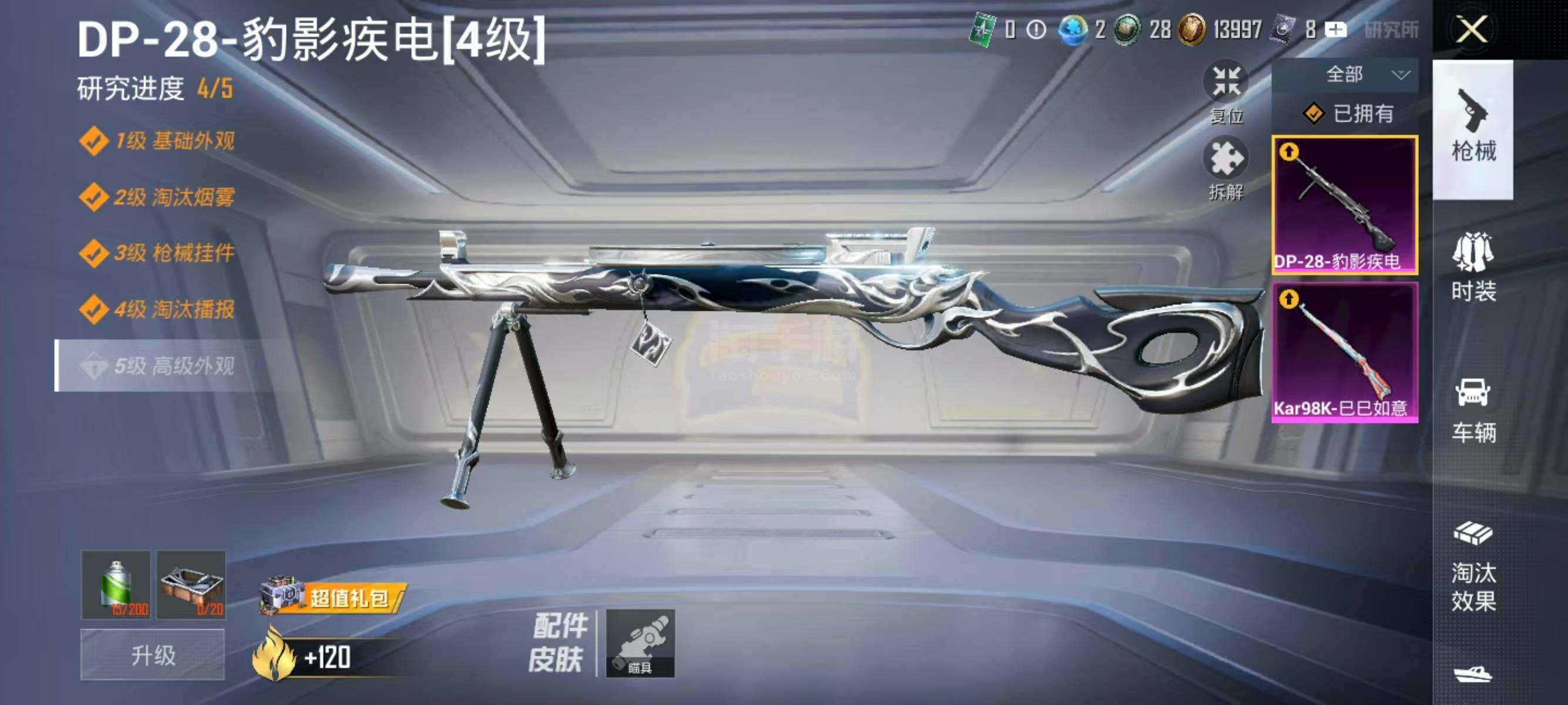 【粉色枪皮等级】:Kar98K-巳巳如意(五级),DP-28-豹影疾电(四级)