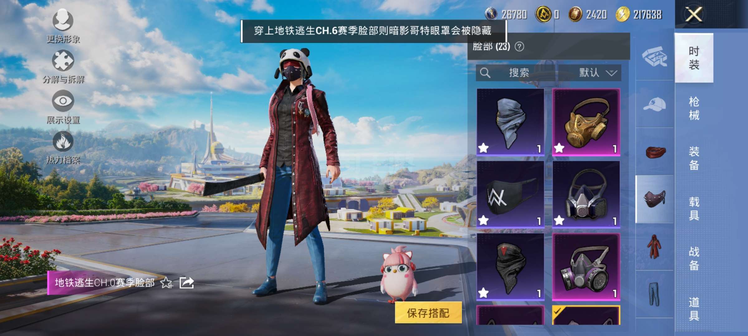 小熊背包 蓝口罩 黑口罩 胖达头盔 至尊红龙 极限特训 身法号 音符什么的 三把升级枪