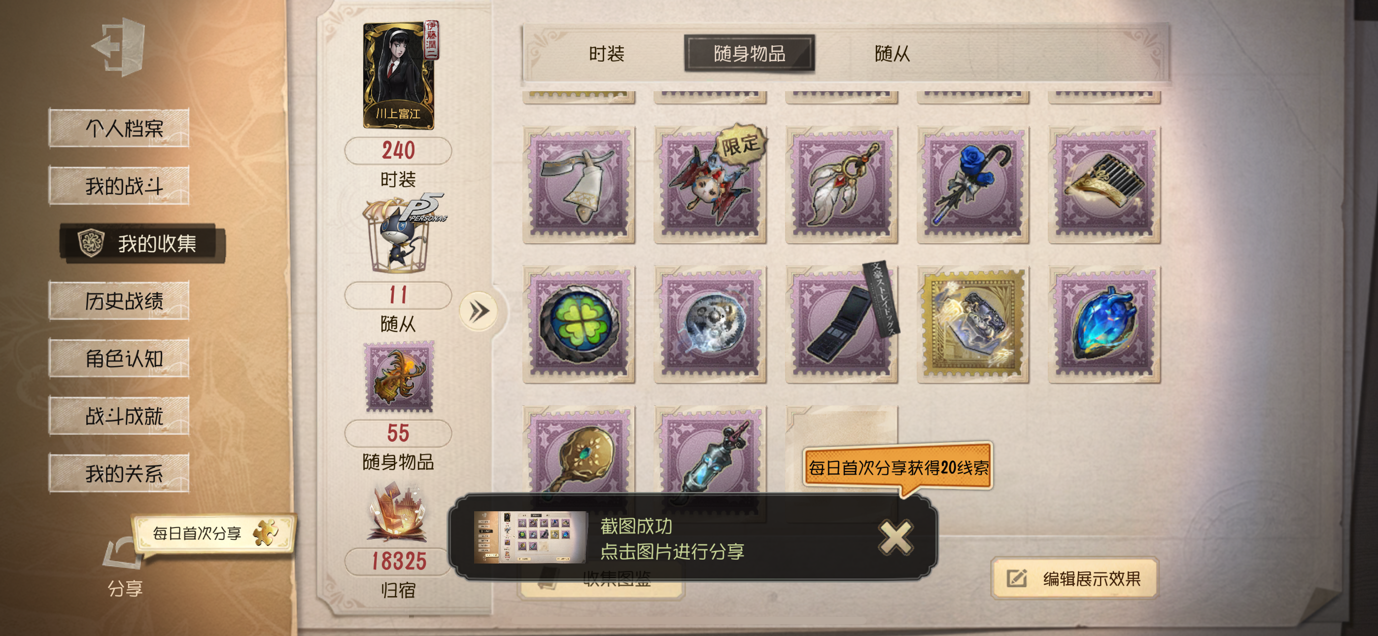 随身物品: