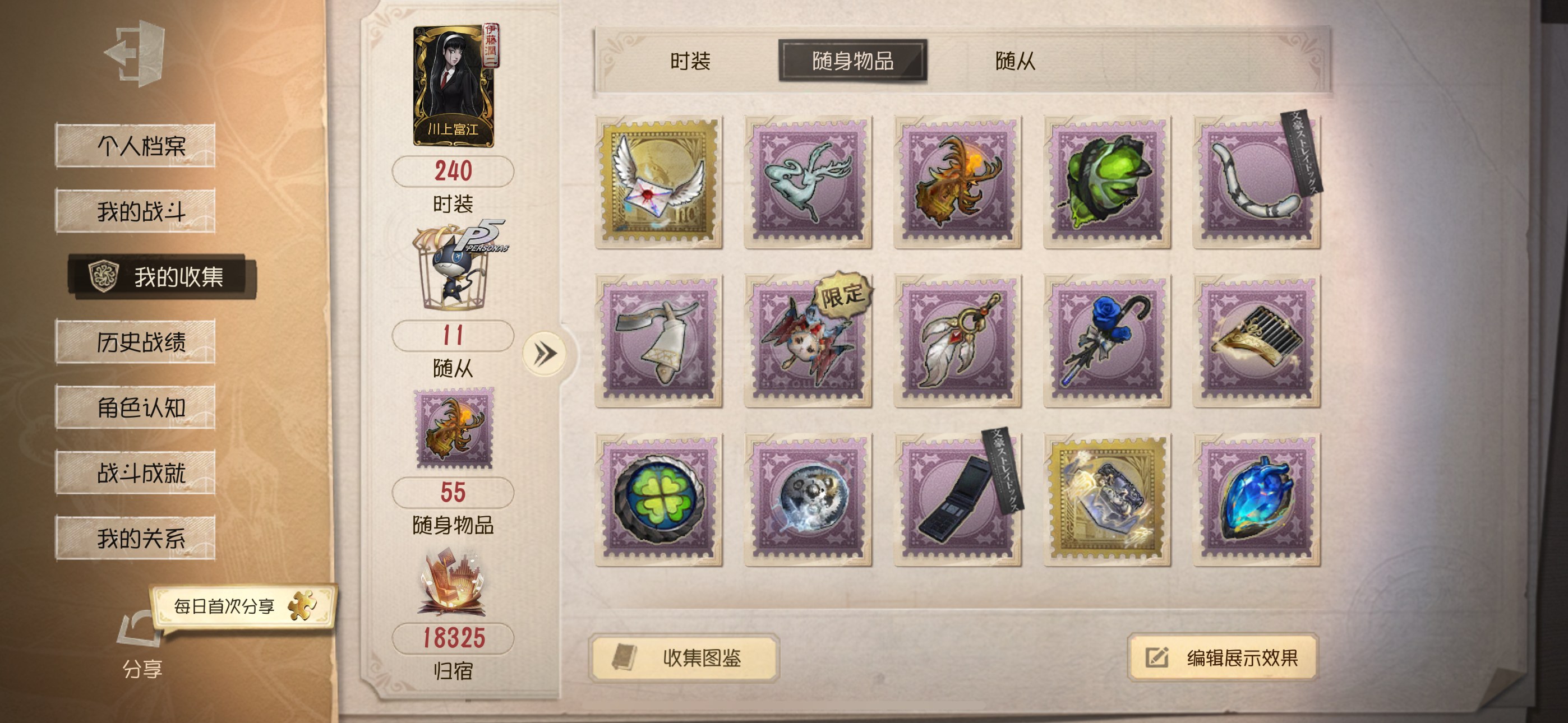 随身物品数量: