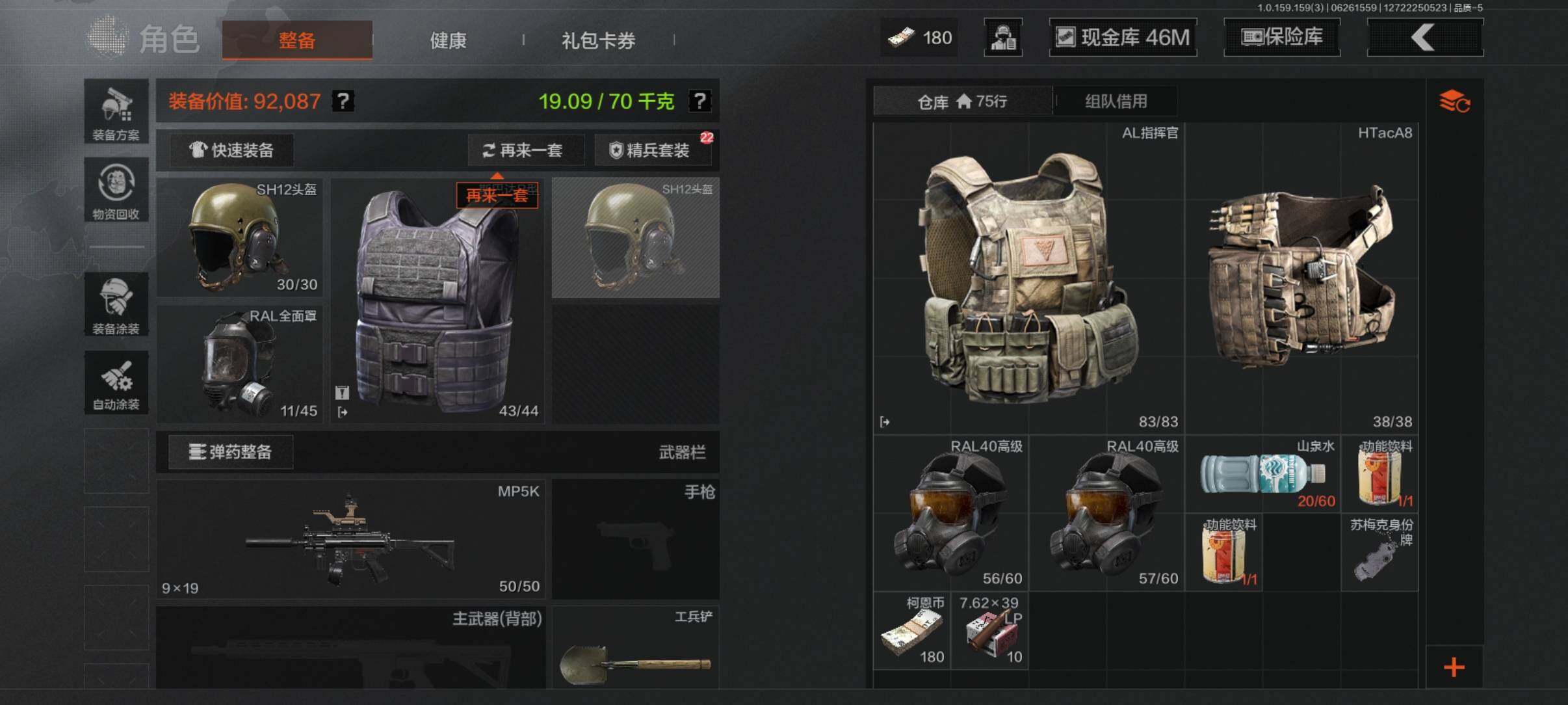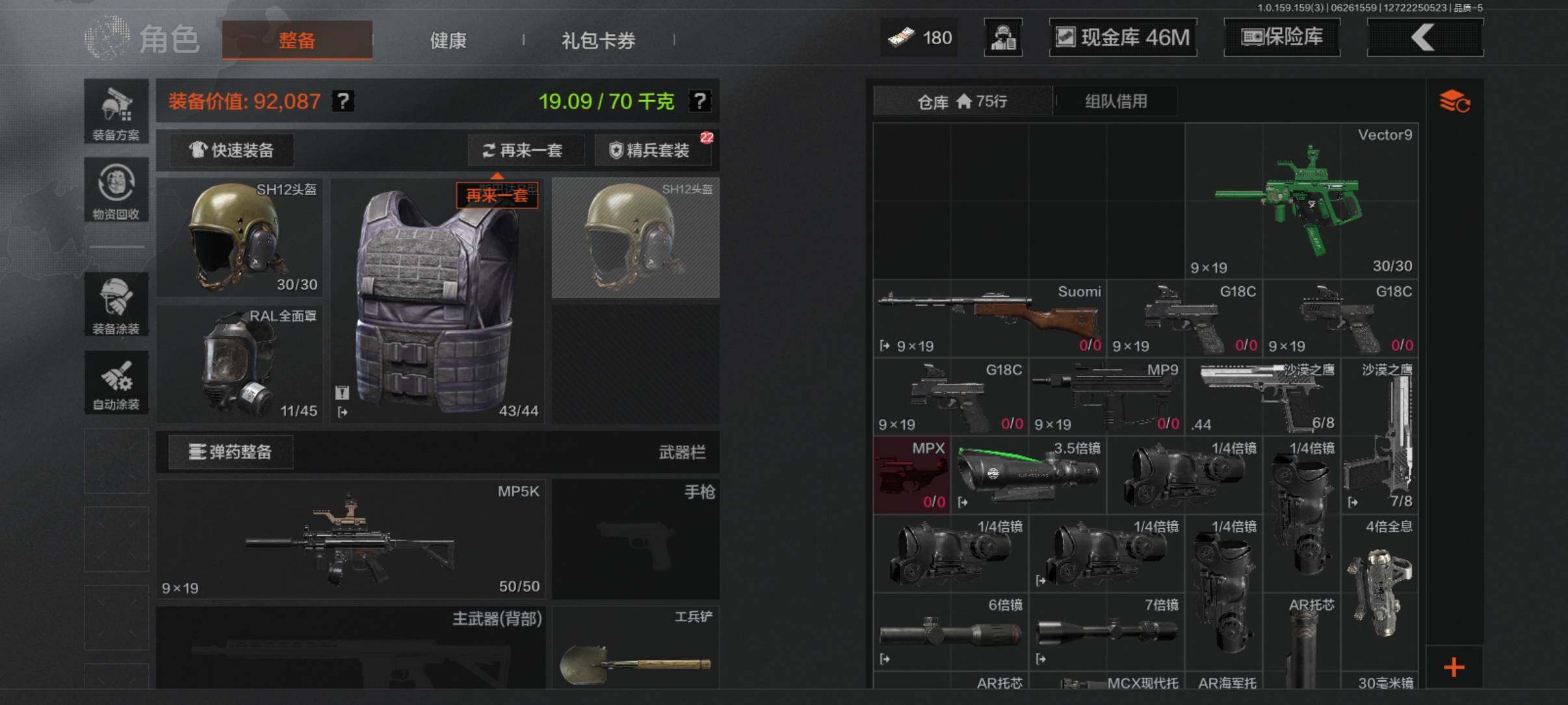 安Q可二次仓库价值56M科恩币46M,来战·AKM,电动工具·MDR,来战·AK74N,骑士之剑·MK14,工兵铲