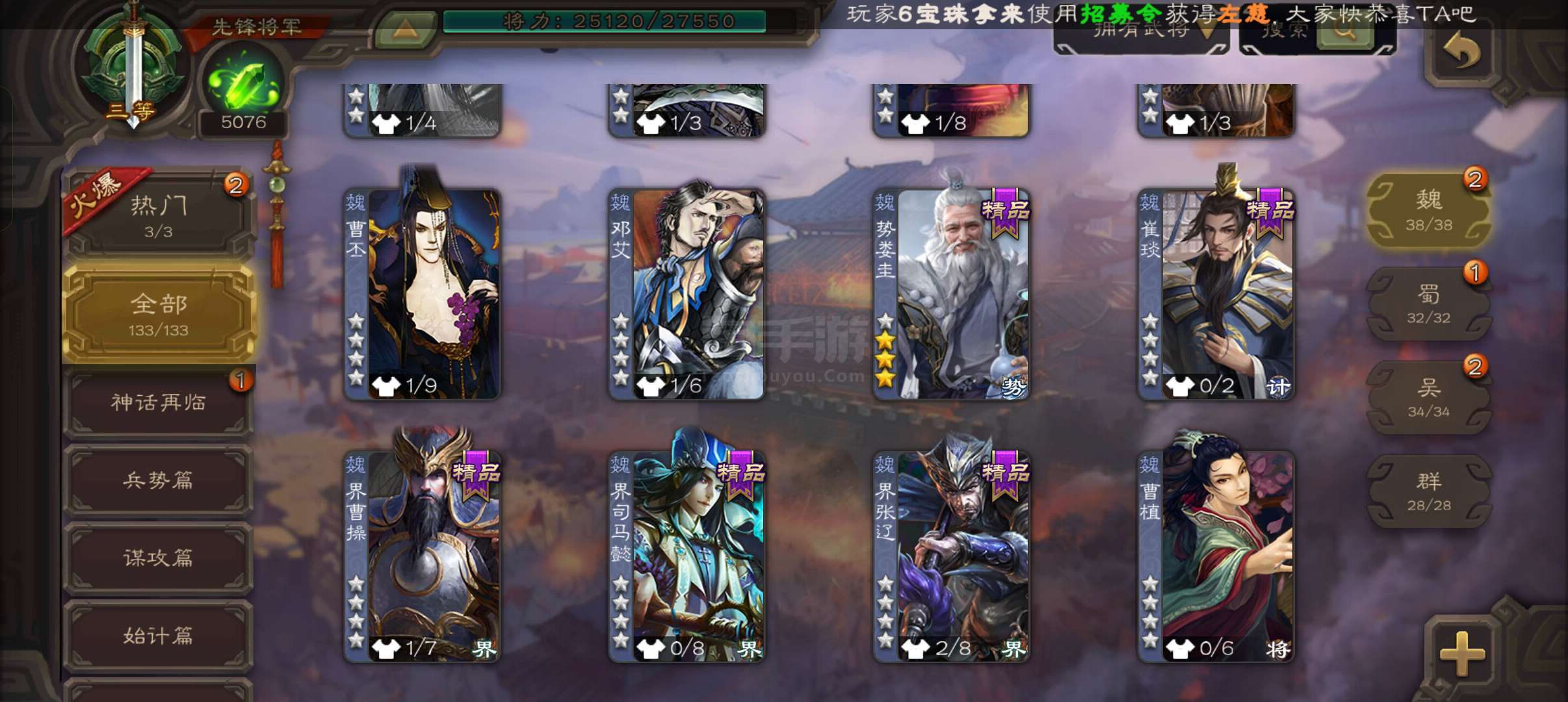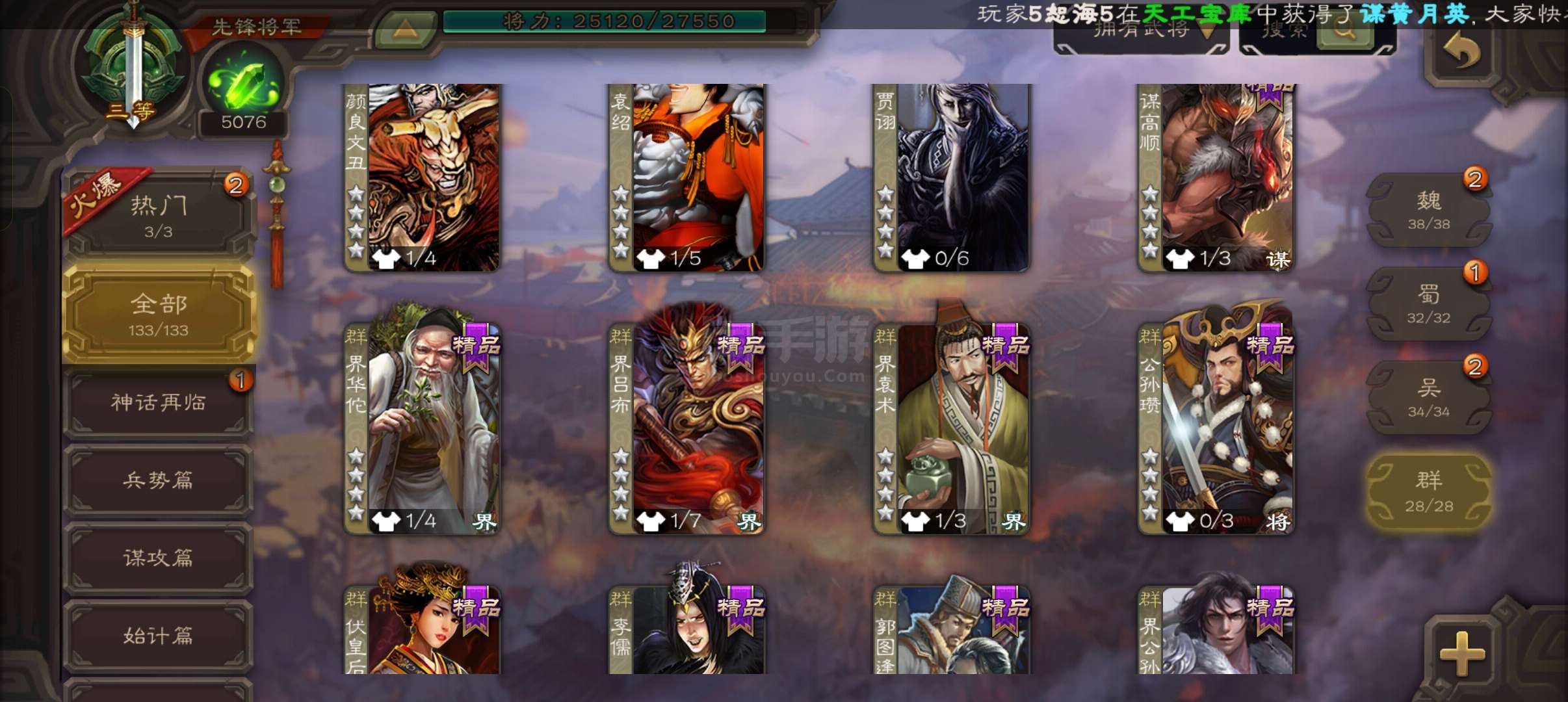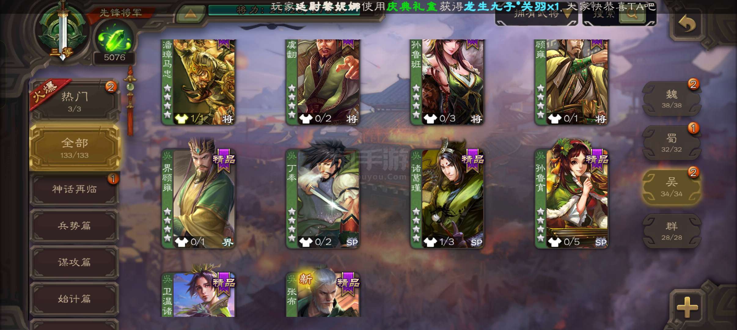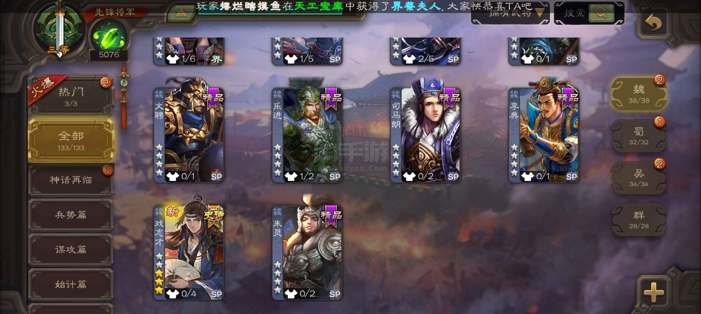 先锋将军,5100将魂,戏志才神刘备谯周3史诗,天工势娄圭神周瑜回廊界关羽甘夫人谋高顺谋小乔136将