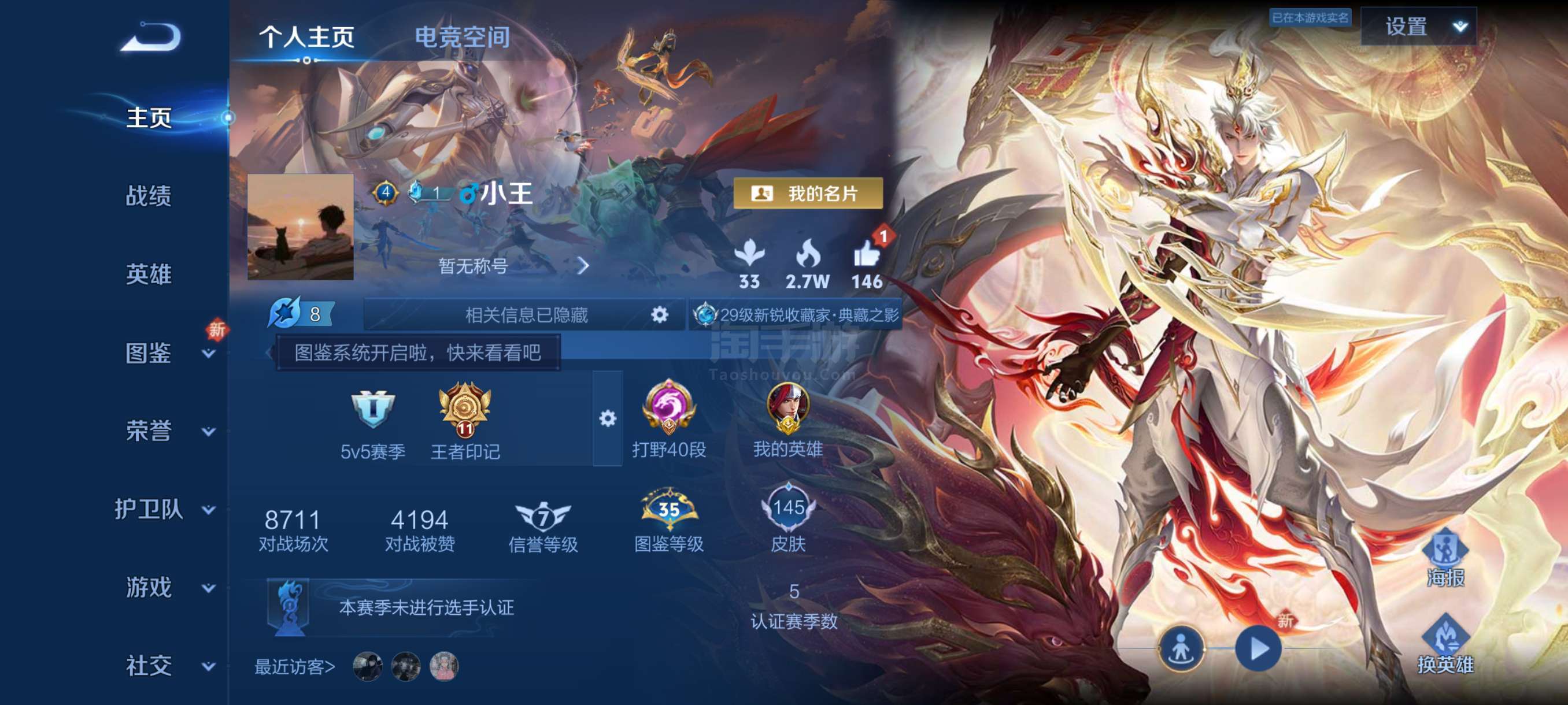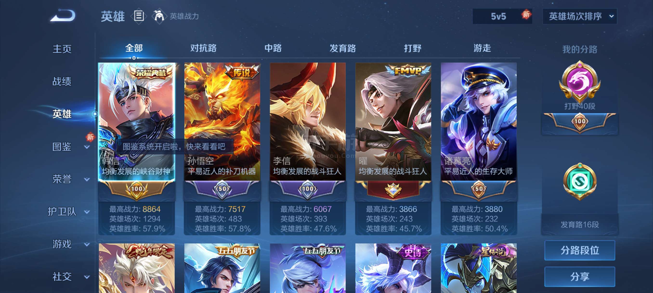 野王号一典藏,6传说,1星元,金标韩信打野四十段