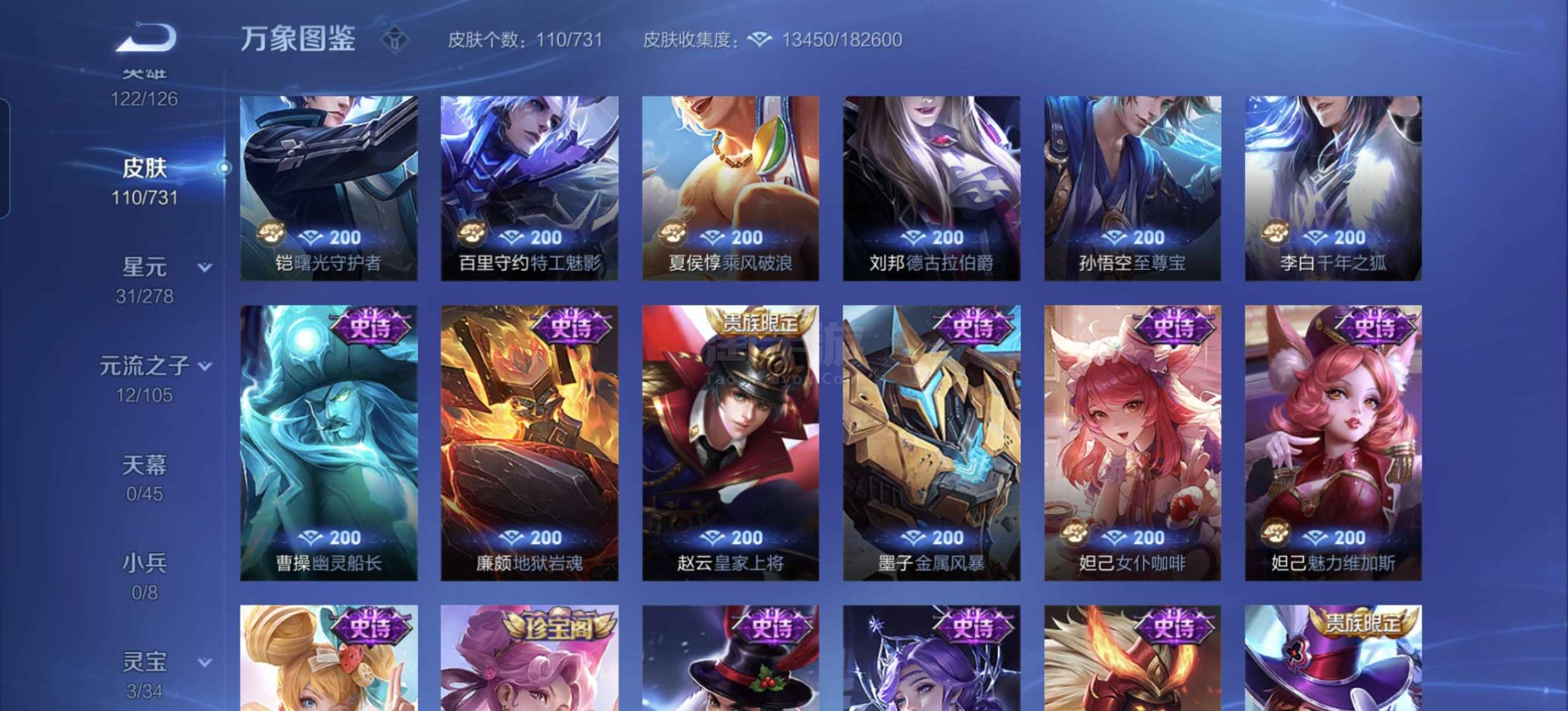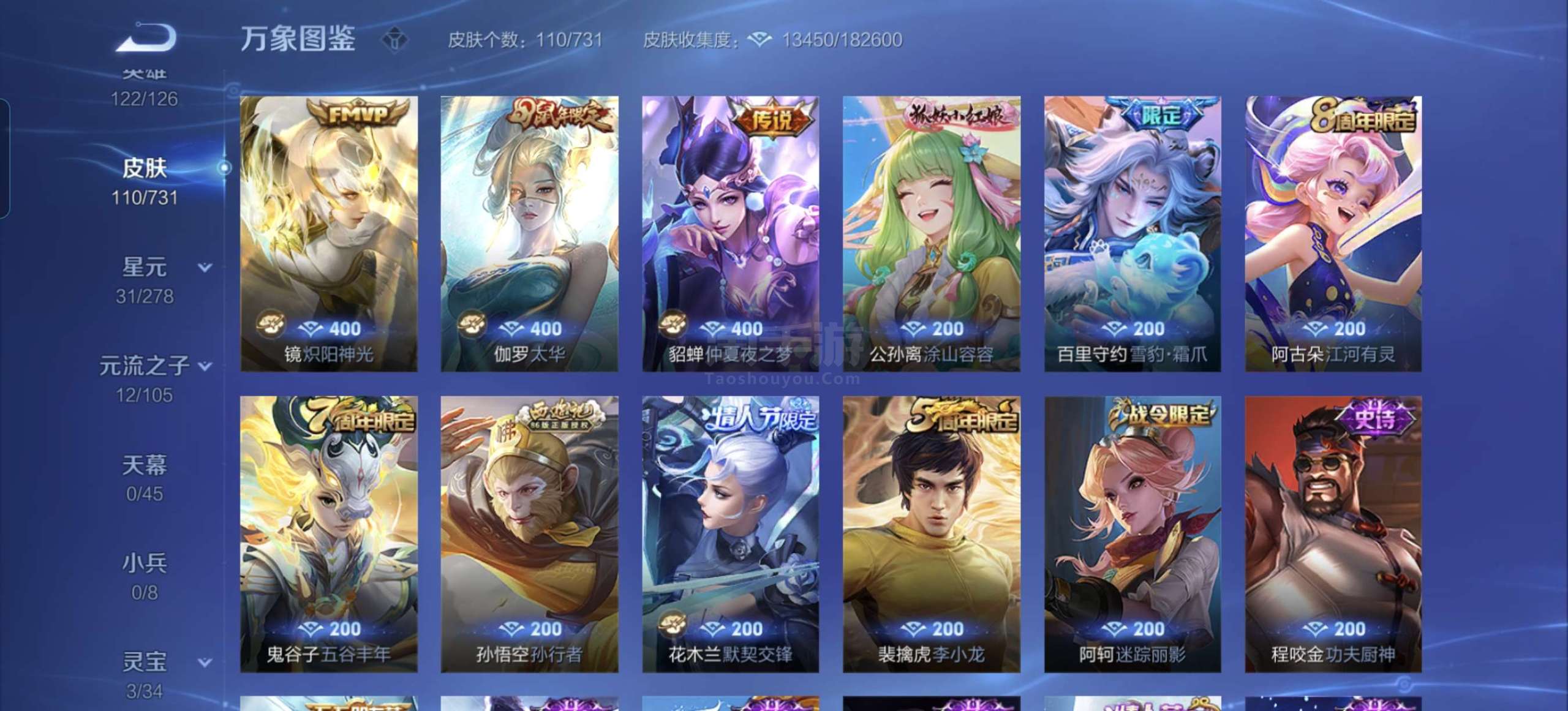背包有荣耀典藏,炽热神光,貂蝉夏之夜,伽罗太华至尊宝