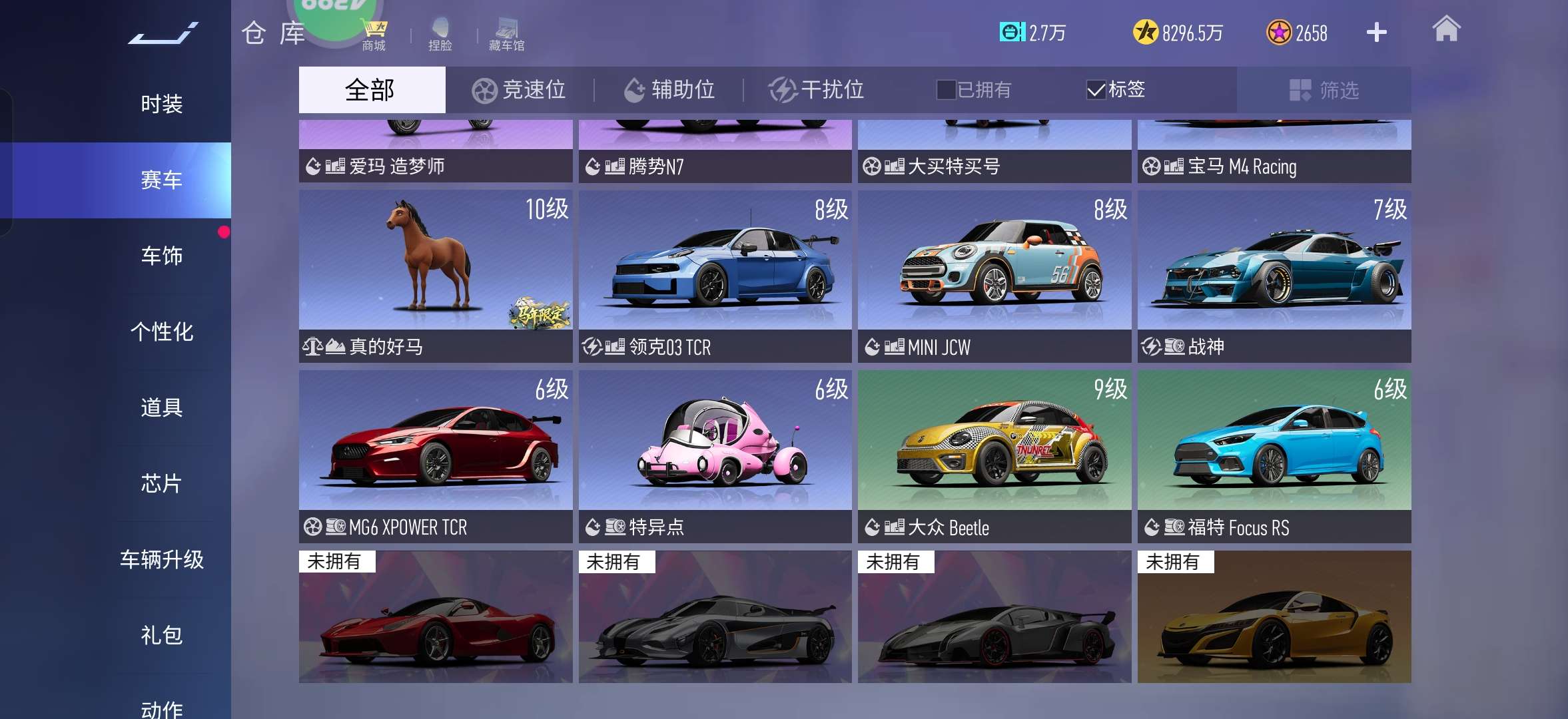稀有赛车数量: