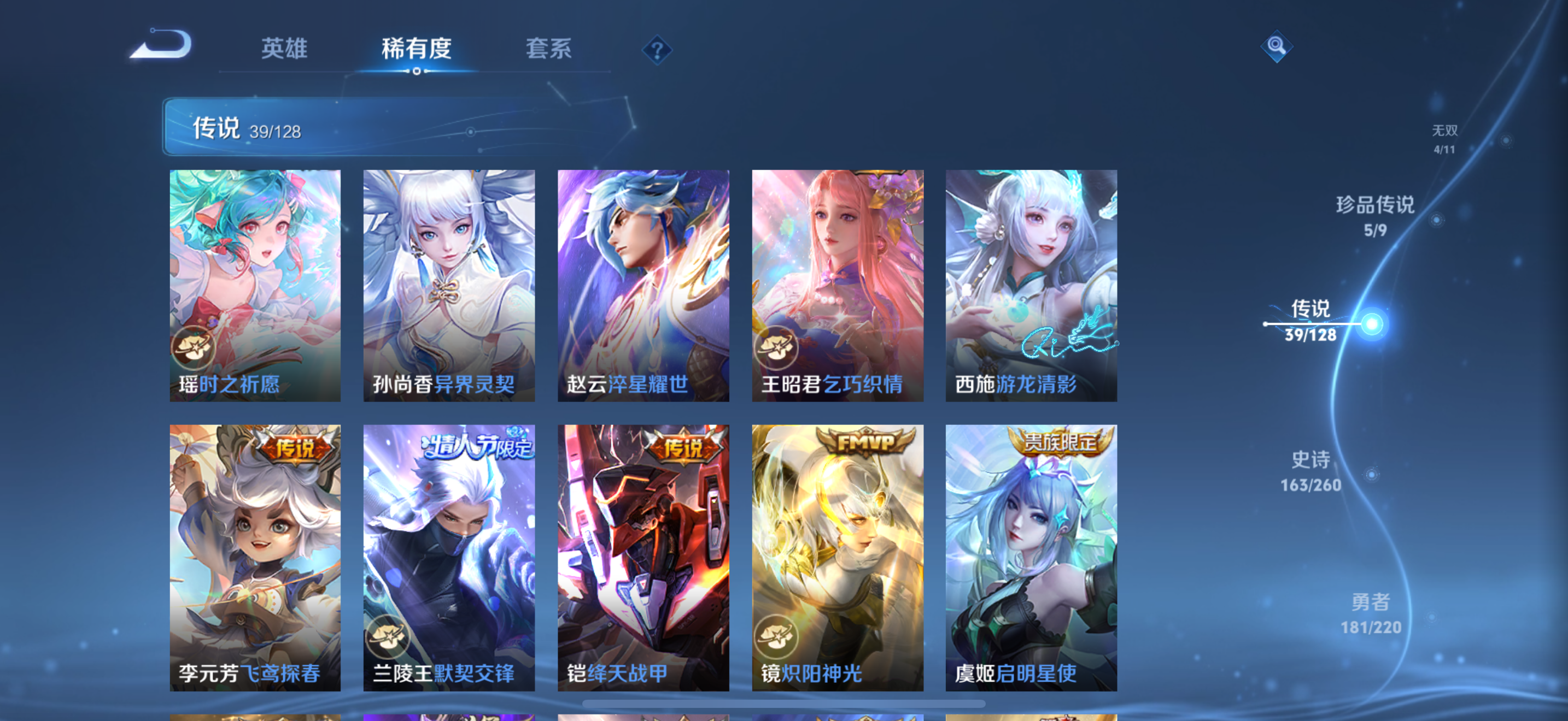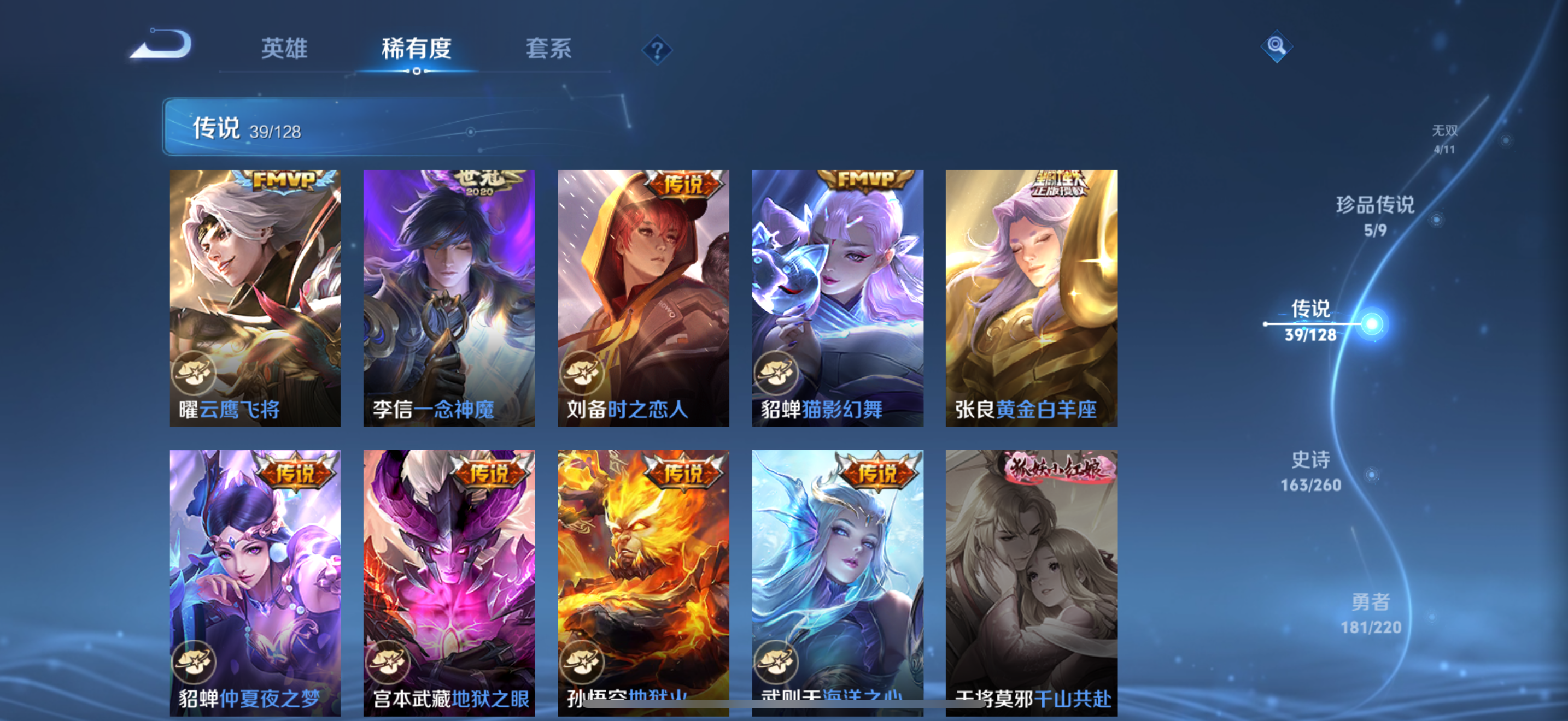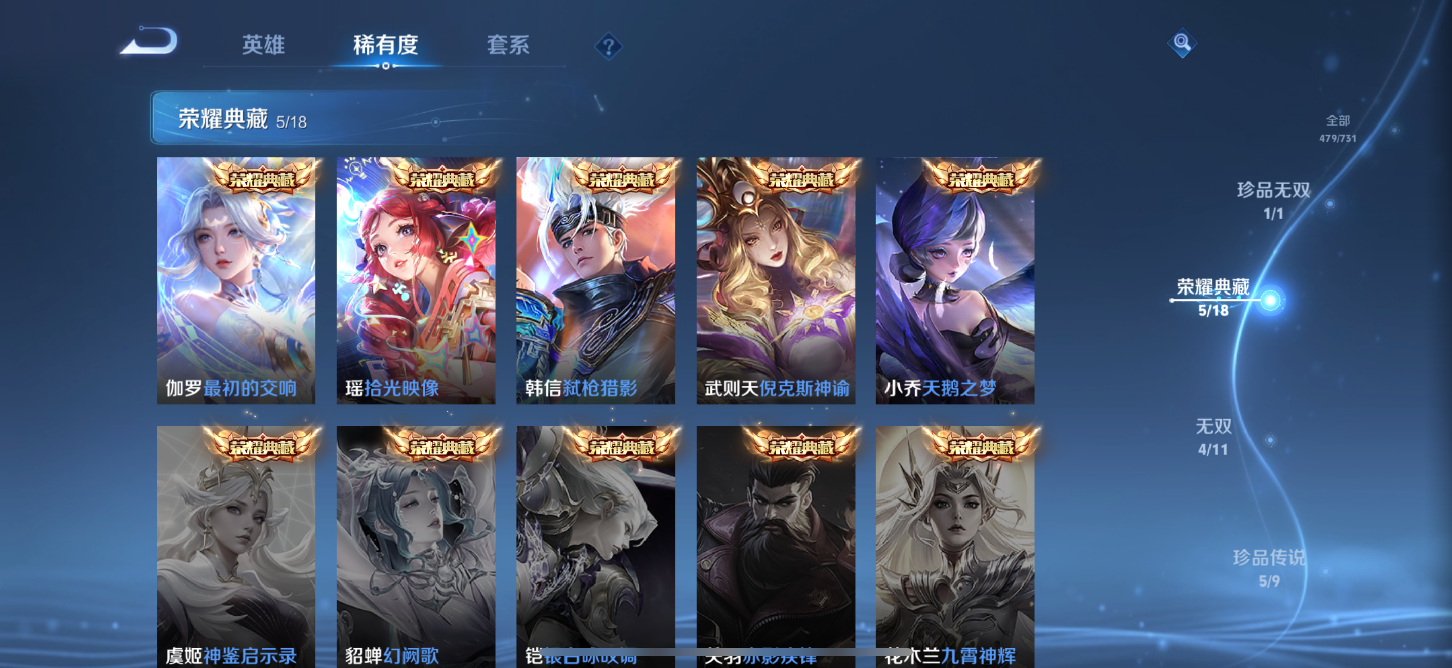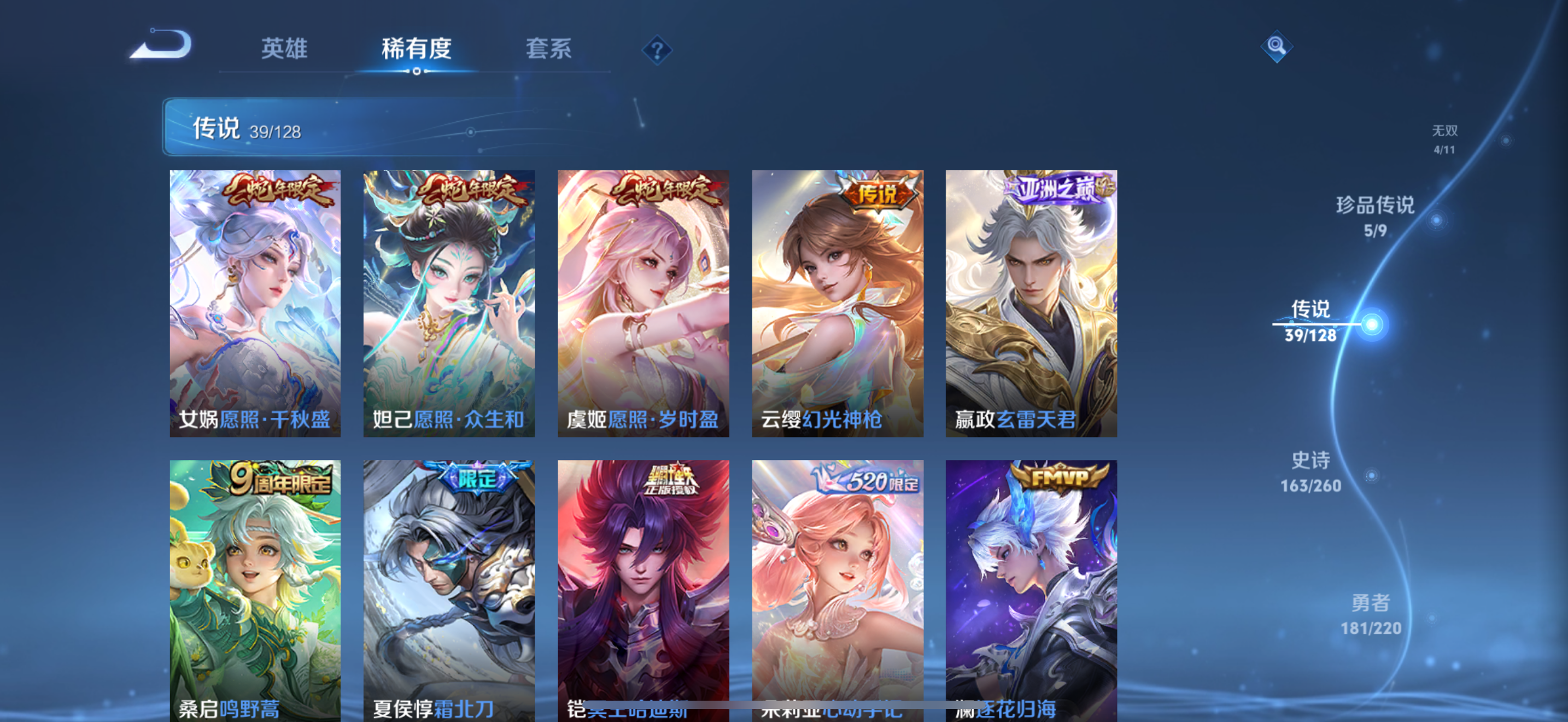 女生主玩皮肤较多,瑶全皮妲己全皮