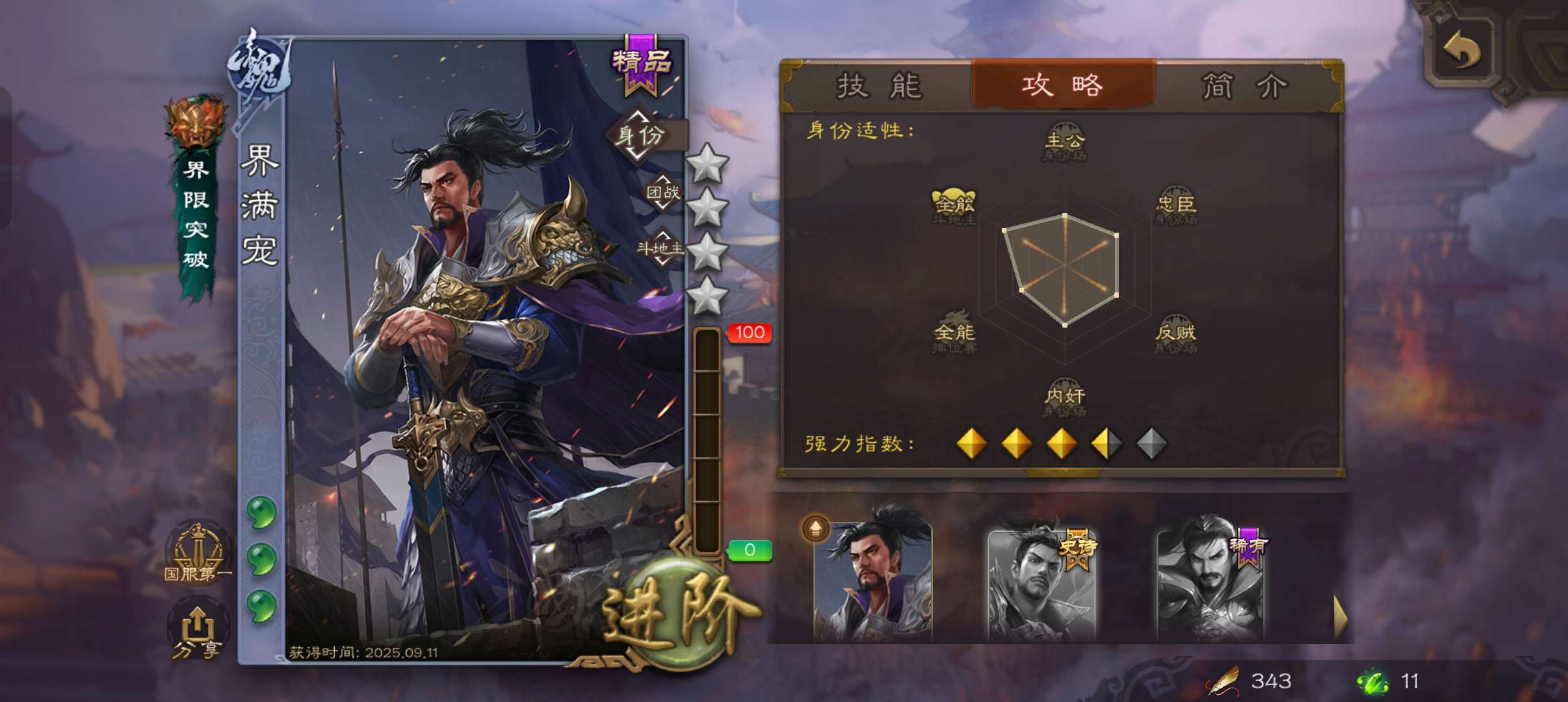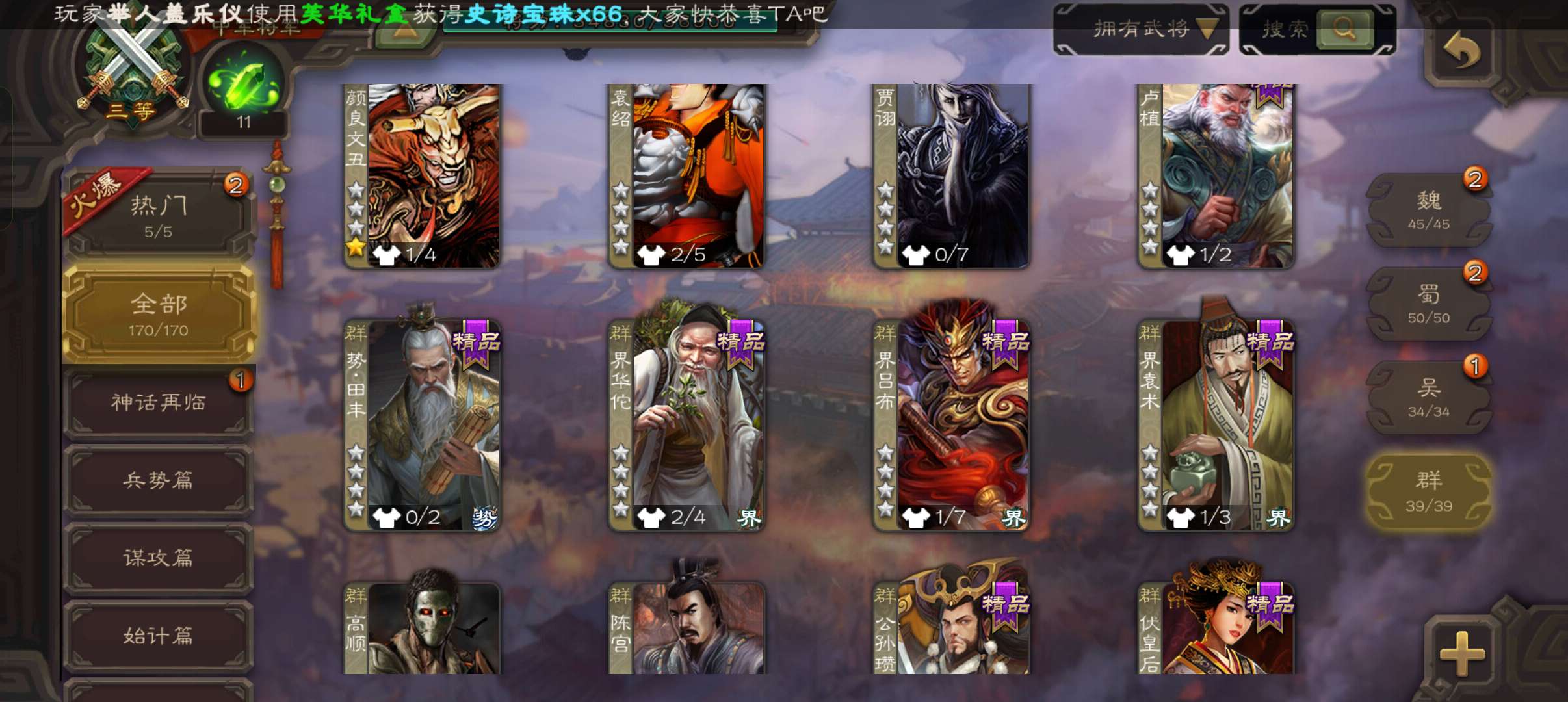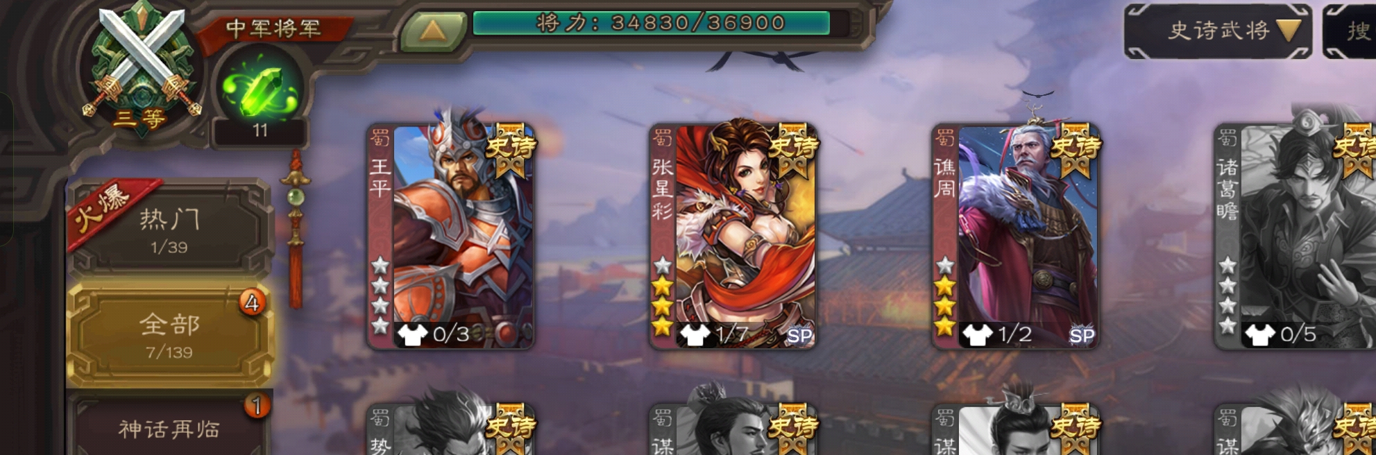史诗武将数量: