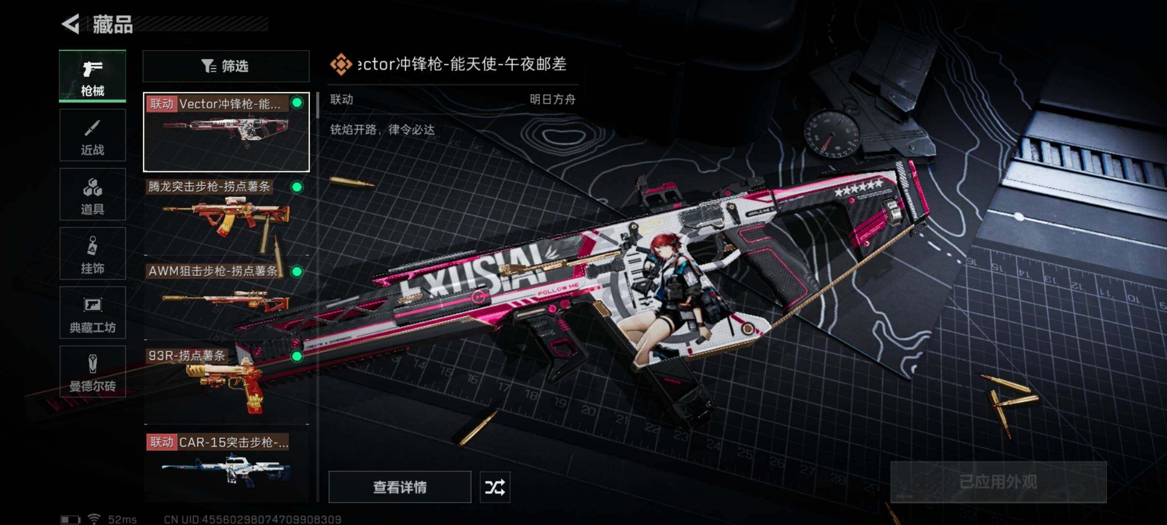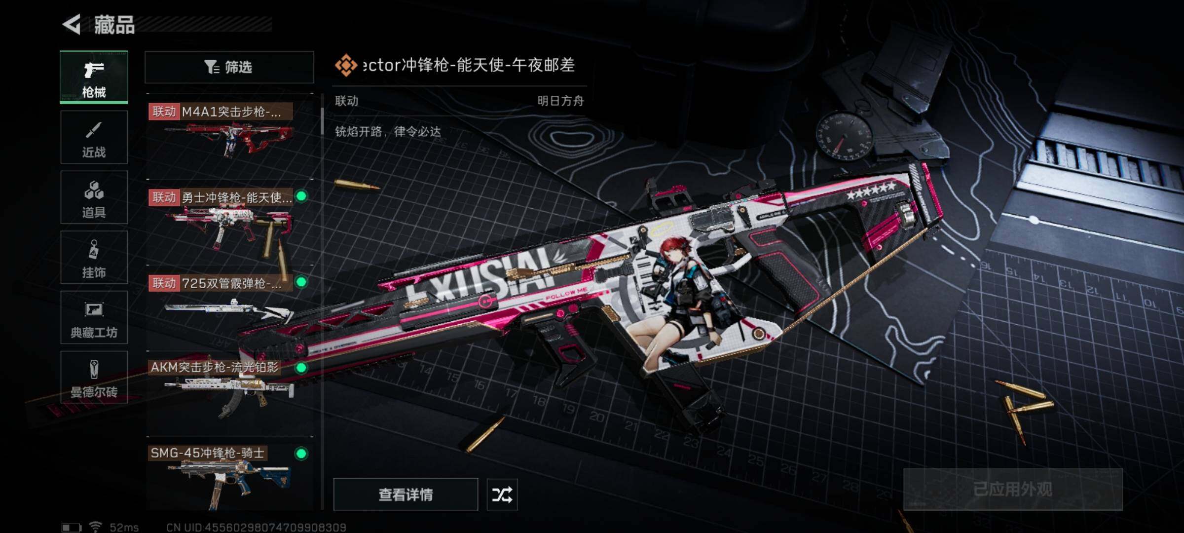 【典藏外观】:G18-银灰金属,K416突击步枪-星之彩,P90冲锋枪-星之彩,MP7冲锋枪-黑潮,P