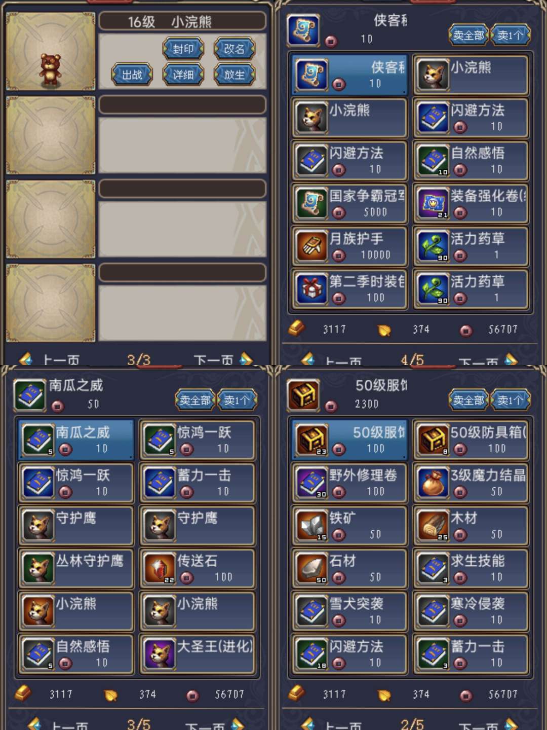 仓库空号,有各种封印技能书,带三千多金,带三档进化大圣王和史诗小浣熊加三白色小熊