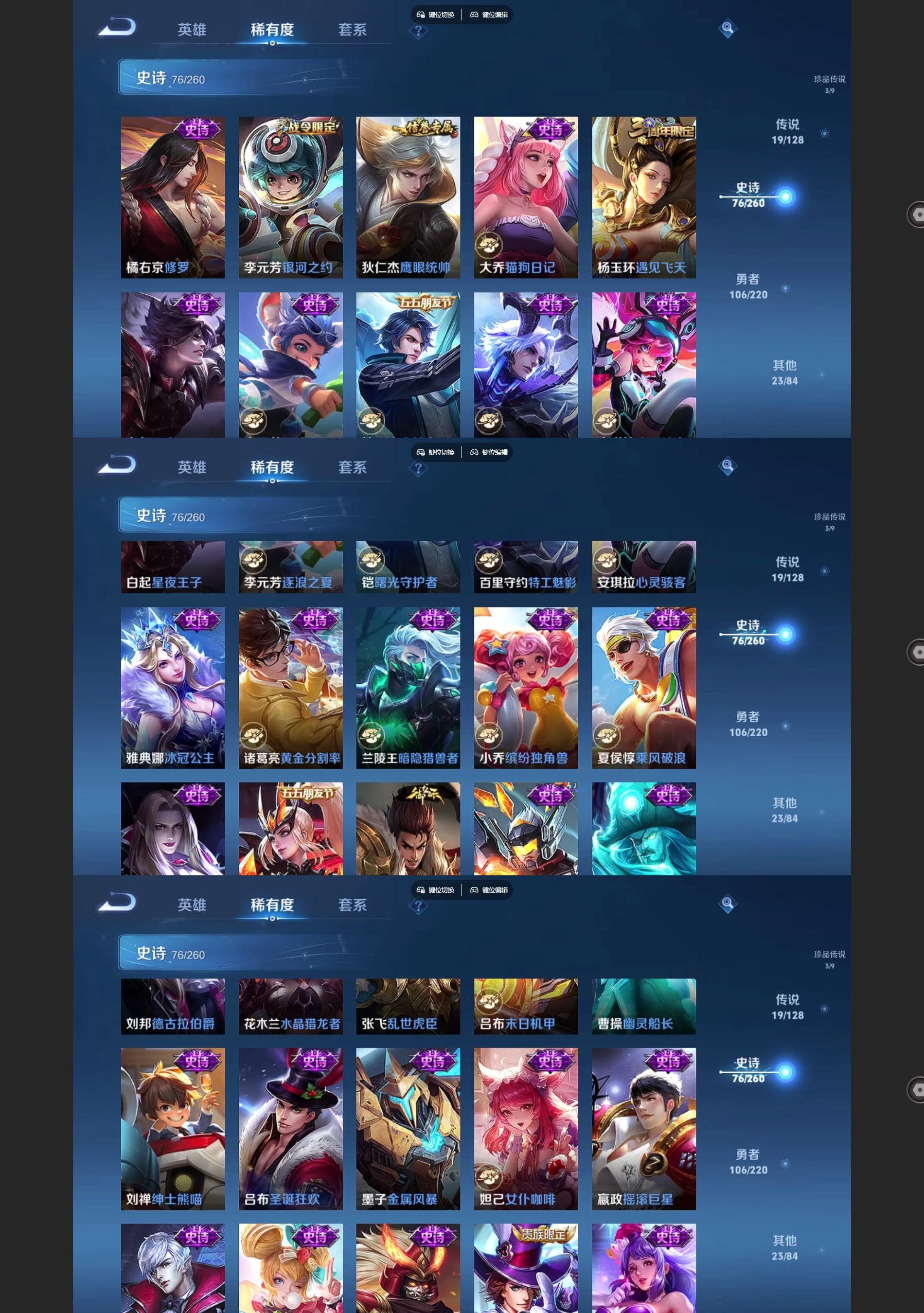 _1金标 吕布 228皮肤 1典藏 3珍品 19传说 1星