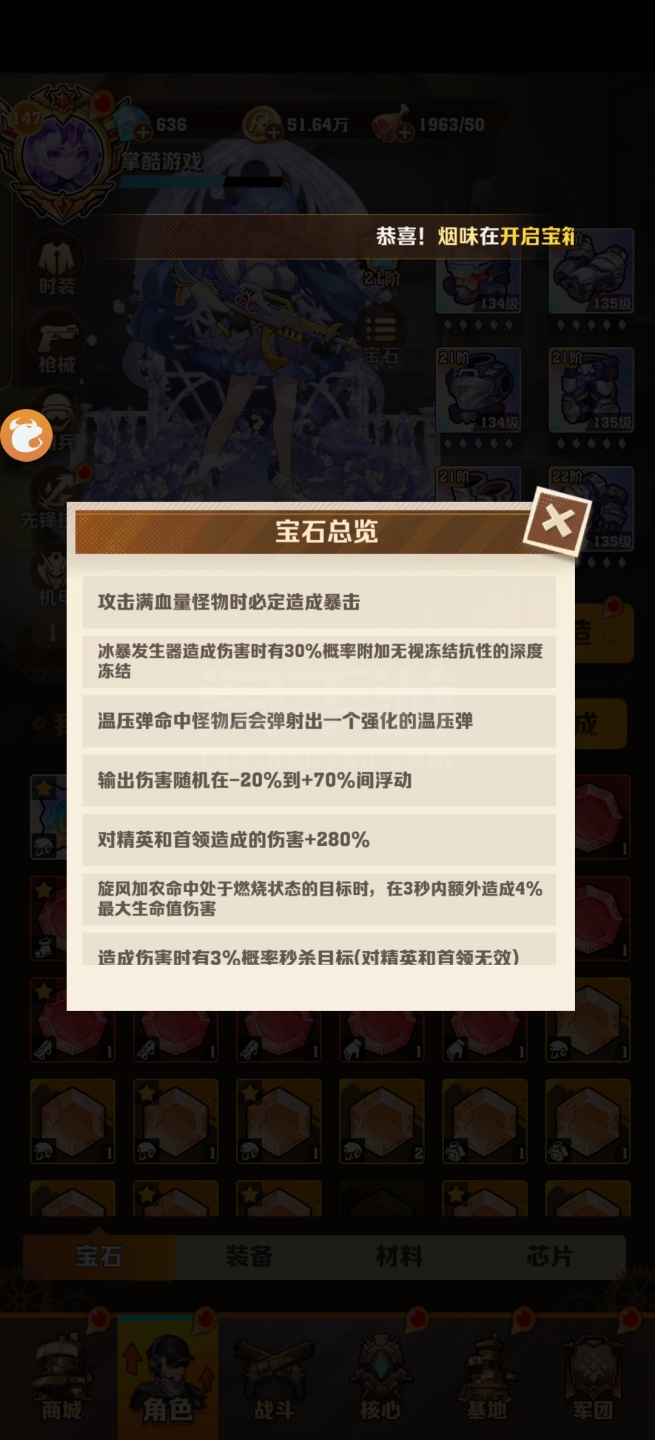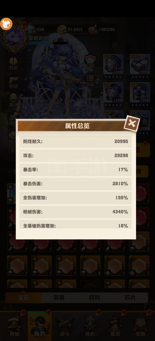 末日远征(向僵尸开炮)【安卓OPPO】15万的账号,除了至尊激光百其他基本全有,4300枪663物理,5星自由带百分比风芯片