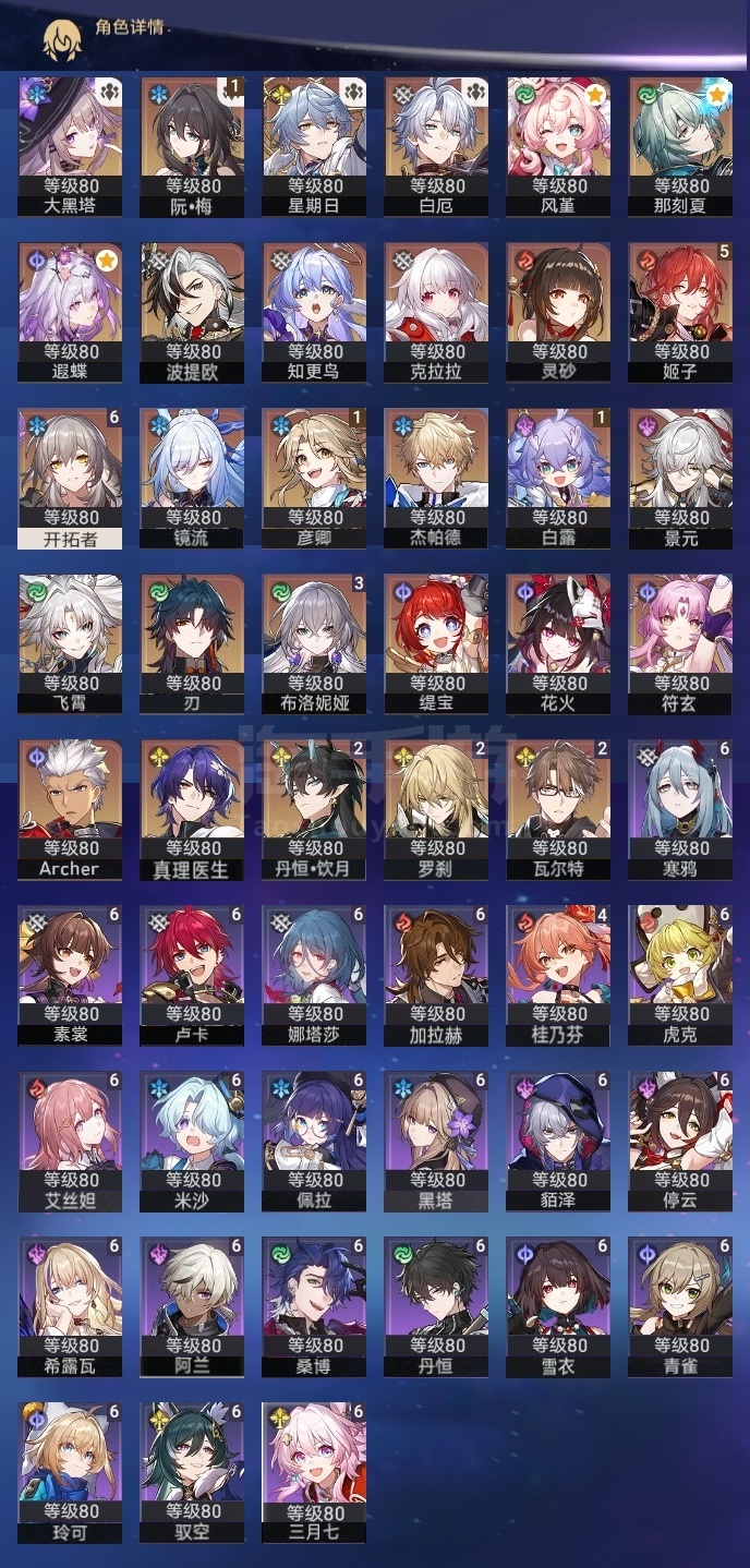 t151崩坏星穹铁道成品50限定版本主流配队:白厄星期日完全体/21遐蝶风堇完全体/大黑塔那刻夏完全