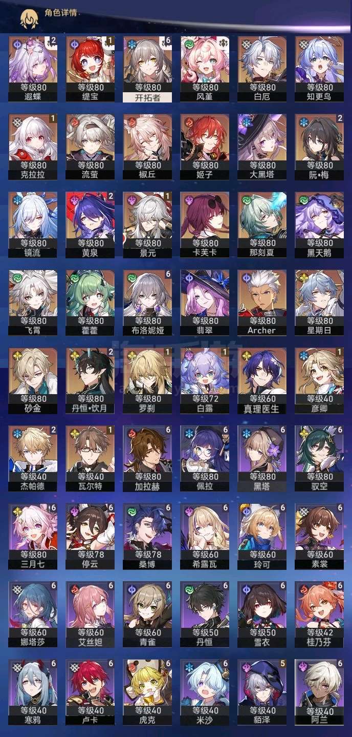 崩坏:星穹铁道【安卓官方】t151崩坏星穹铁道成品50限定版本主流配队:白厄星期日完全体/21遐蝶风堇完全体/大黑塔那刻夏完全