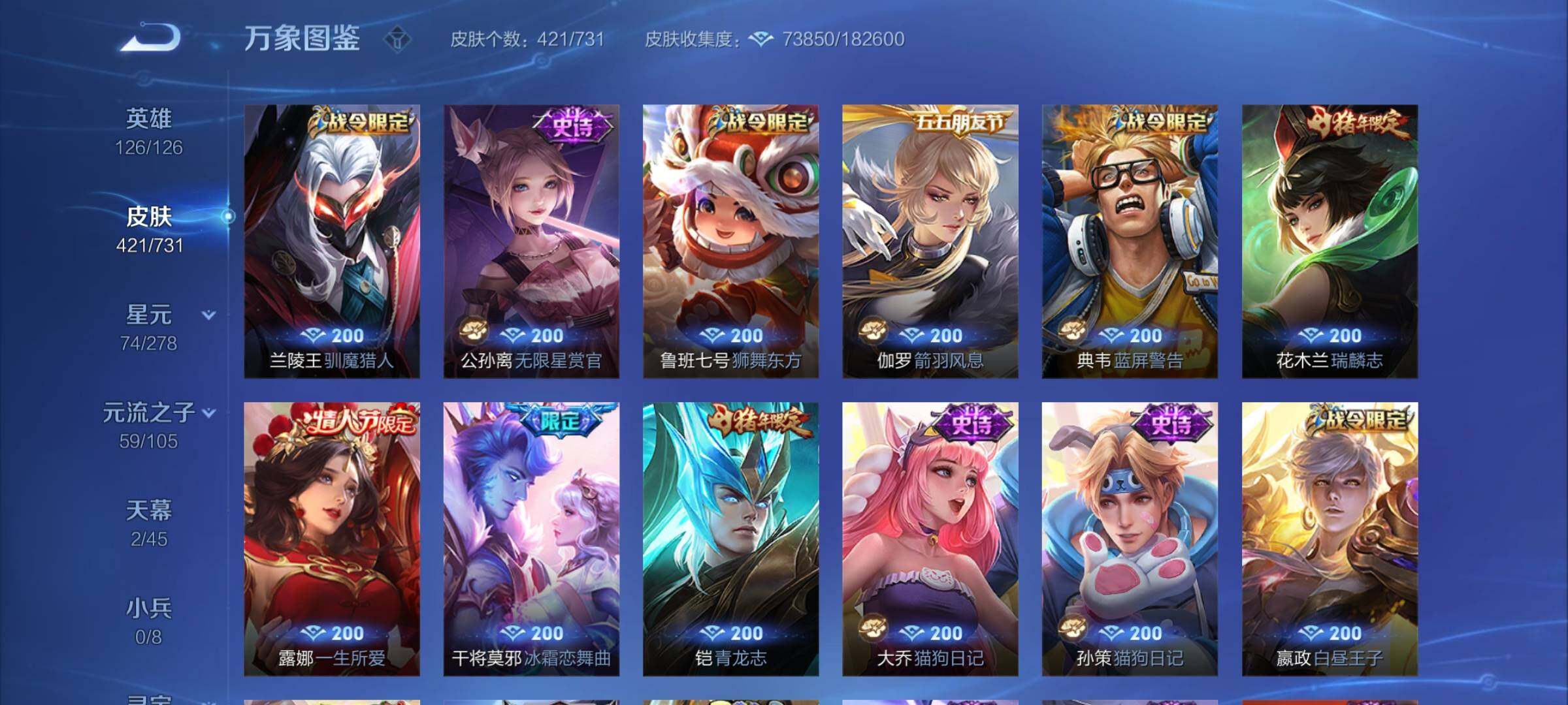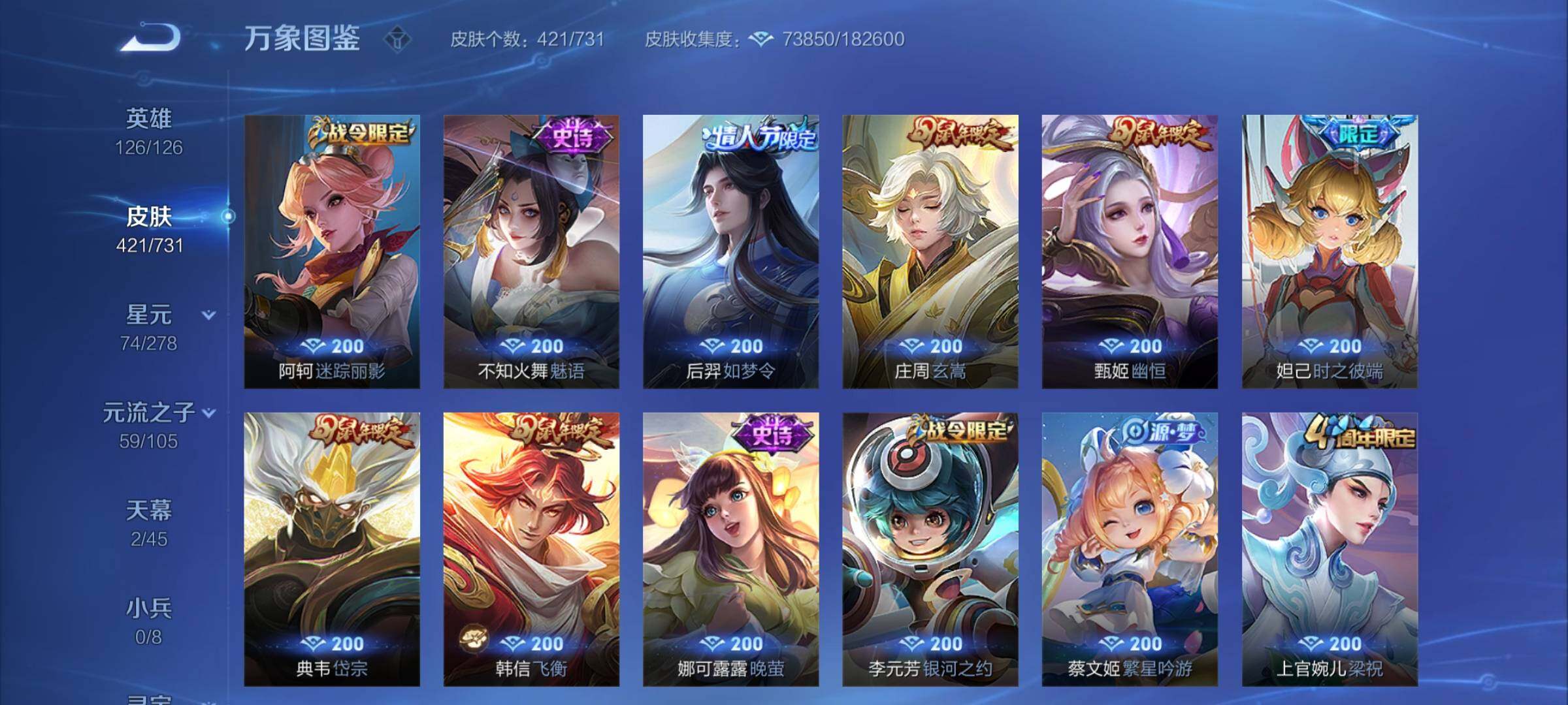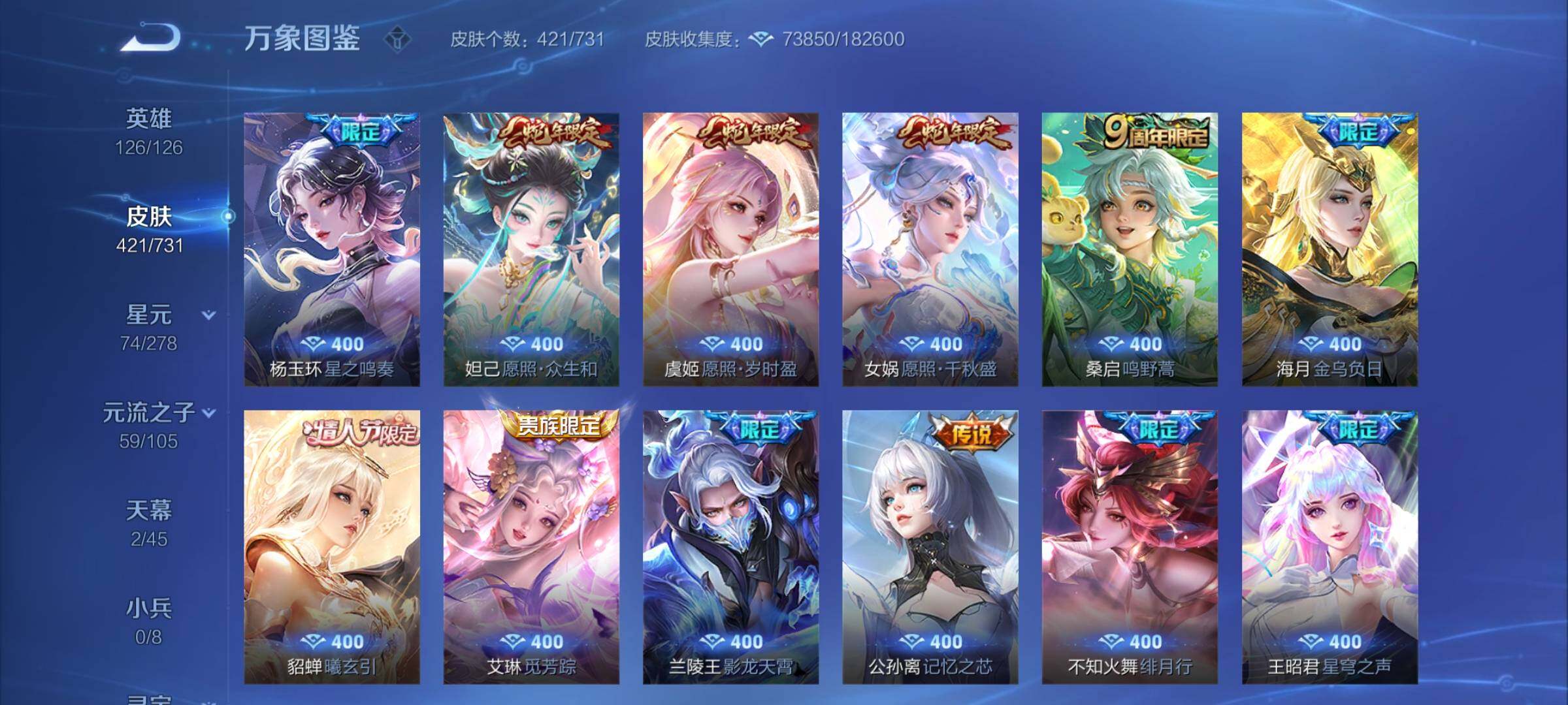 安卓QQ- 可换绑【全皮貂蝉,美神貂蝉全套,万战金标貂蝉8千场次。16个生肖皮肤】16按键