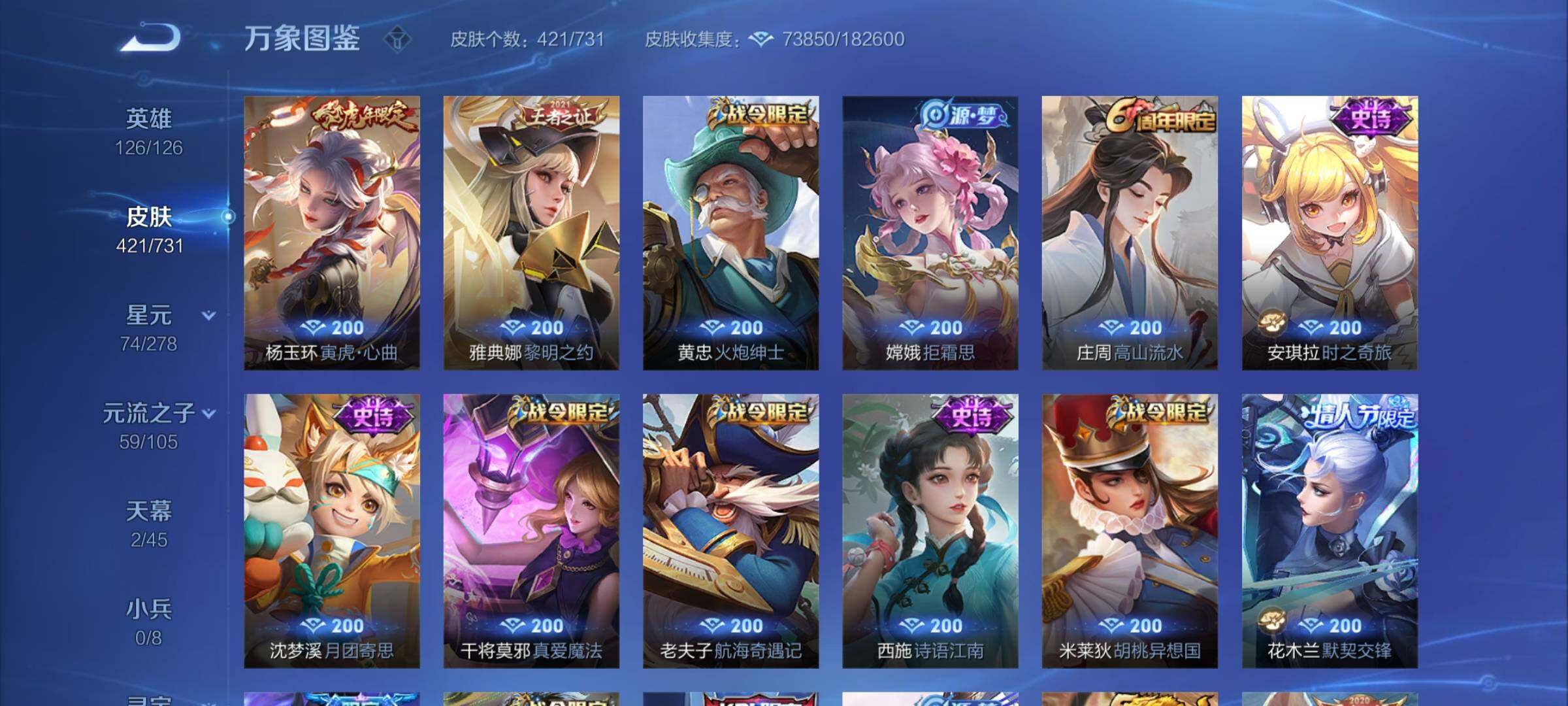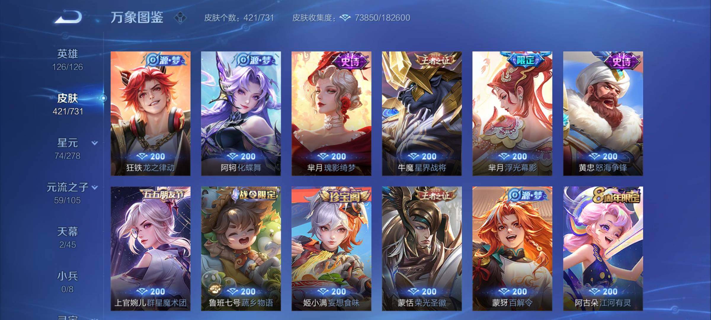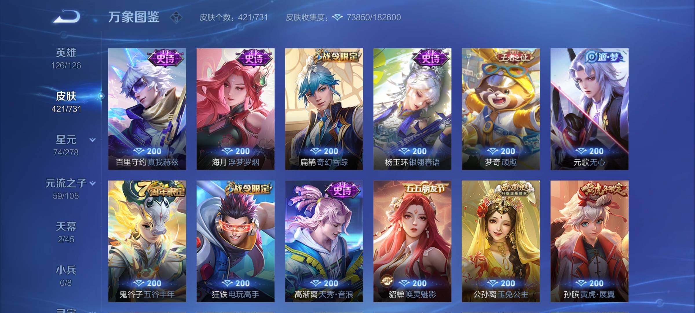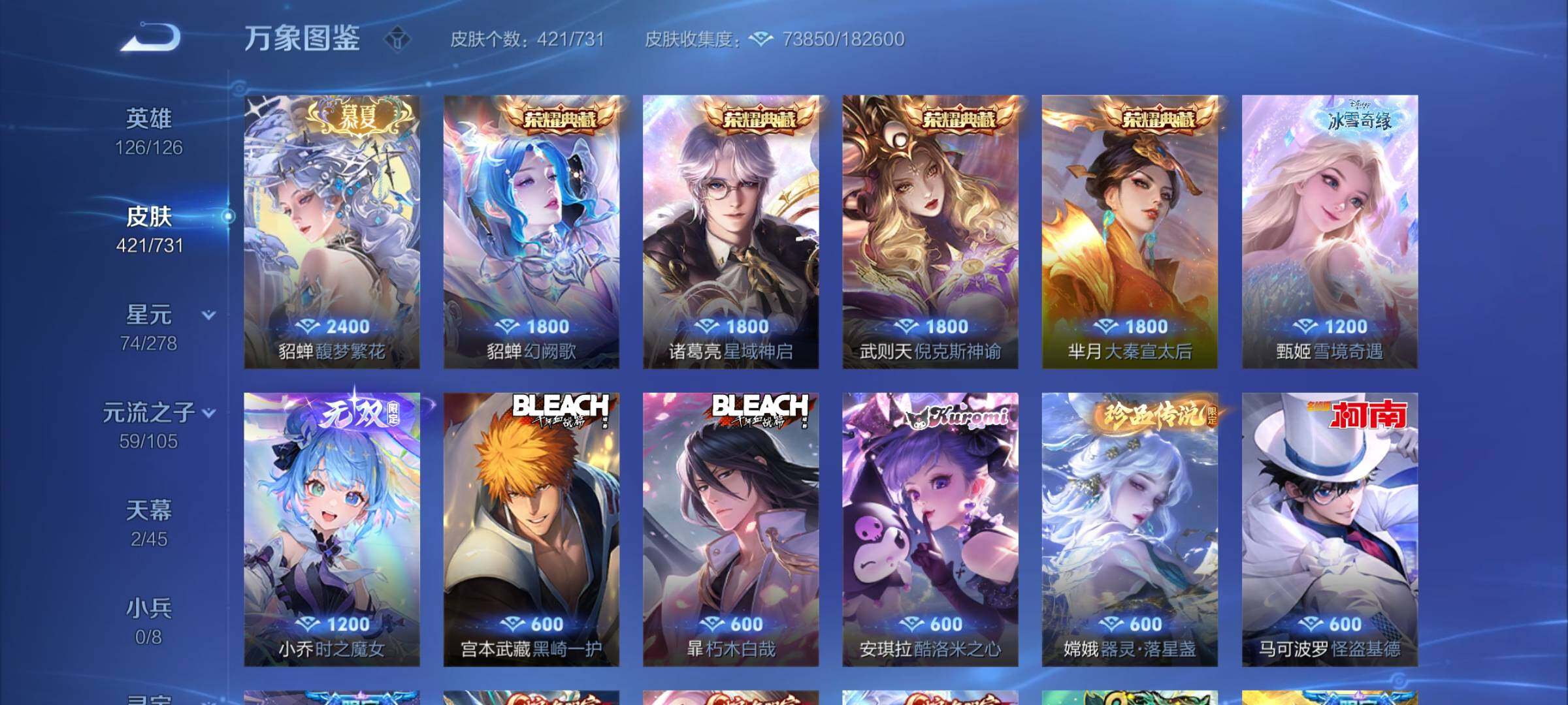 安卓QQ- 可换绑【全皮貂蝉,美神貂蝉全套,万战金标貂蝉8千场次。16个生肖皮肤】16按键