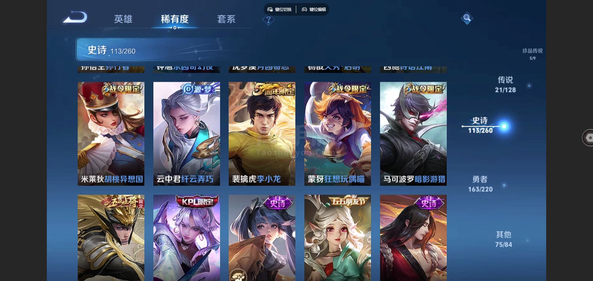 有二次 -V9-380皮肤-2典藏 5珍品 1无双 21传说 1星传说 时之思念 5珍品 朽木白哉