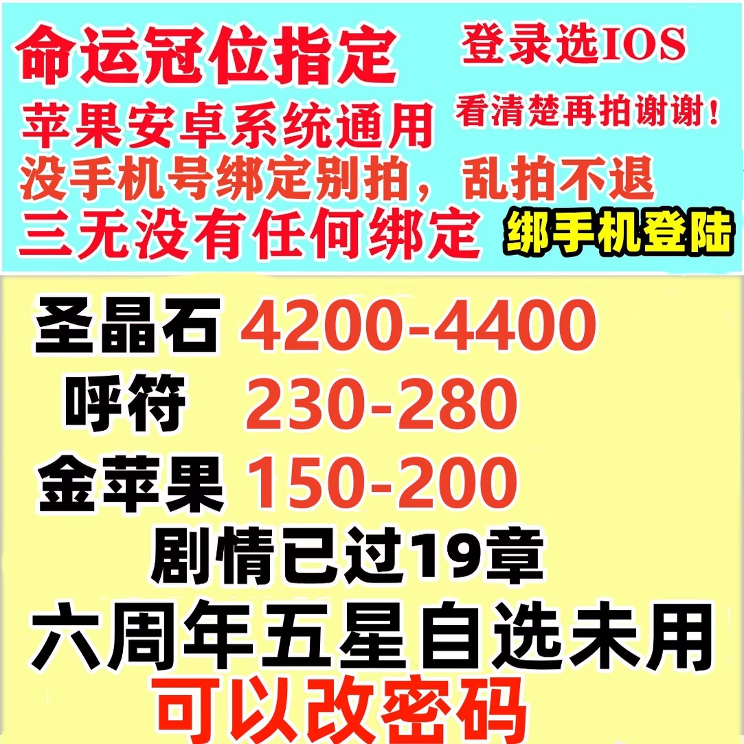 4200圣品石230呼符150金苹果剧情已过19章 六周年五星自选未用