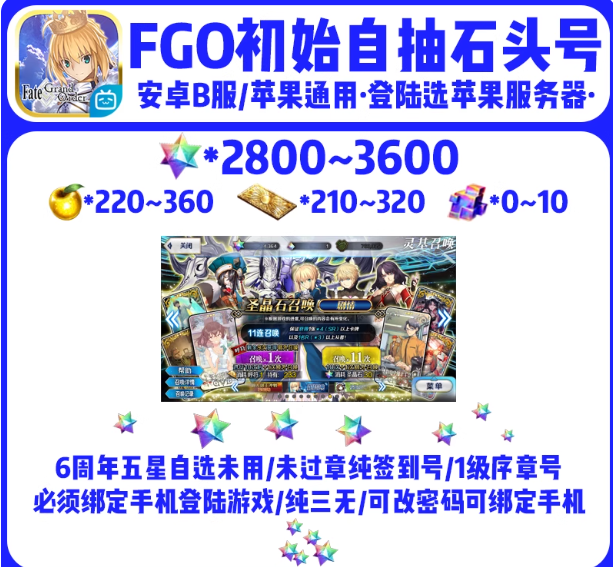命运-冠位指定【全服通用】4200圣品石230呼符150金苹果剧情已过19章