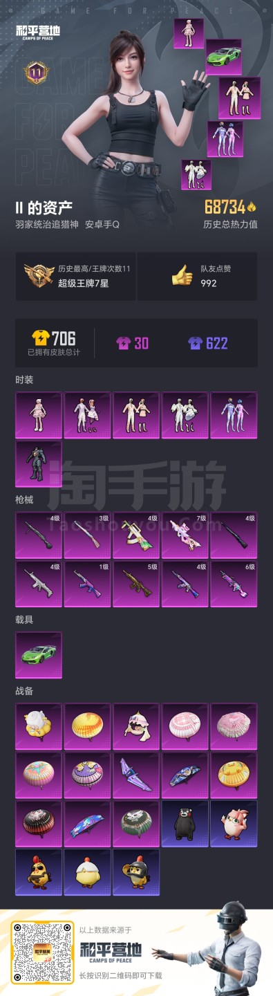 王者和平连体号 两把9级升级枪 性价比超高 男神身法号