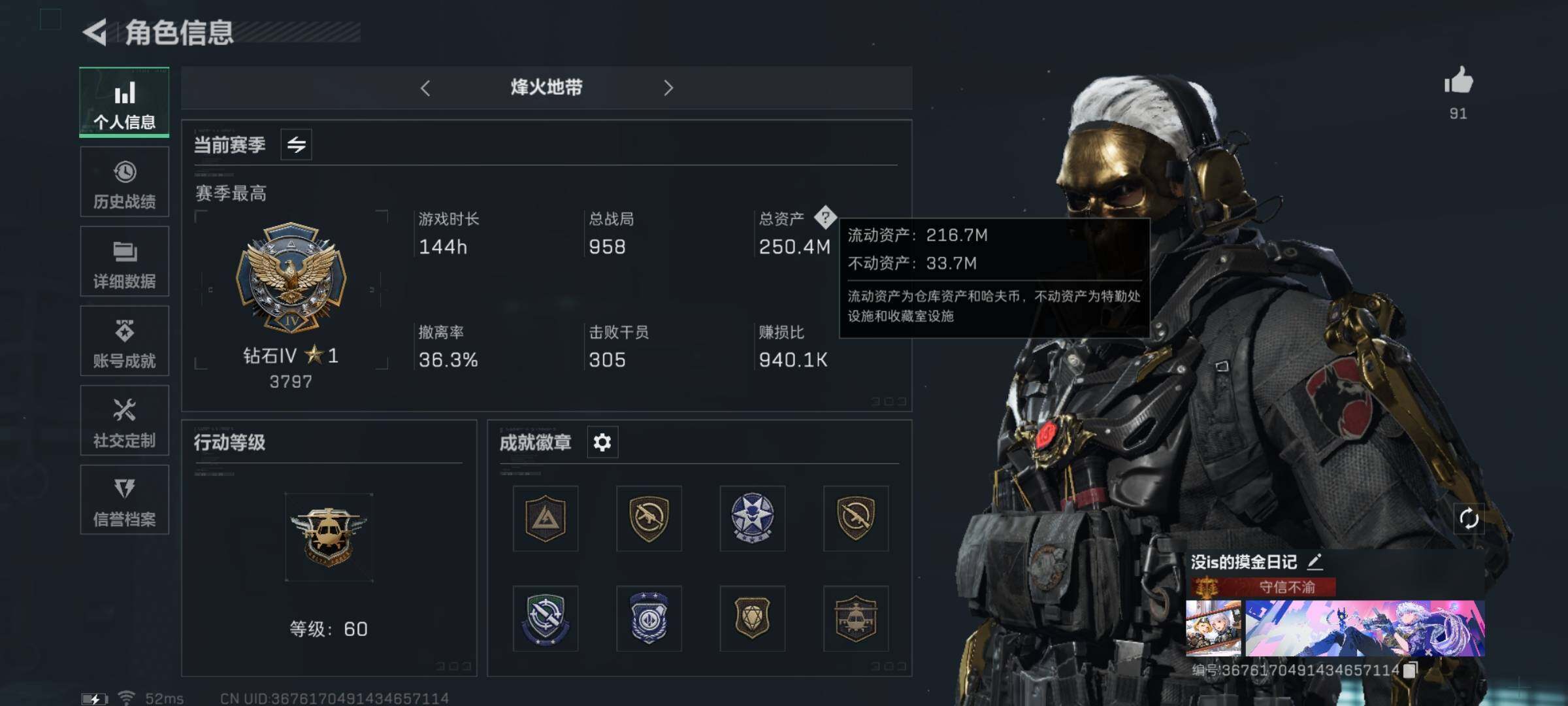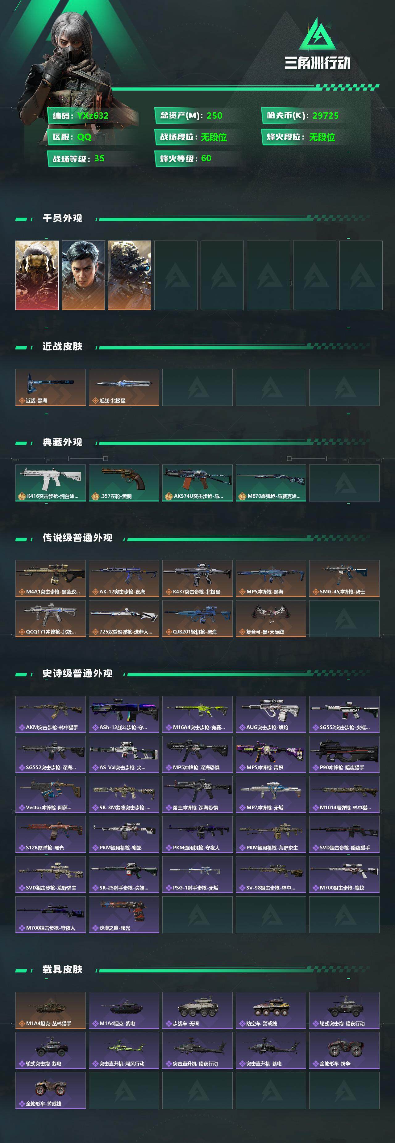【Q区三端互通】【无二次】YXz632-特勤处:仓库7级/训练中心6级/靶场4级-总资产250.4M-哈夫币2972W-烽火等级:60级【勾选了部分账号,详细看图,平台认证商家店铺,保证金商家,安全有保障,性价比超高,永久包赔】