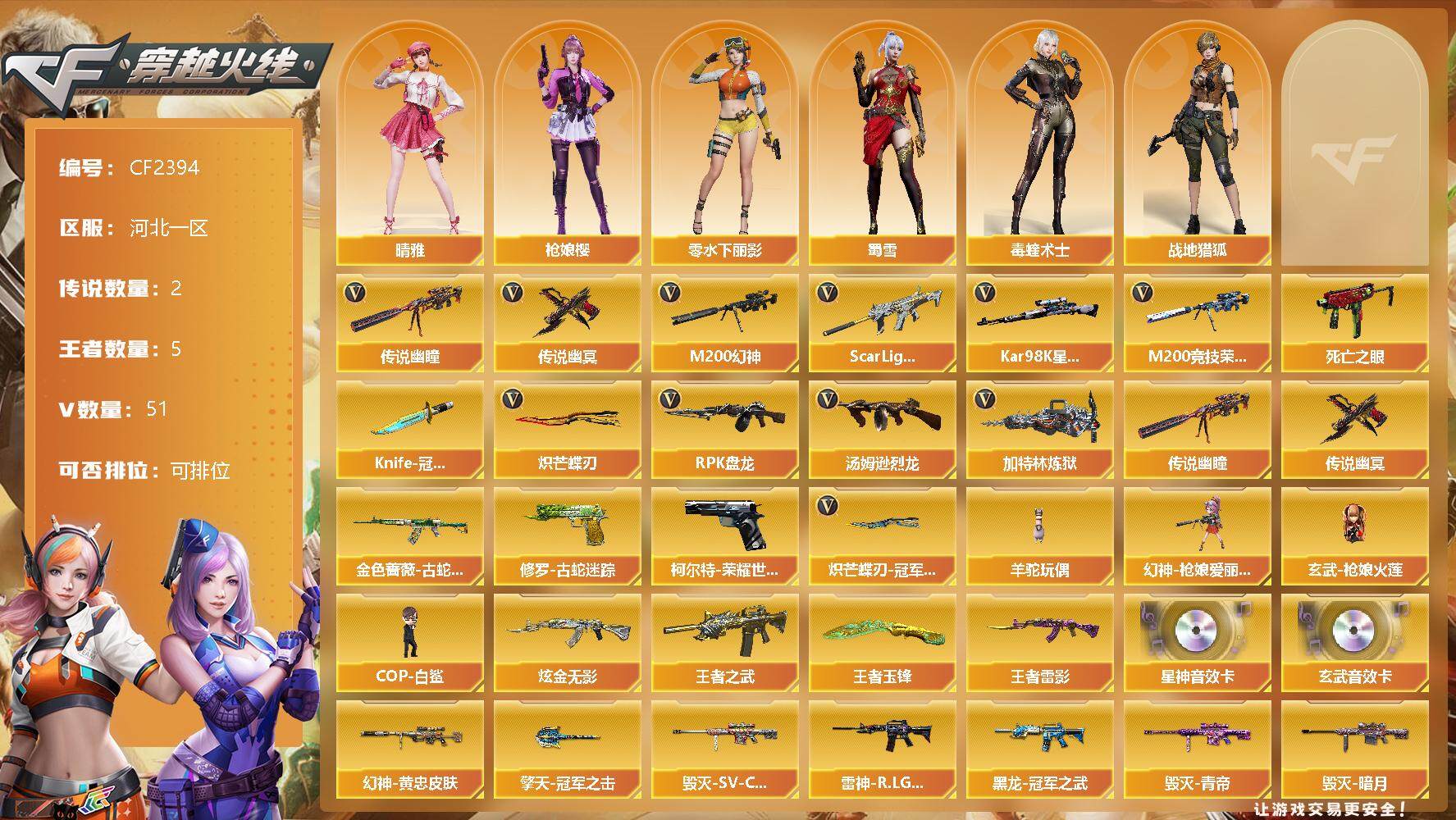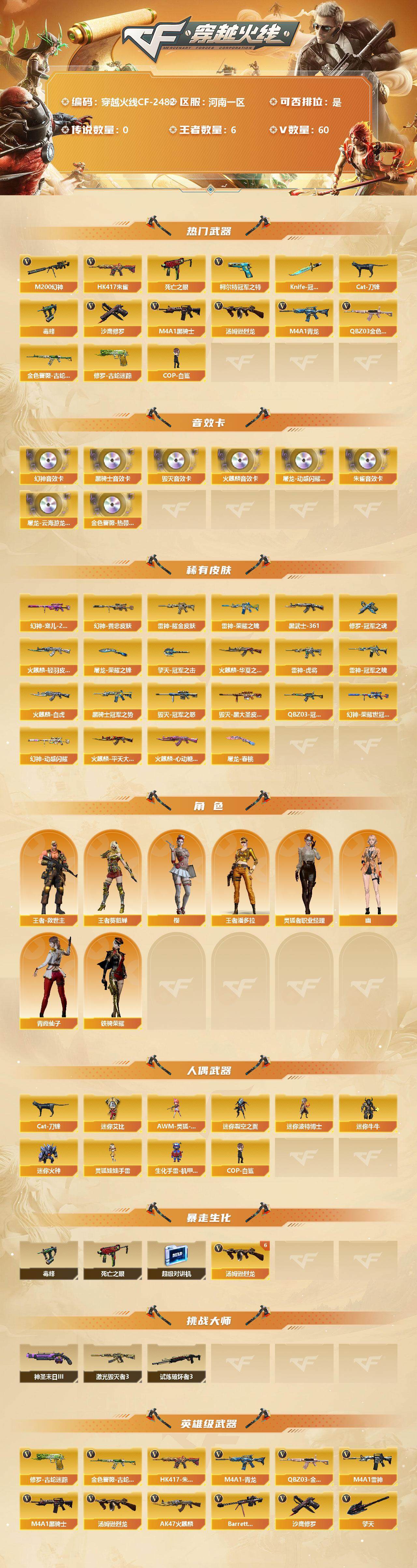 穿越火线(CF)【端游】【商品标题】:河南一区-60V-6王者-0炫金