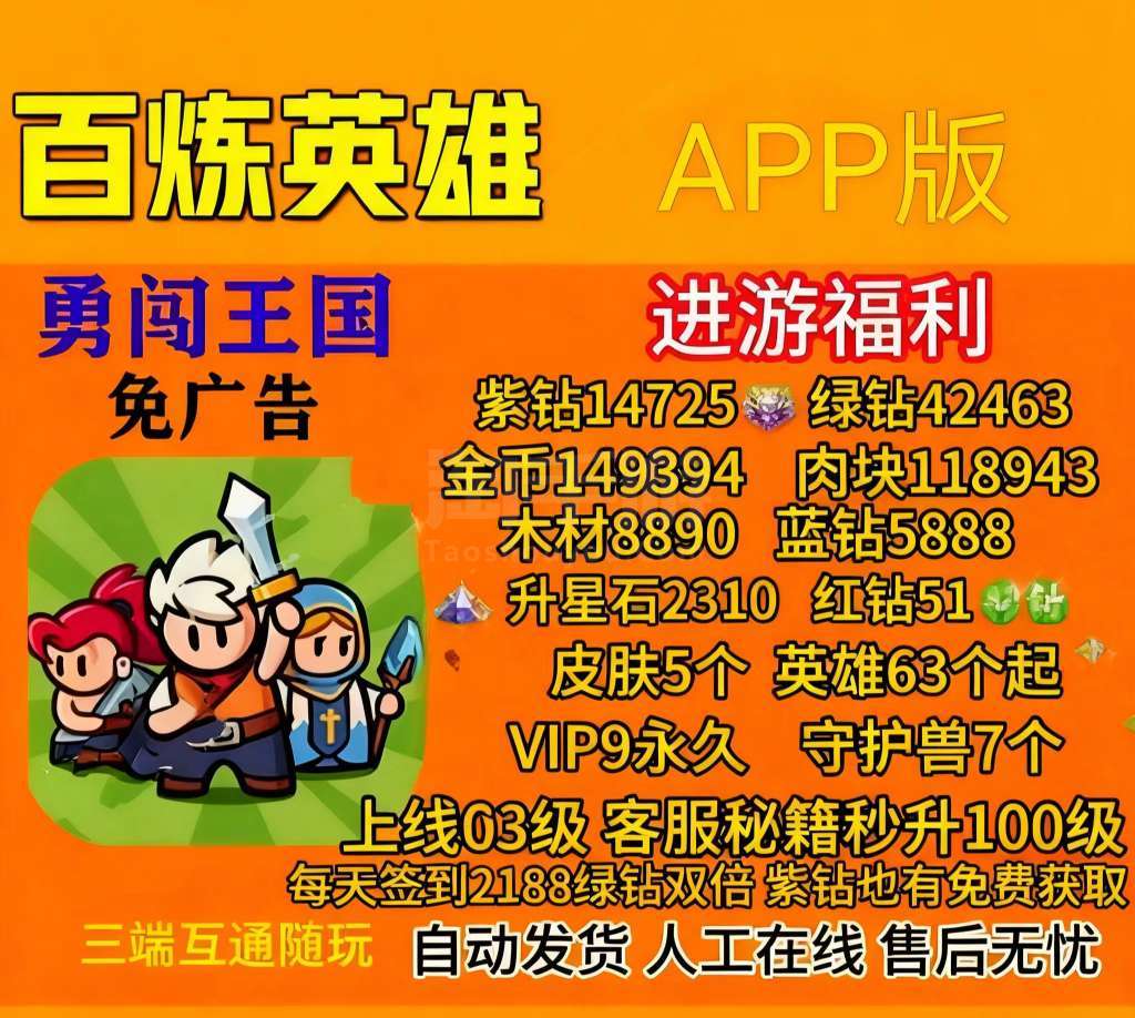 百炼英雄【全服通用】百炼BT服,2.0版,内测版,当天进号即百万战力。100级,各种资源背包。免费永久卡...等,原始号