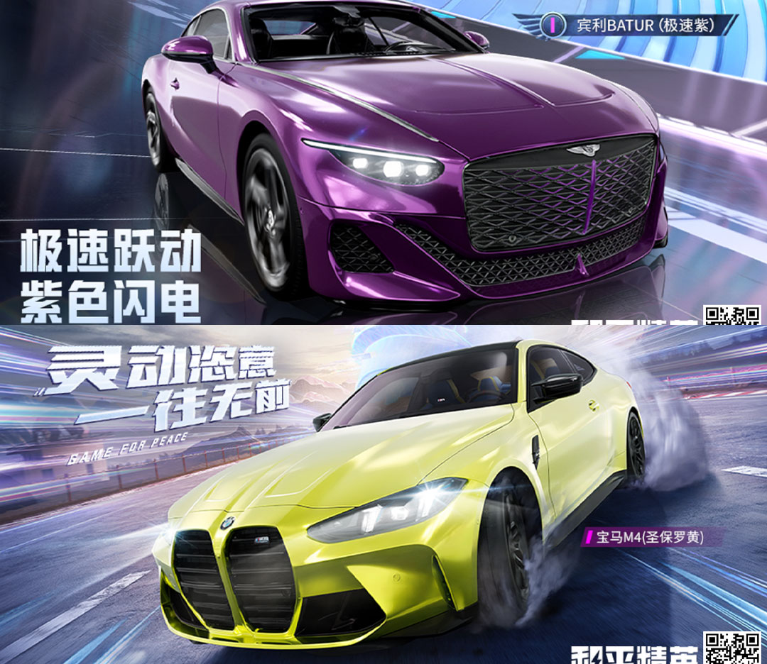 载具2:宝马M4(圣保罗黄),宾利BATTUR(极速紫),