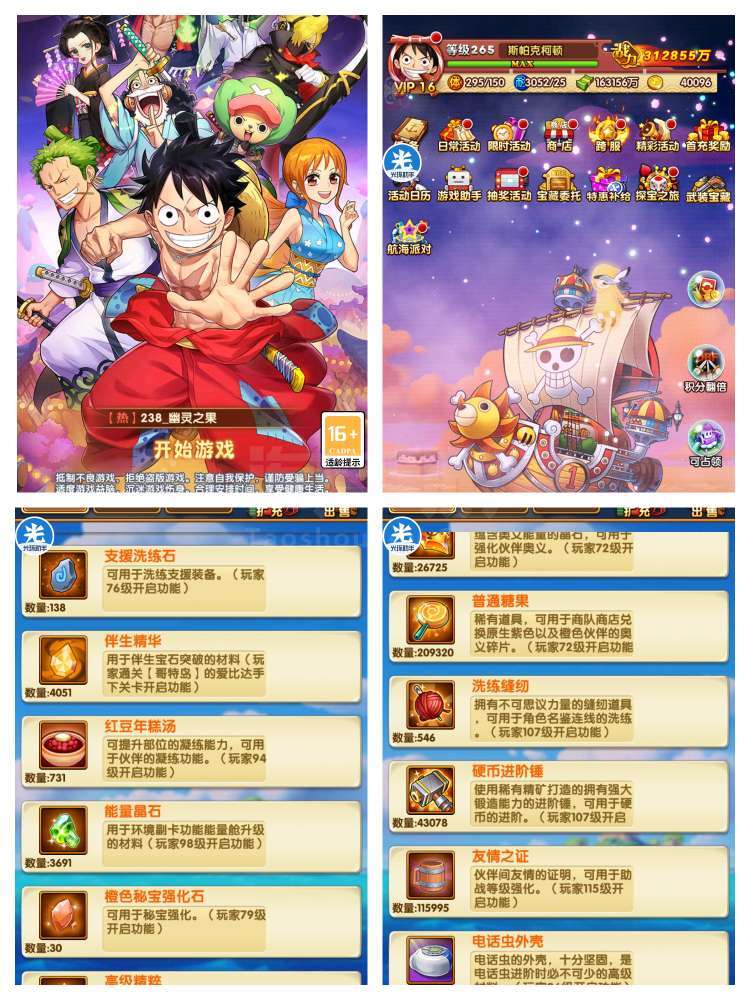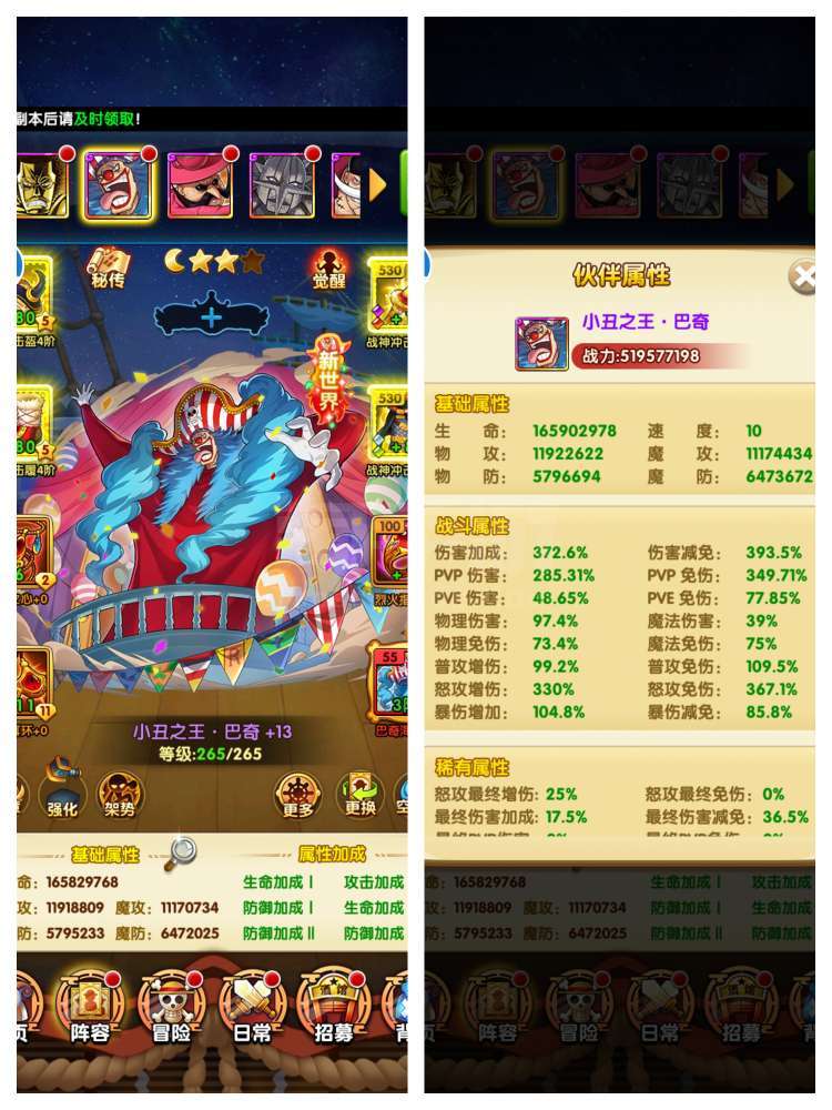 33亿战力,11亿无敌战国,5.2亿小丑巴奇,8红船,满金宠,还有4万金币,绑定都能换