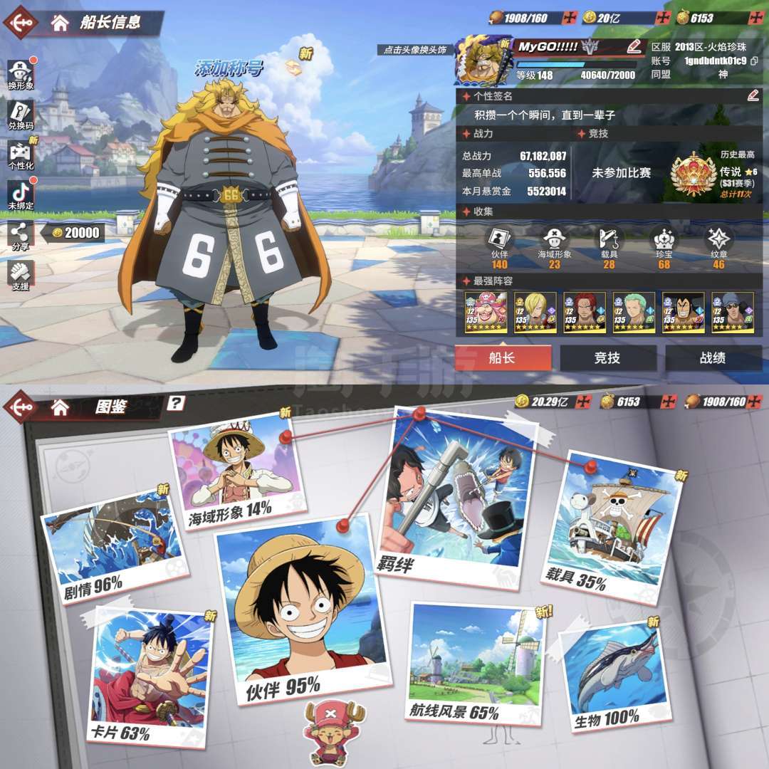 航海王热血航线【安卓官方】6710万战力。98强智友情技。76传奇12强者3典藏。3神船28艘船。6100金果825幻彩果